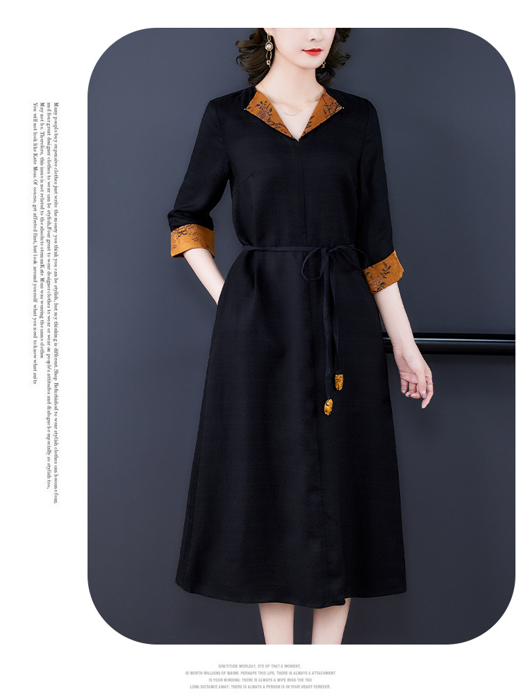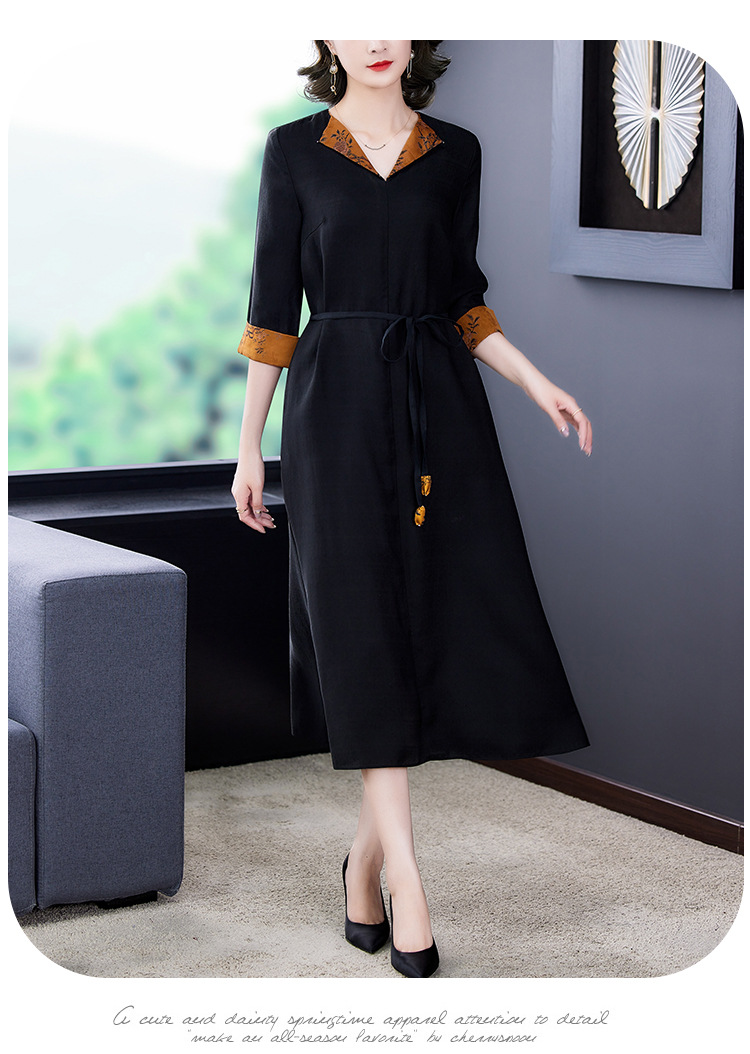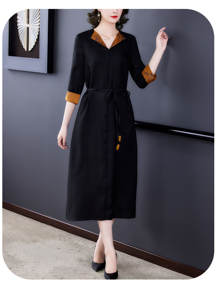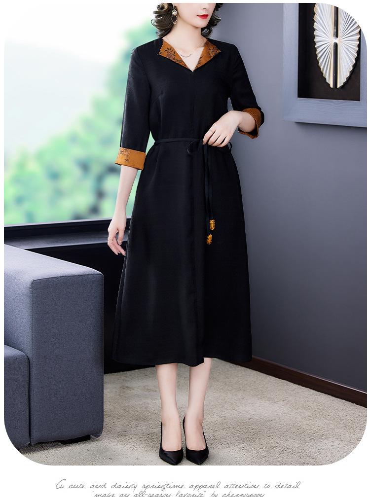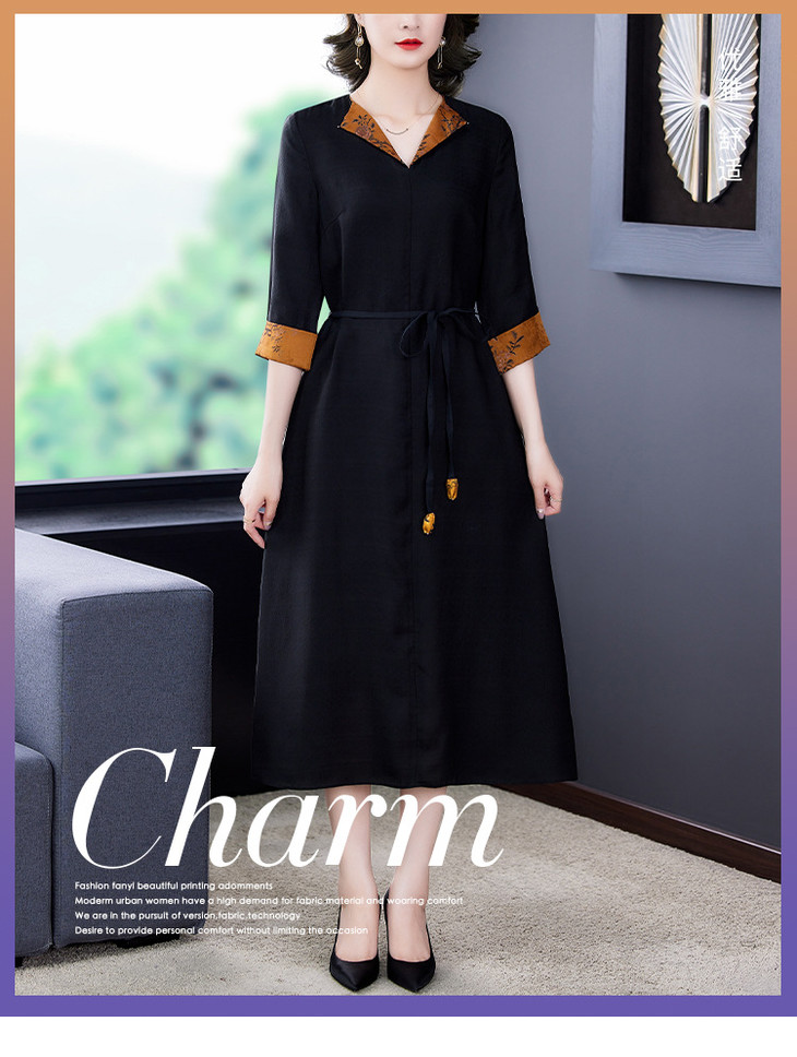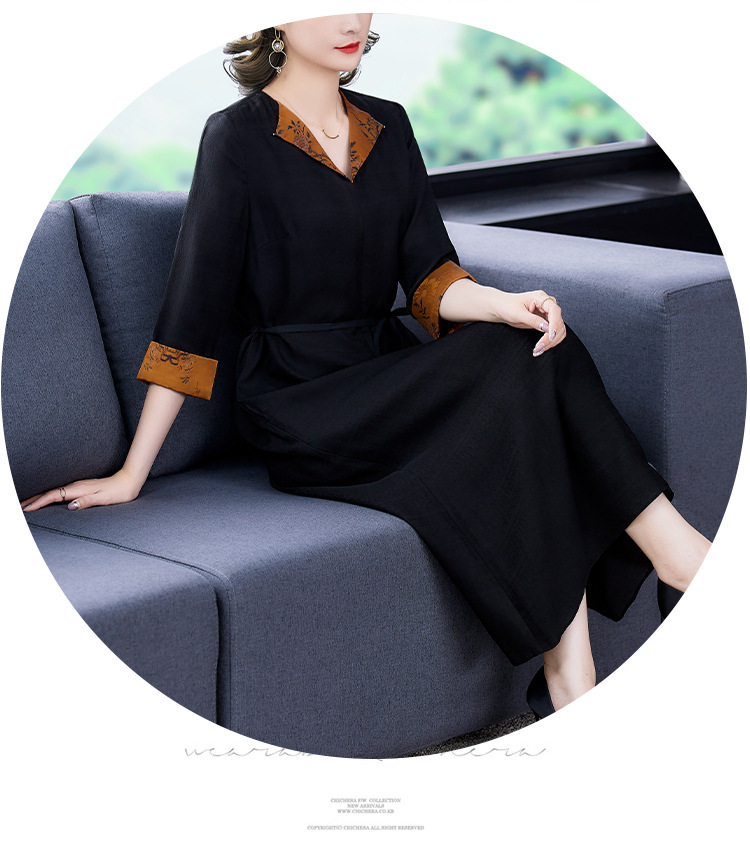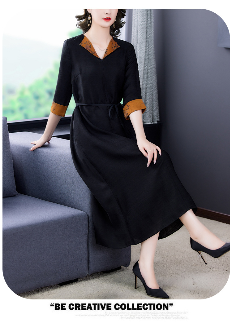 AHM-mdd9888新款中国风优雅妈妈装收腰显瘦气质长裙