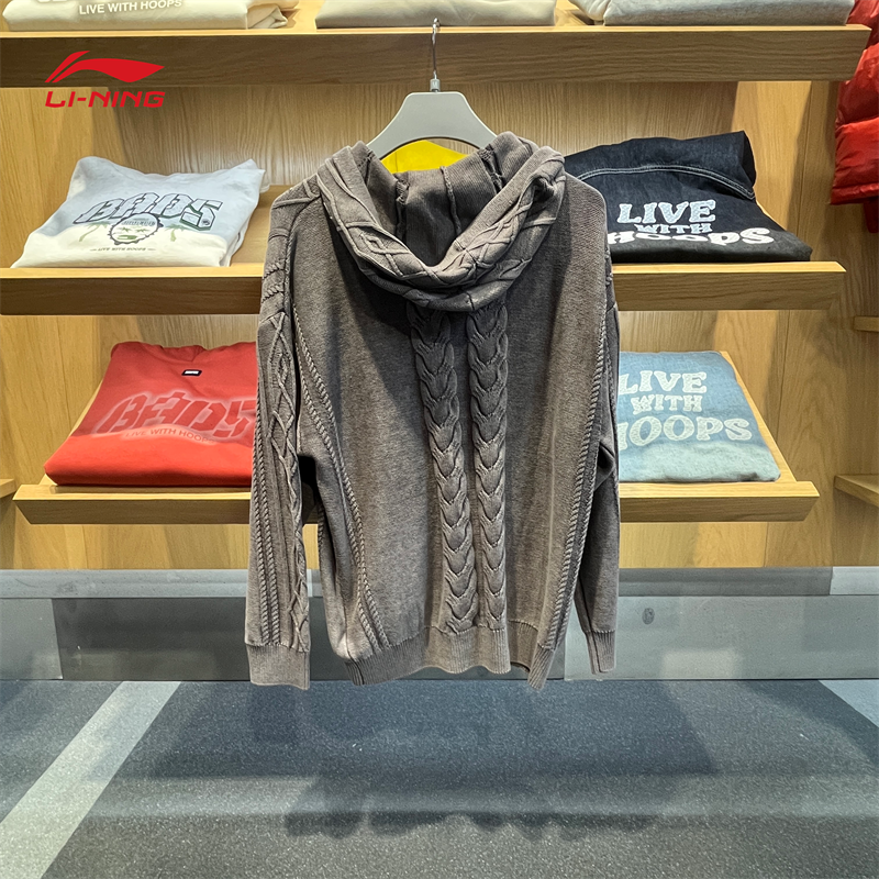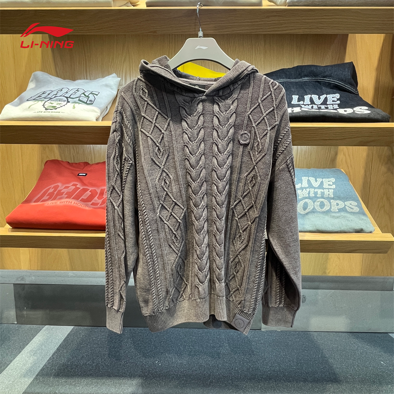李宁25冬季新款男女韦德系列简约百搭舒适套头连帽编织衫AMBV293
