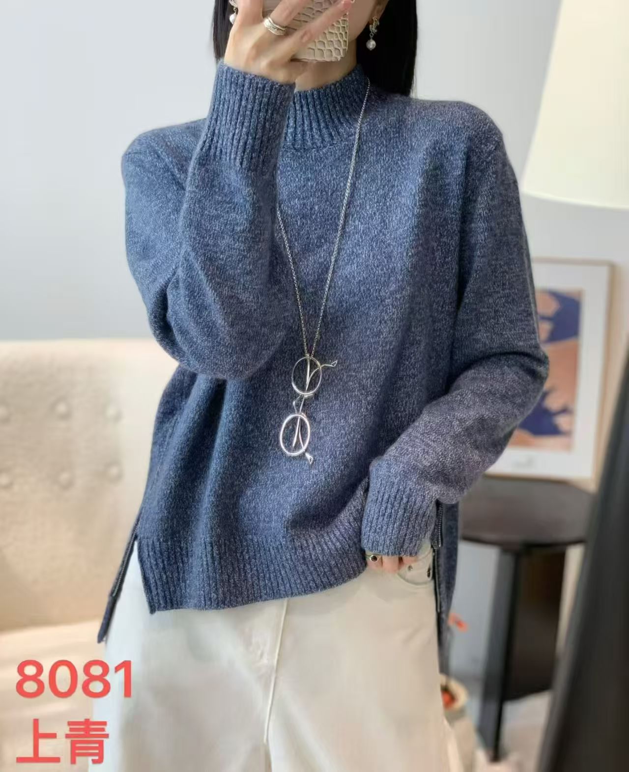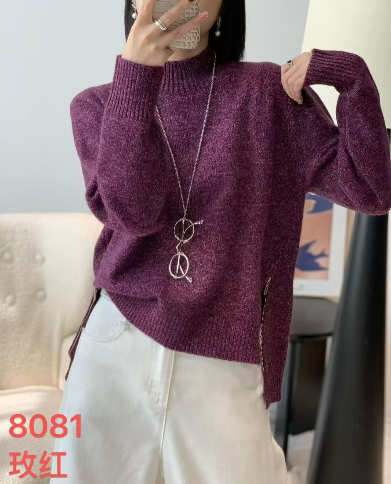 【品名】FS竹纤维女士时尚中领针织毛衣8081