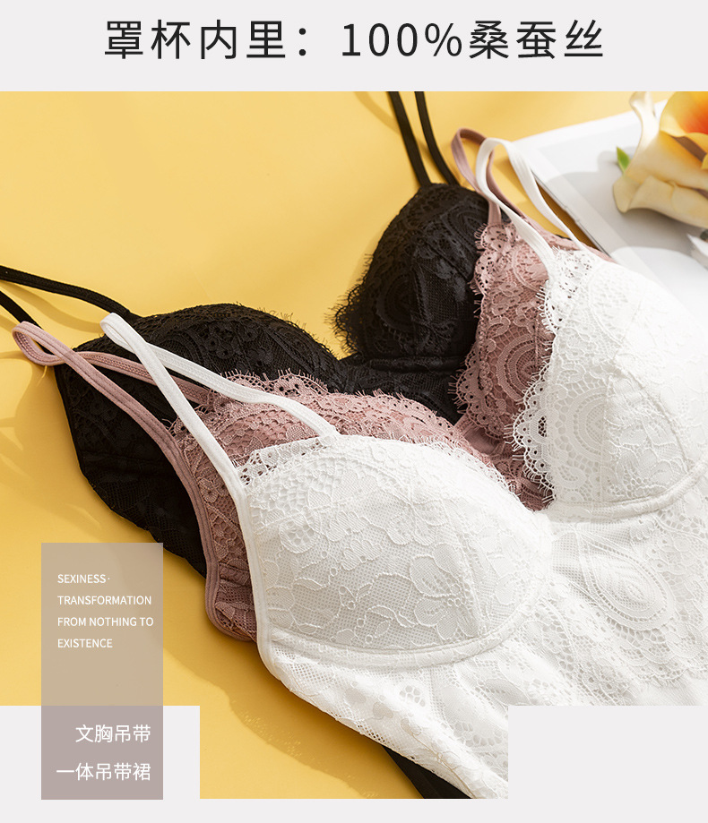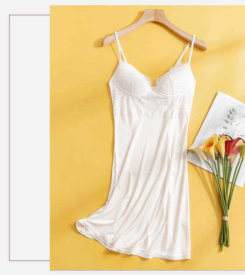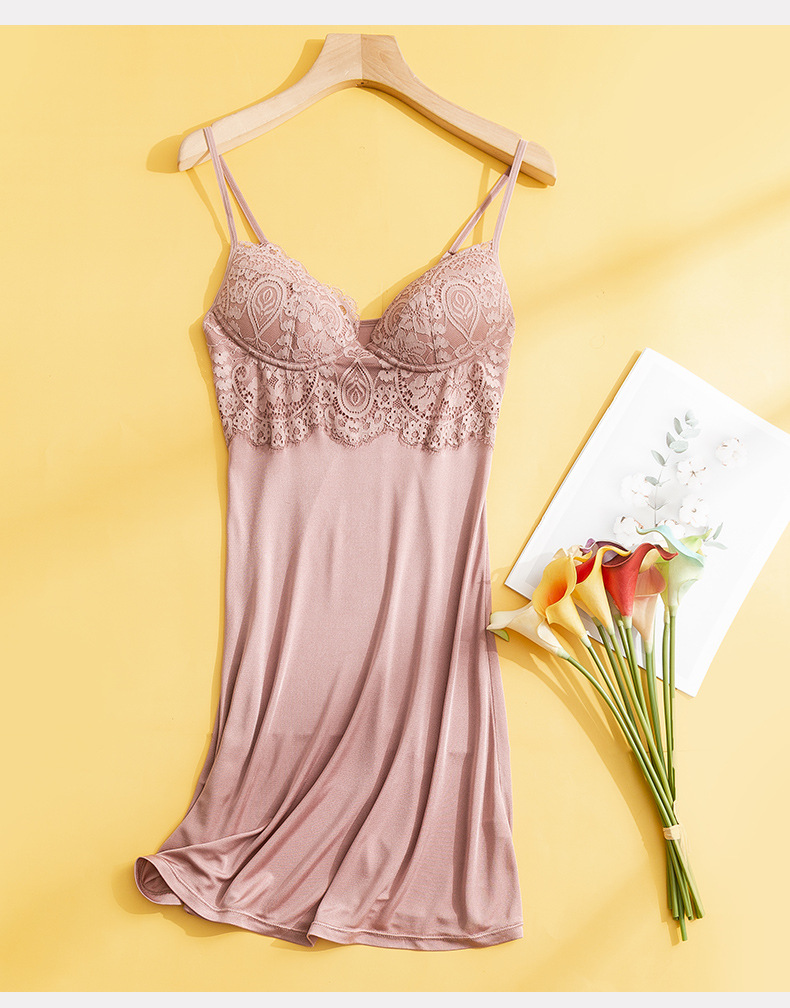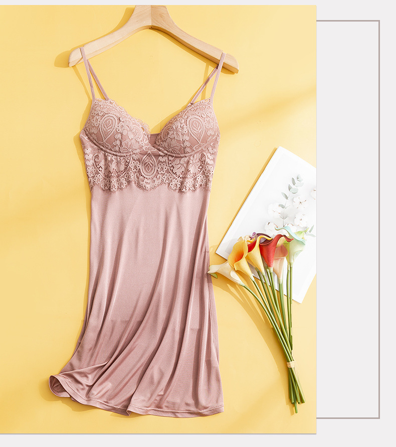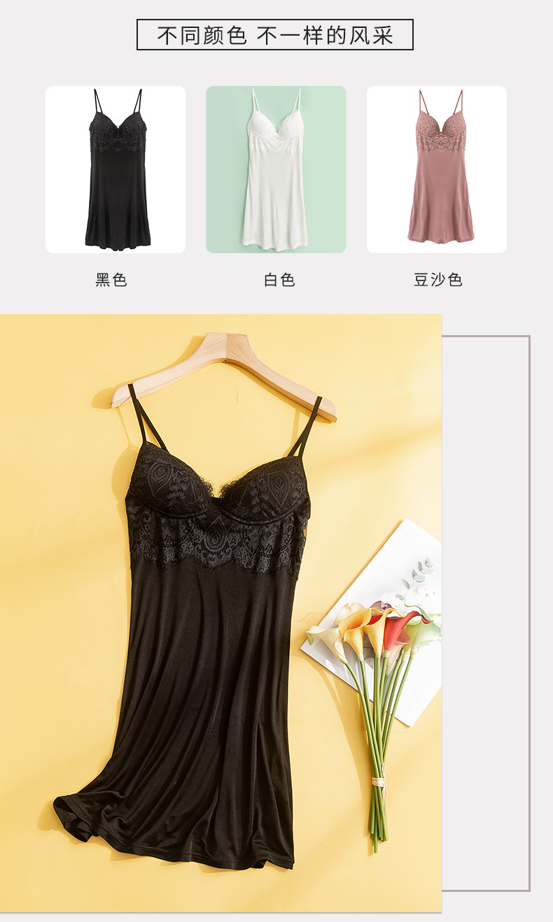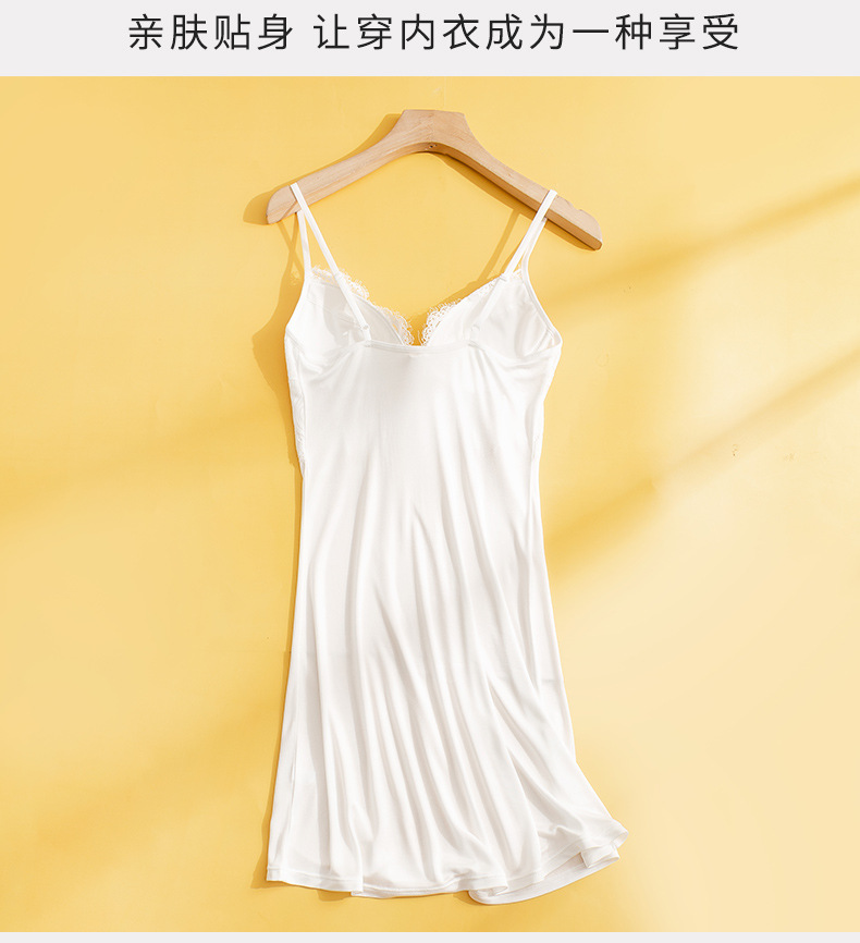 TG-TG03S162真丝吊带裙 蕾丝性感睡裙带胸垫夏季薄款打底裙家居服诱惑