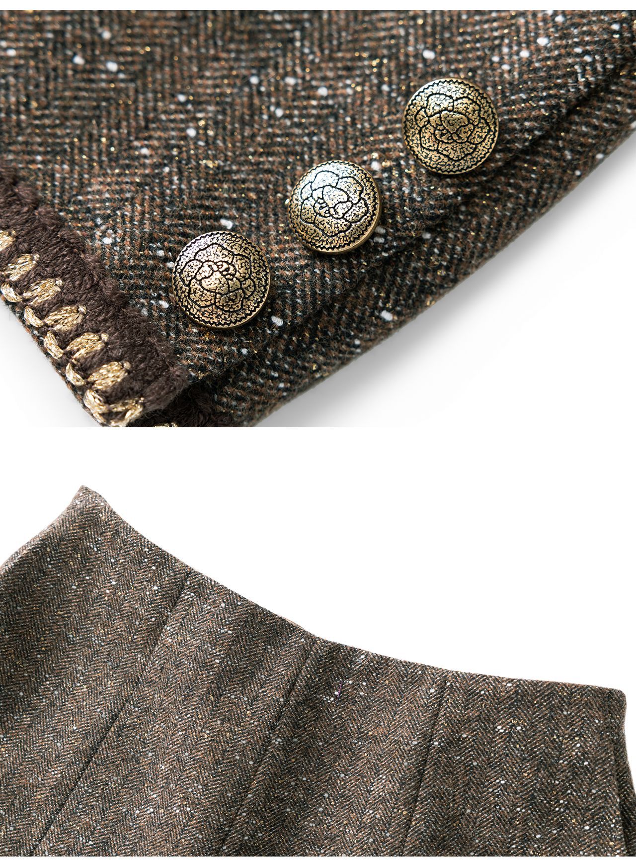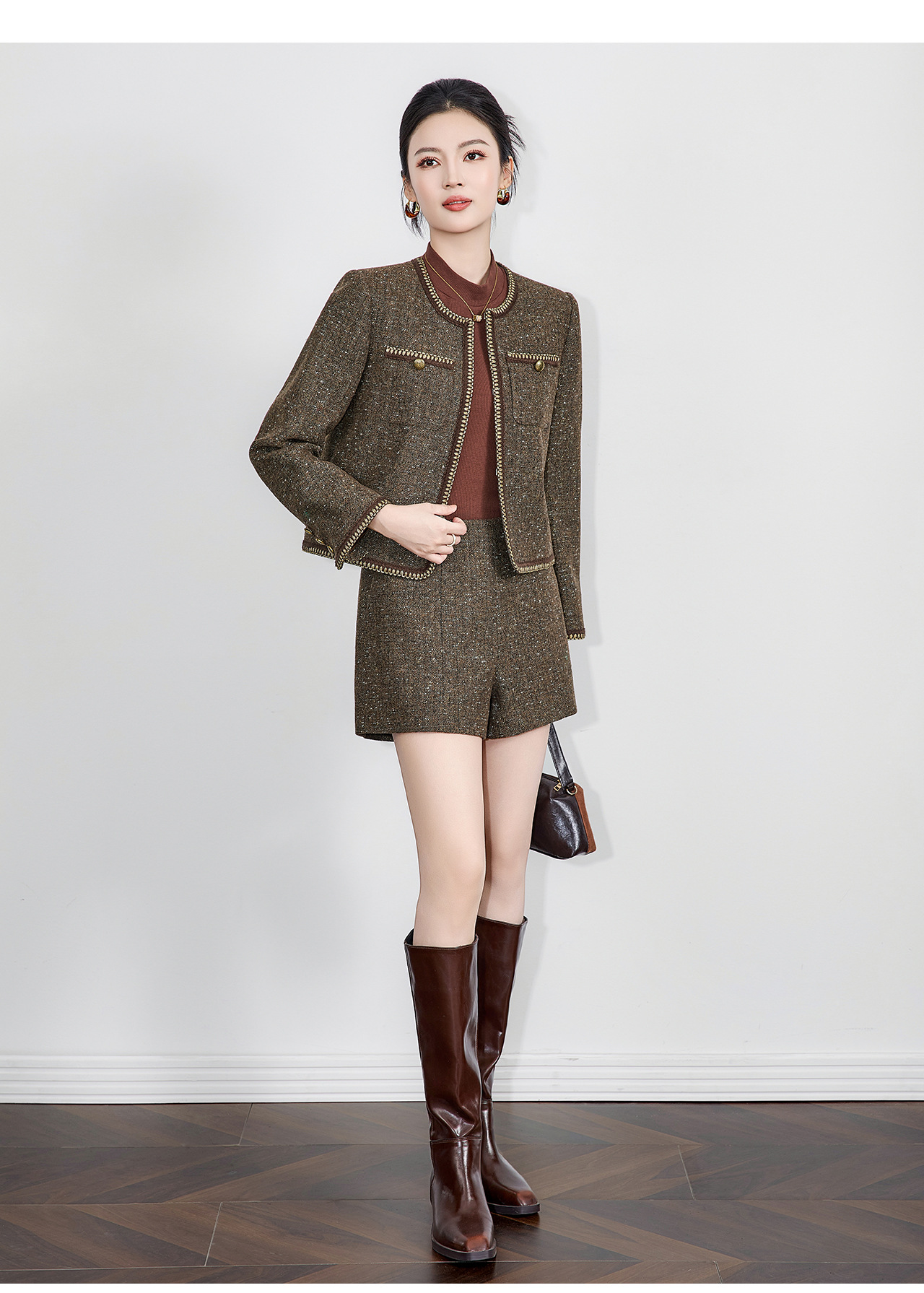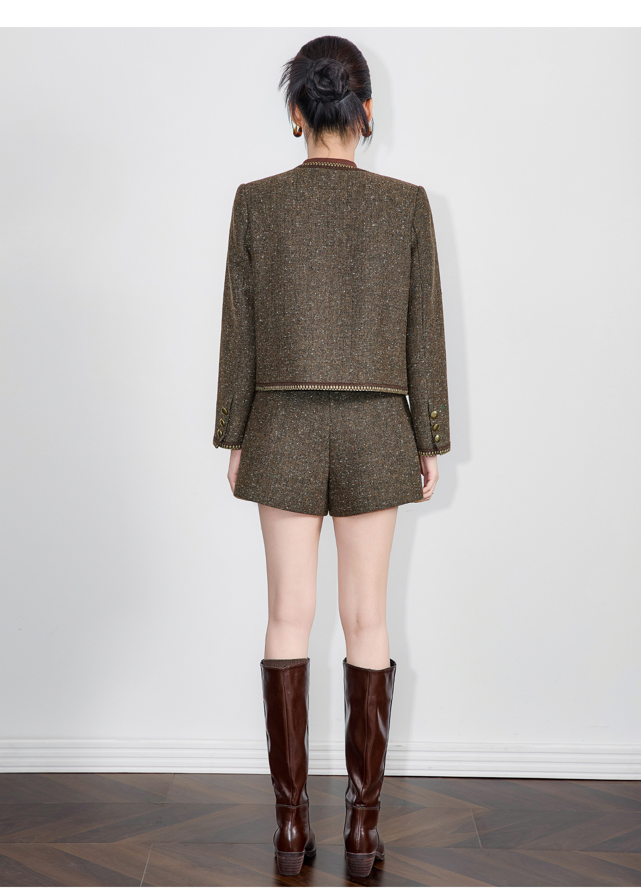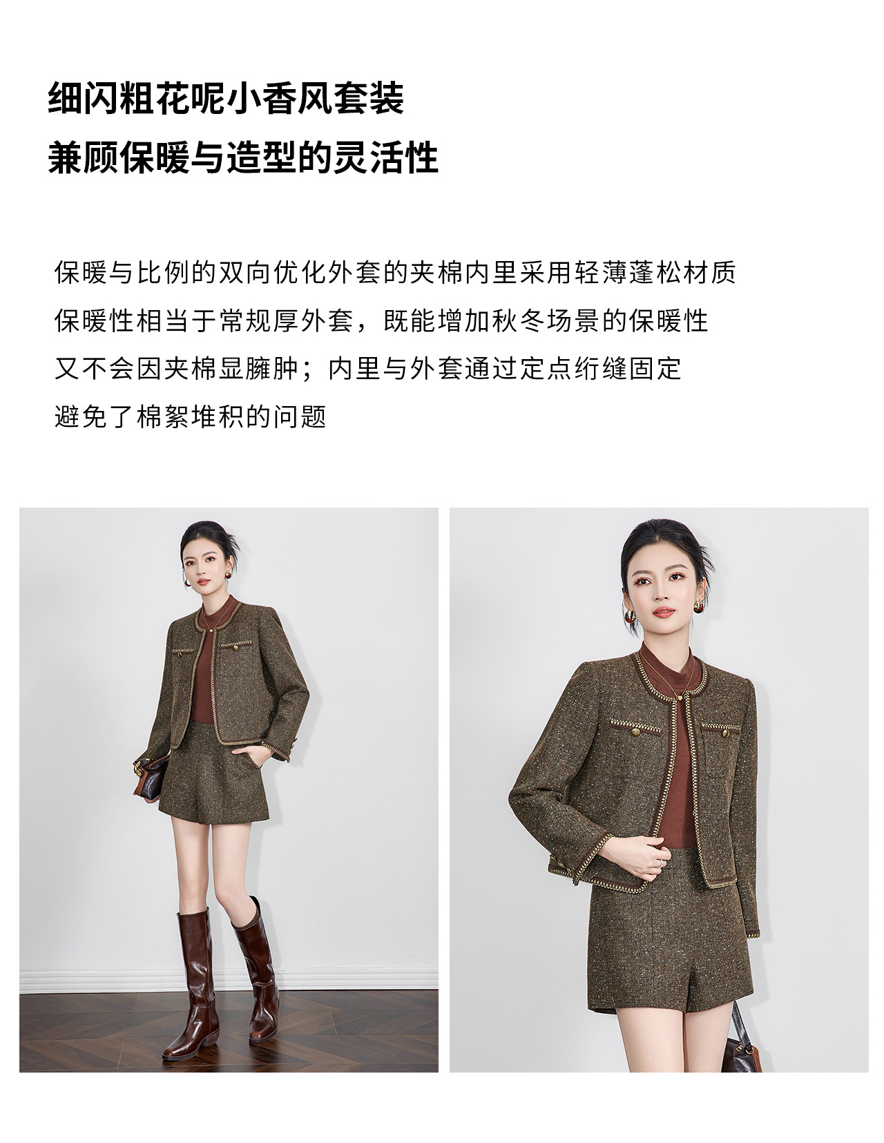 「高货wl」全新升级【铂金会员413/天猫559/差价146】(99031)洛诗琳2025秋冬金线人字纹羊毛呢外套高腰阔腿短裤两件套