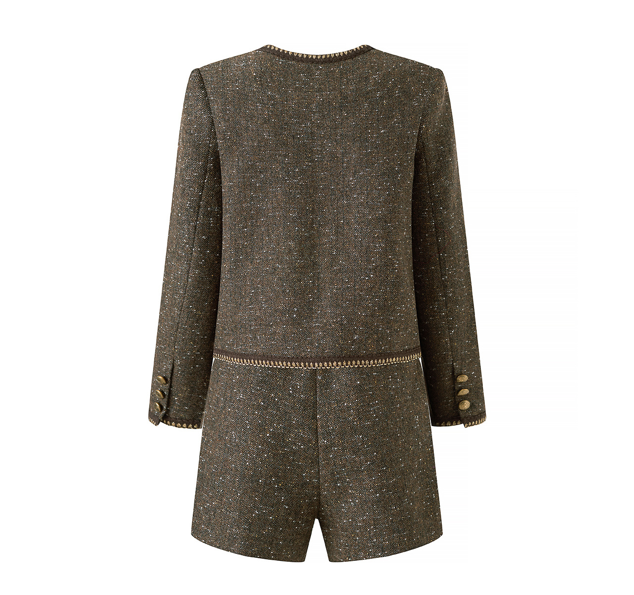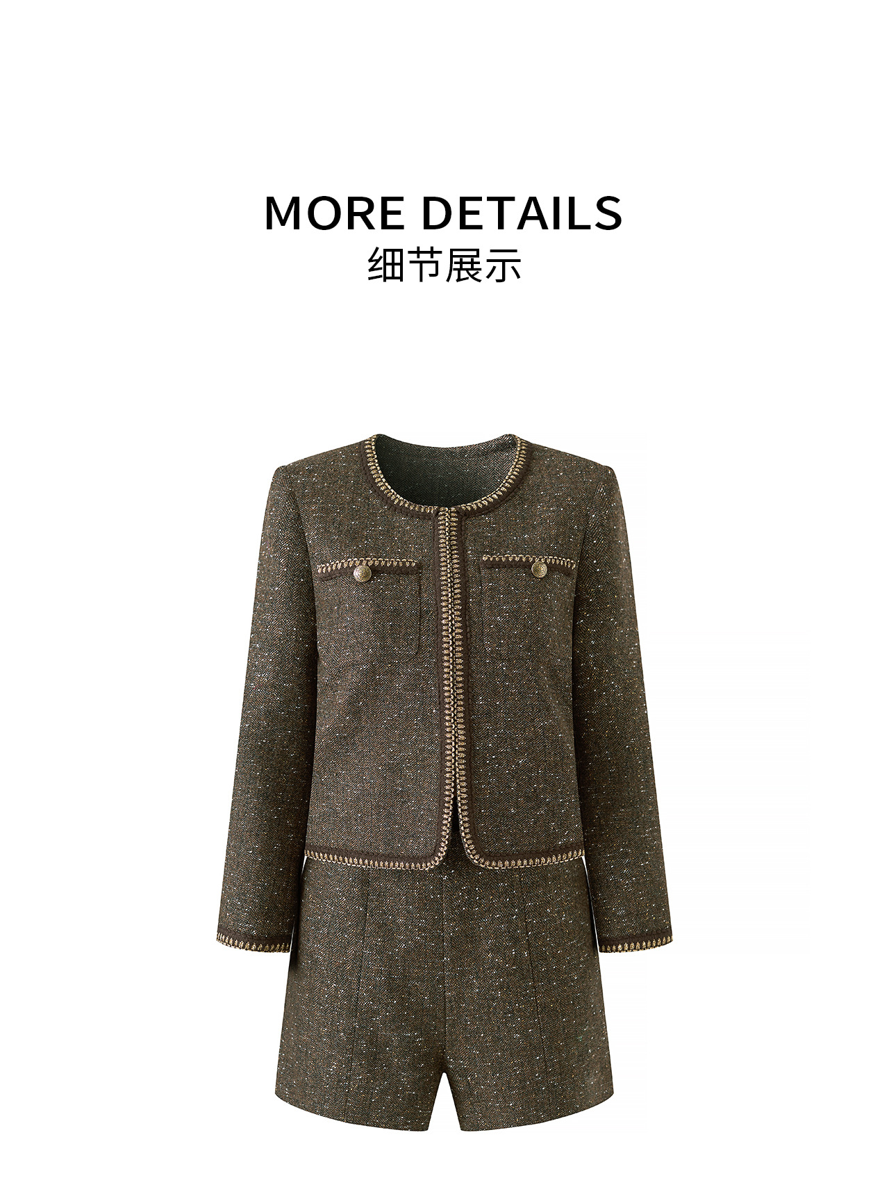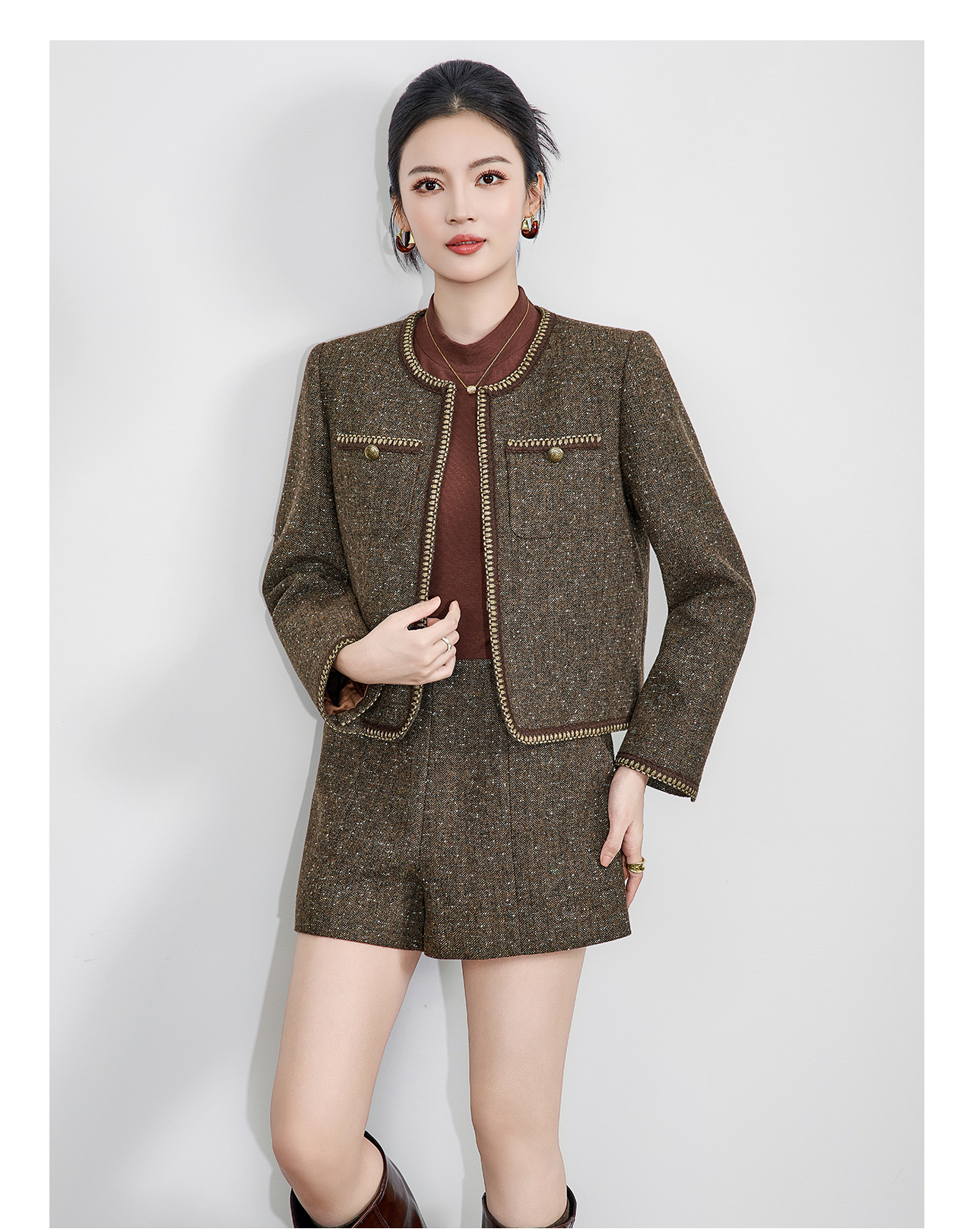 「高货wl」全新升级【铂金会员413/天猫559/差价146】(99031)洛诗琳2025秋冬金线人字纹羊毛呢外套高腰阔腿短裤两件套