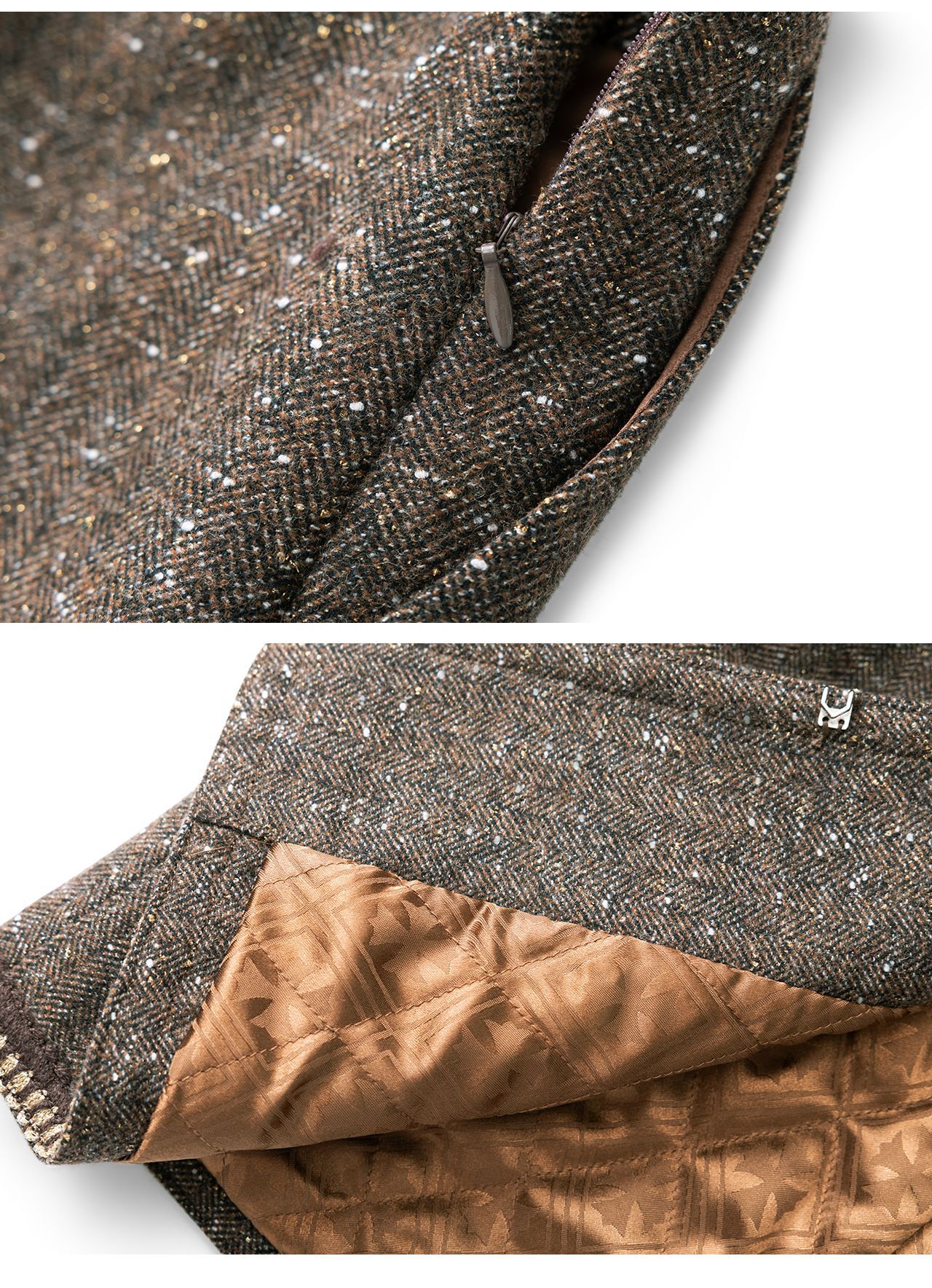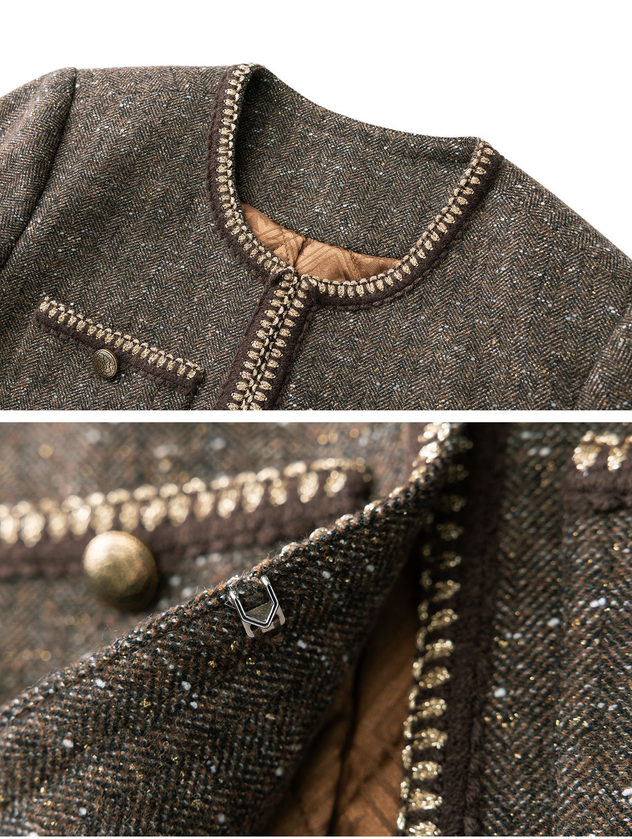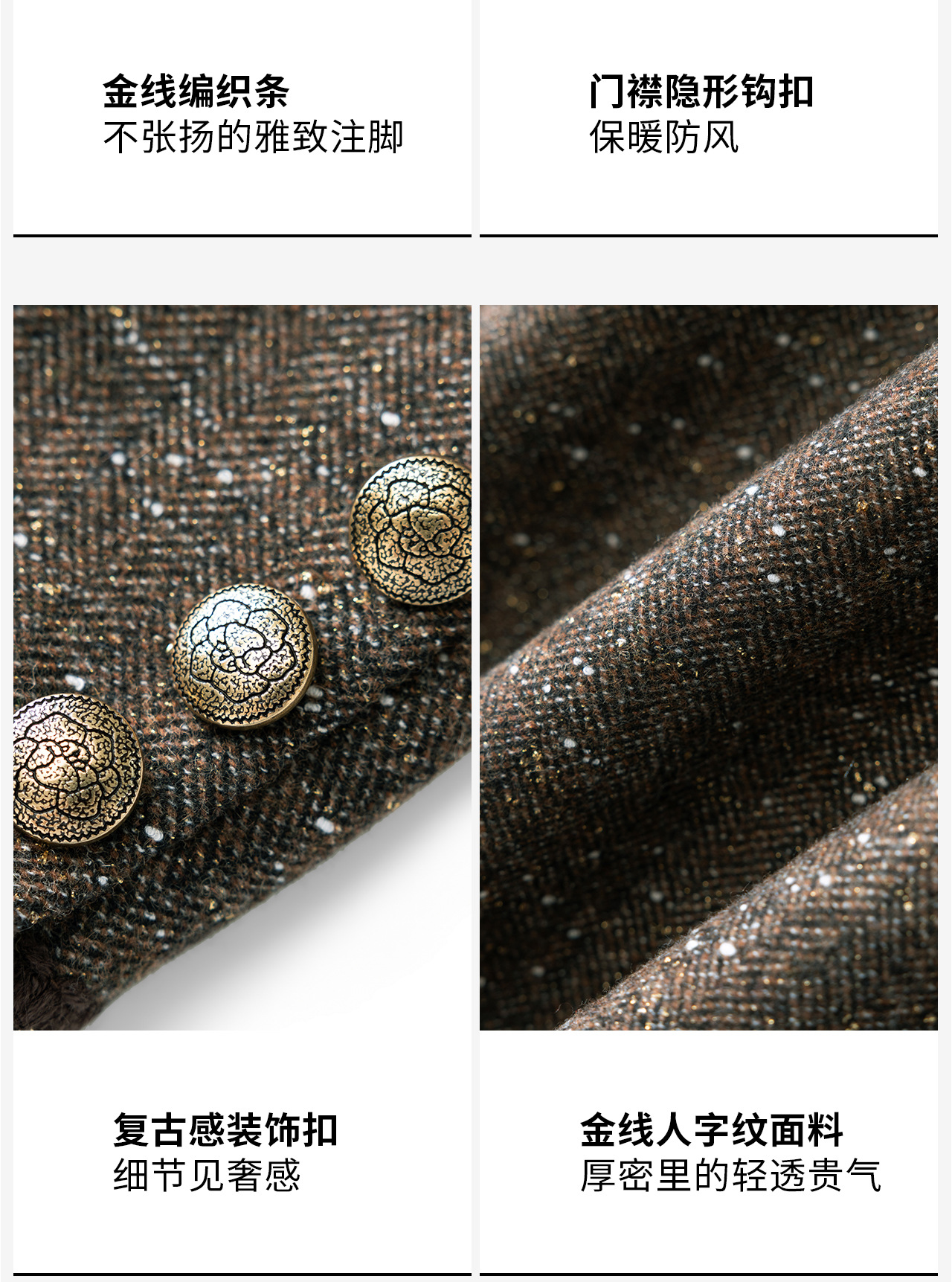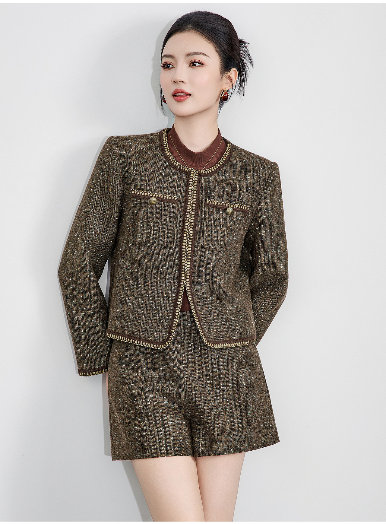 「高货wl」全新升级【铂金会员413/天猫559/差价146】(99031)洛诗琳2025秋冬金线人字纹羊毛呢外套高腰阔腿短裤两件套