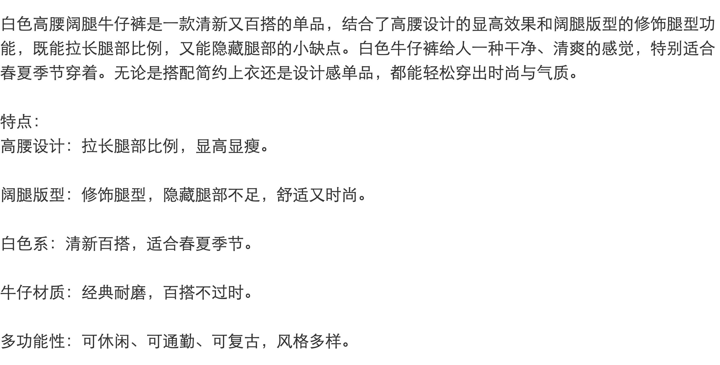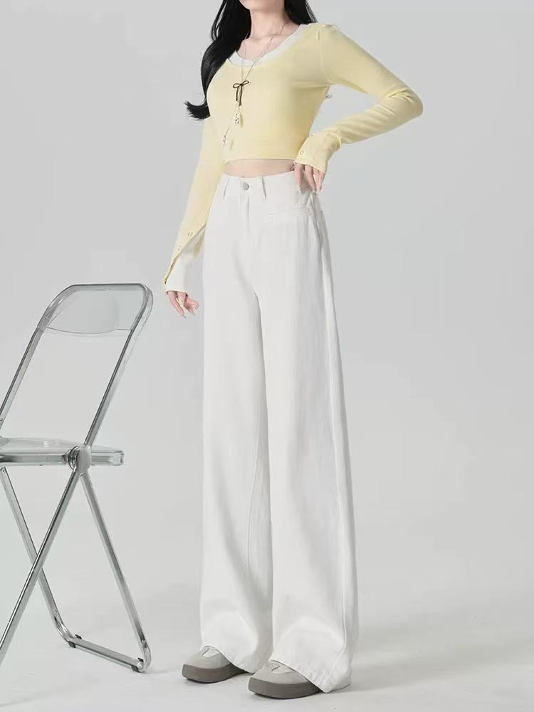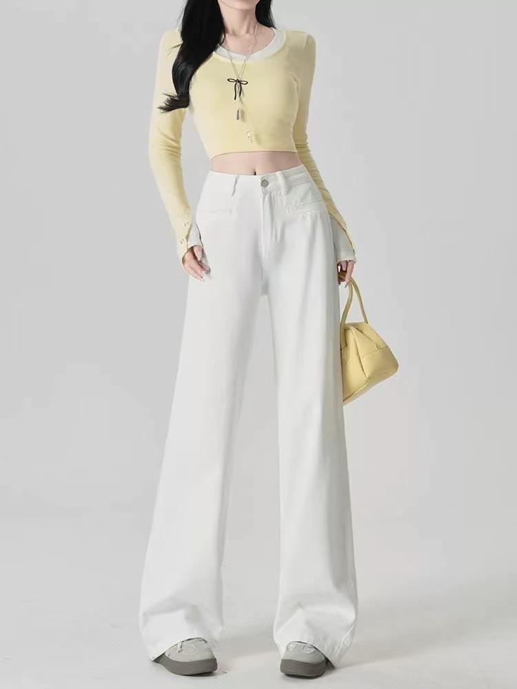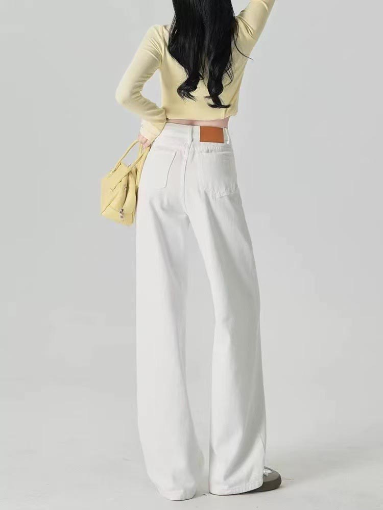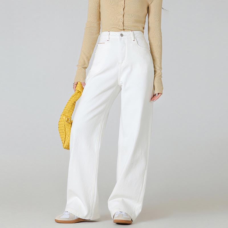 洛诗琳34515春季新款清新百搭高腰显瘦白色阔腿牛仔裤女25231