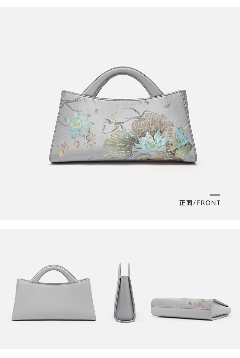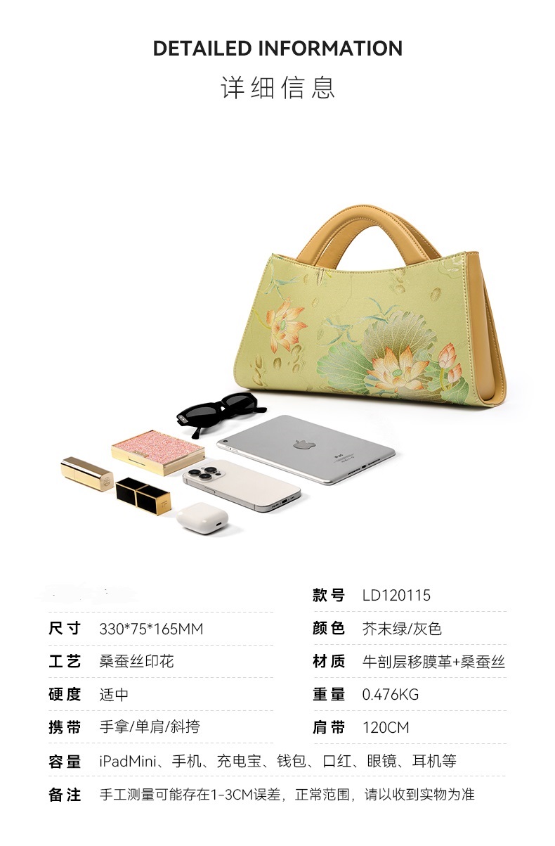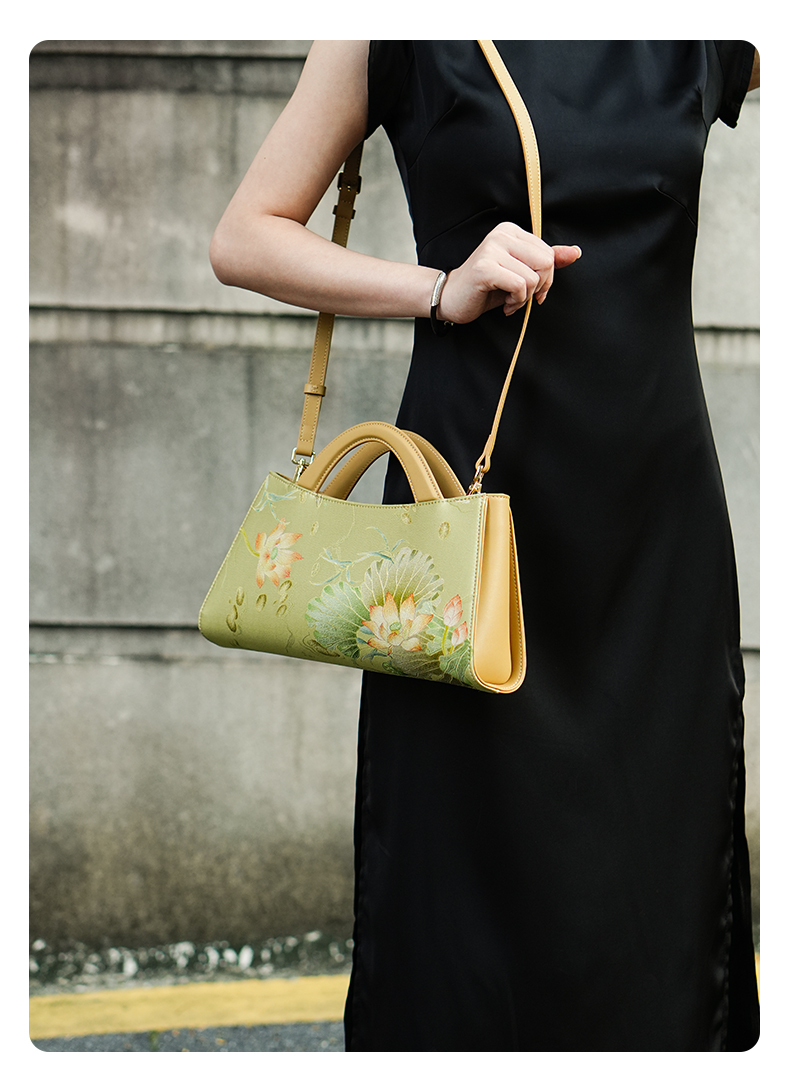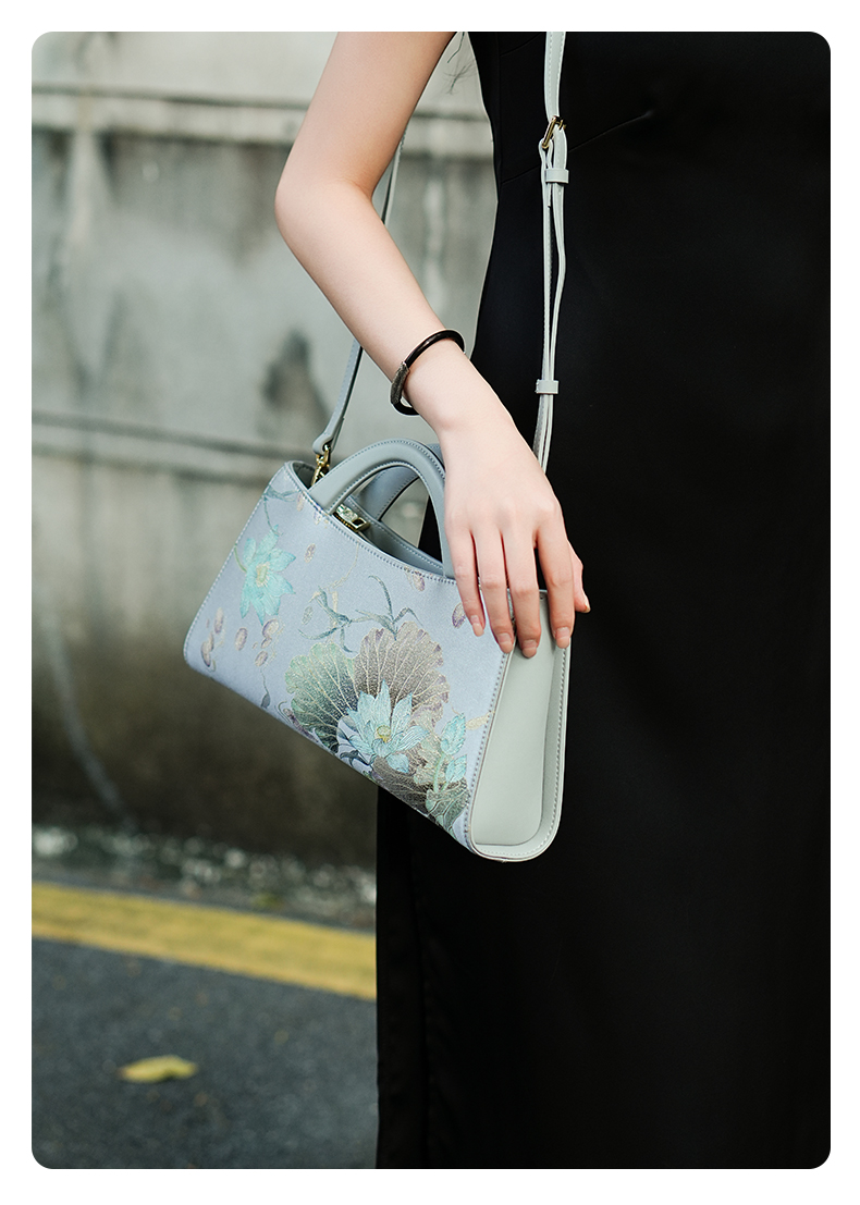 新中式国风桑蚕丝旗袍牛皮印花,高端斜挎单肩手提包包TX-LD120115