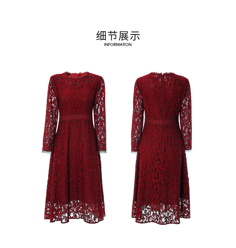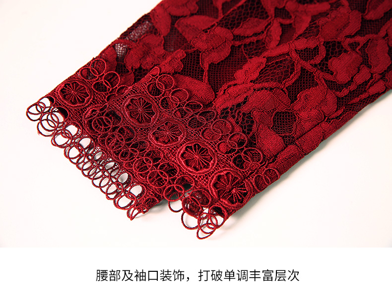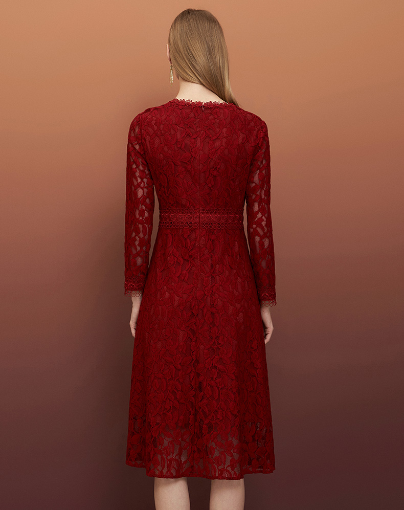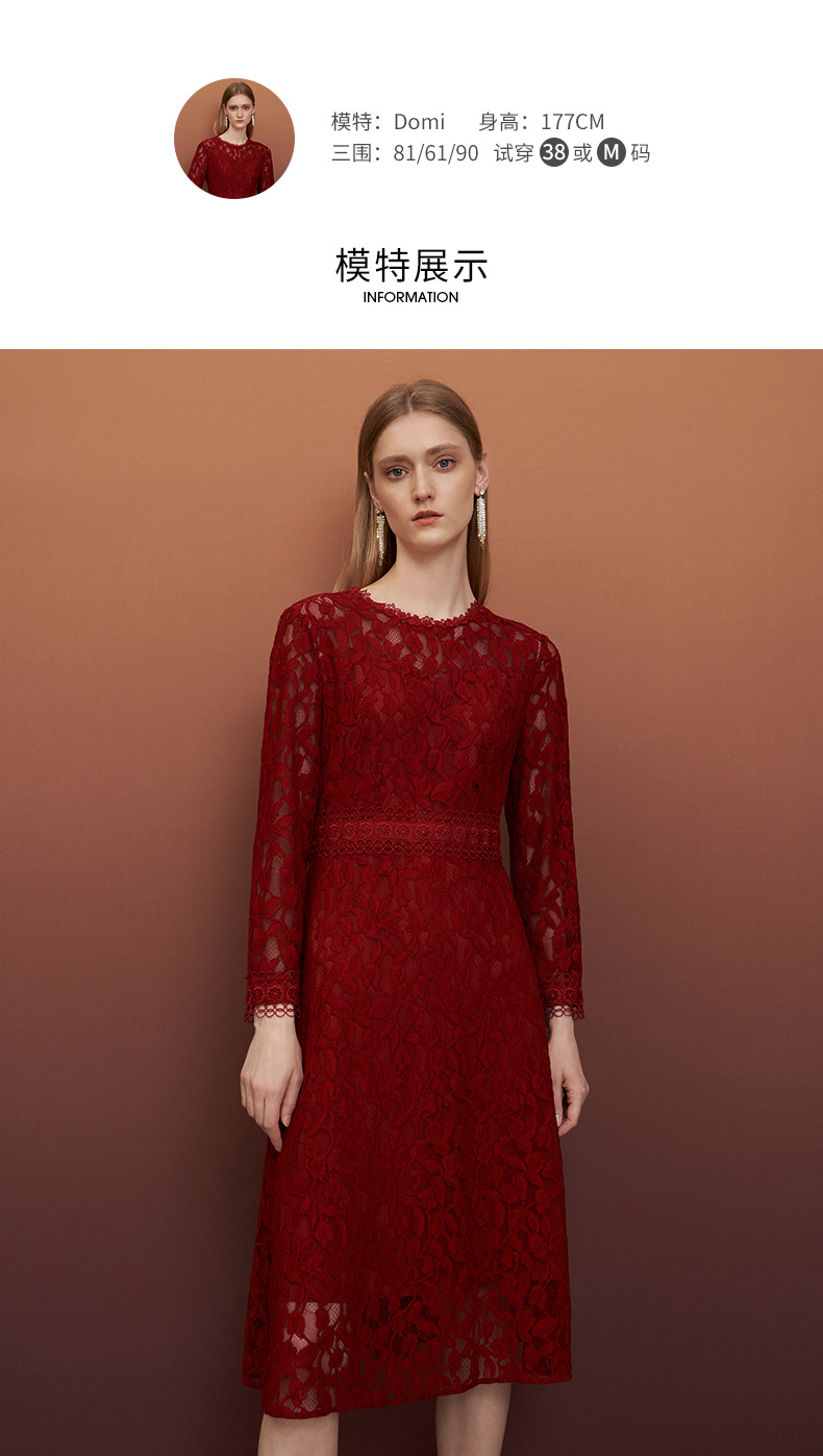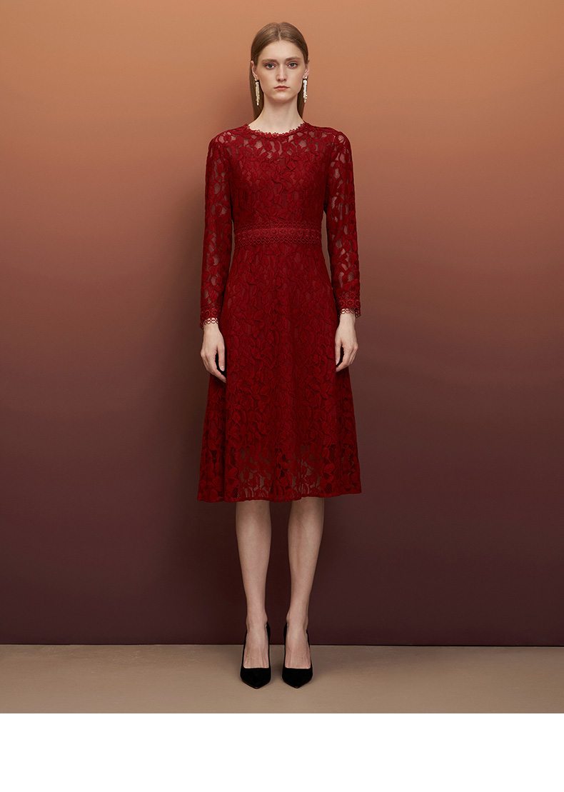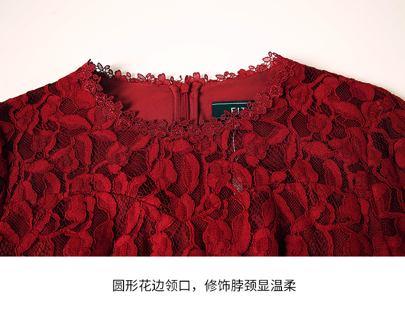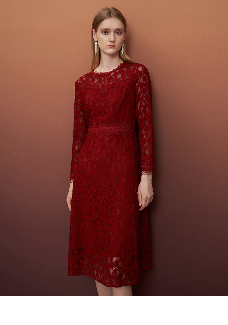 EITIE爱特爱秋季新款蕾丝镂空紧身收腰显瘦长袖连衣裙A字裙女6707428