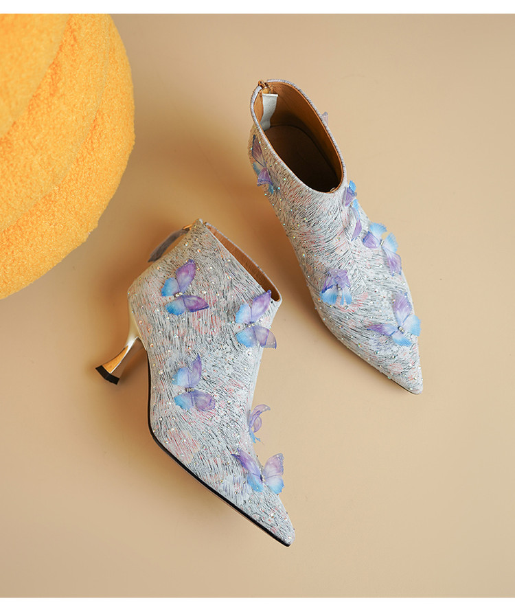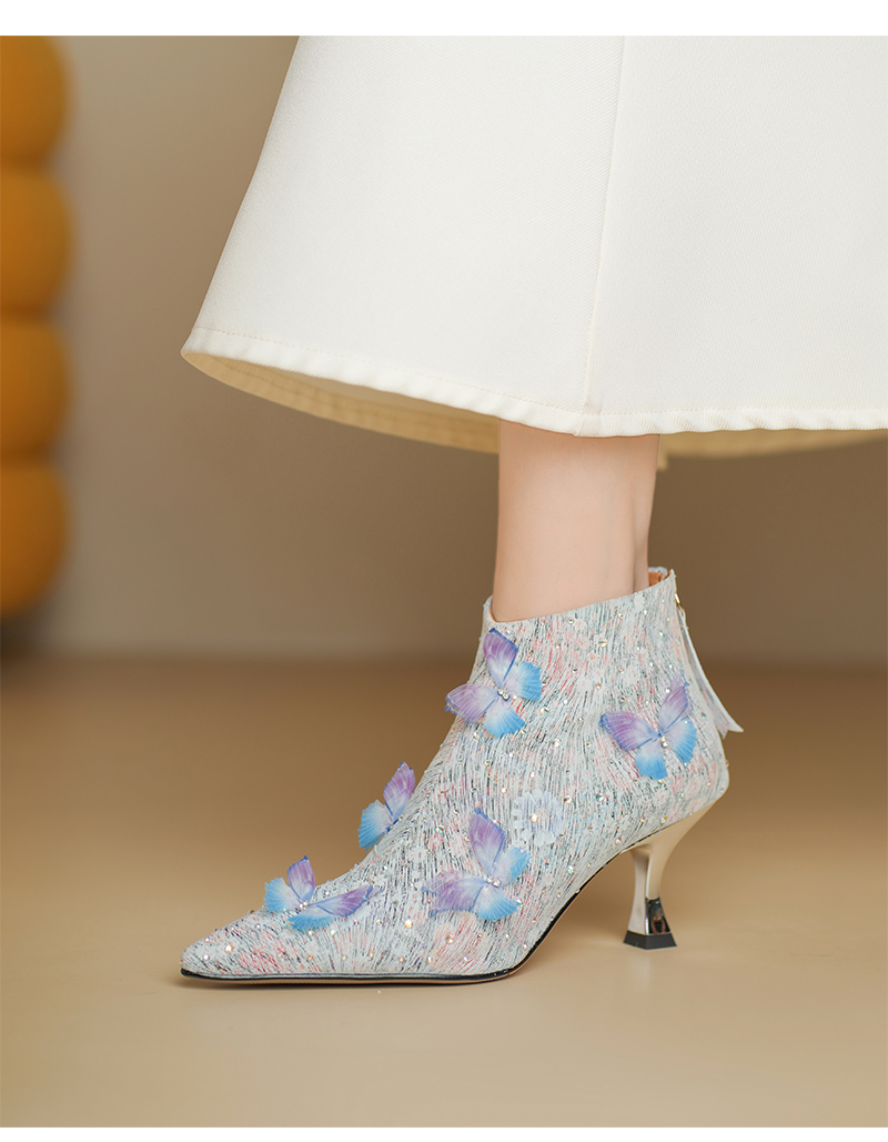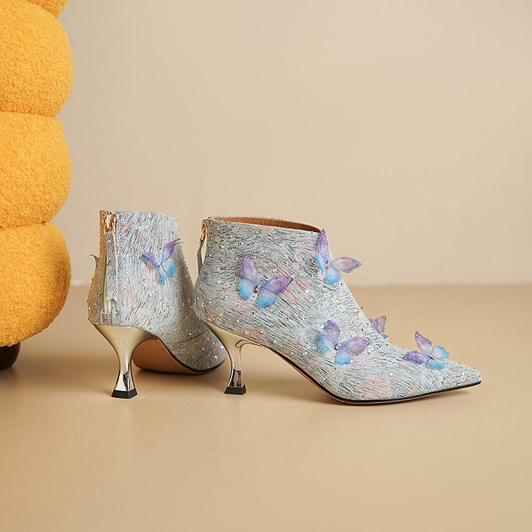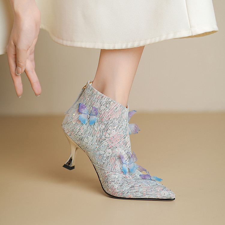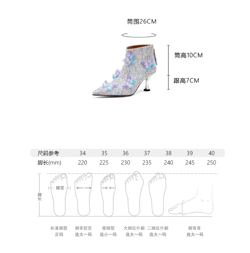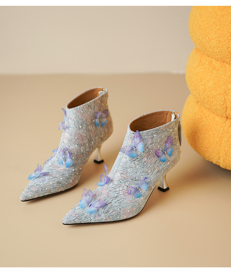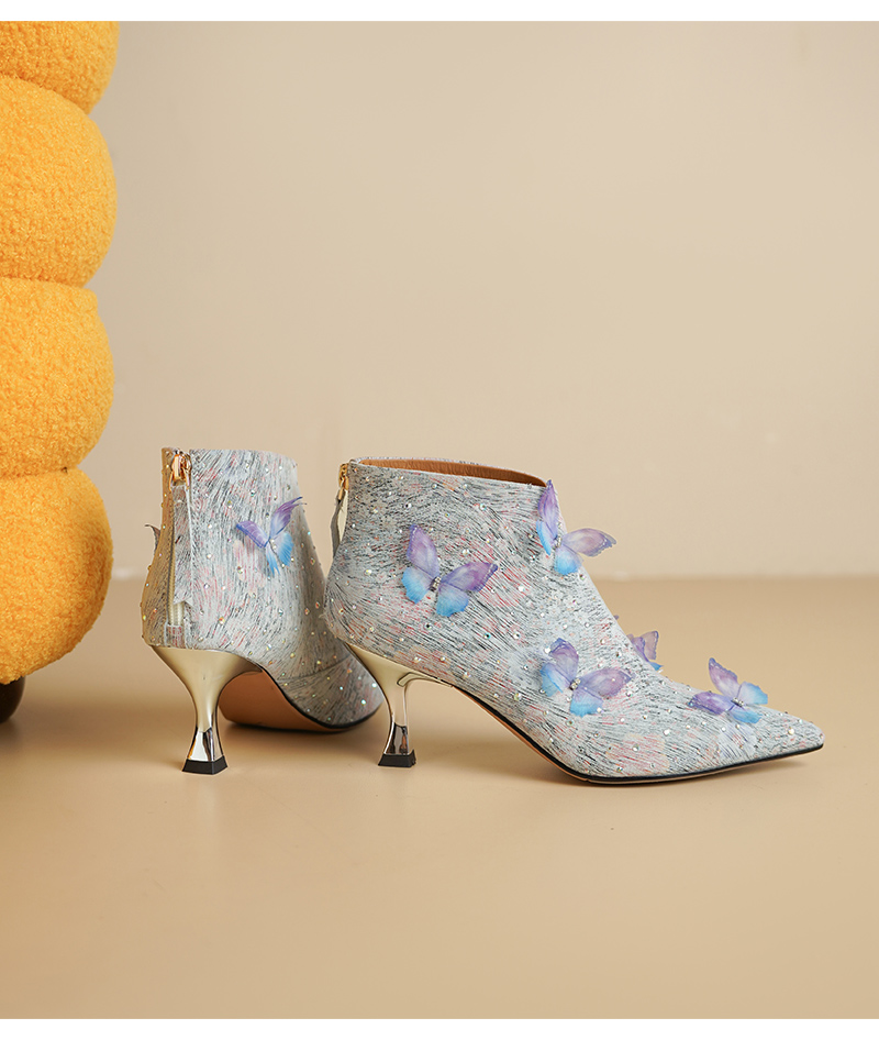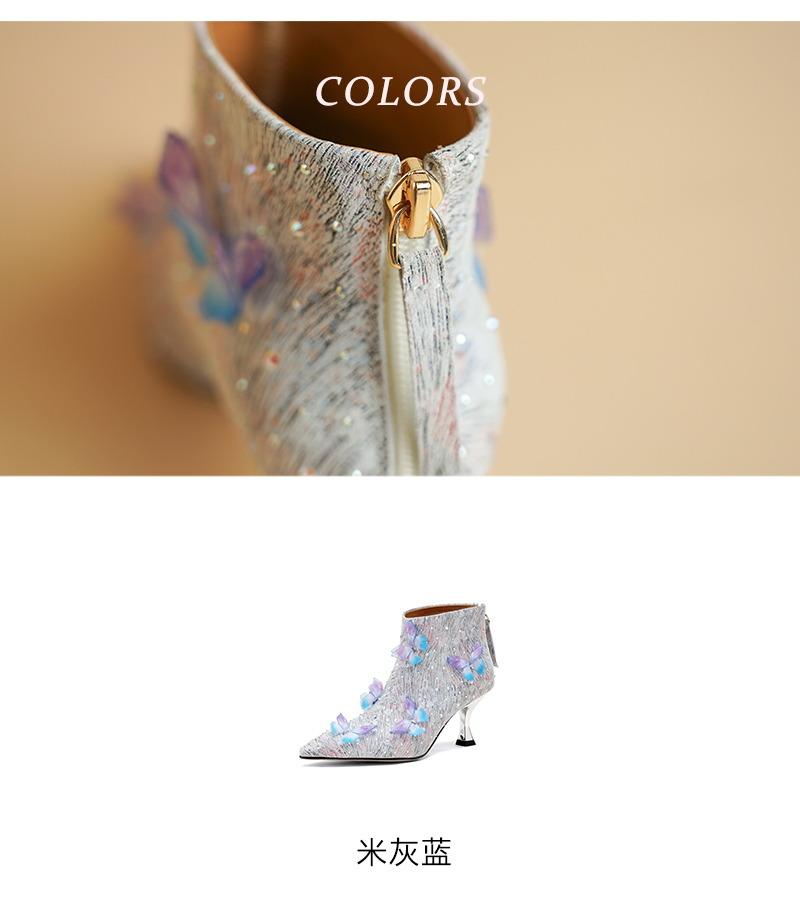 【预售5天】大码法式时尚真皮高跟鞋女细跟新款水钻蝴蝶女短靴春秋单靴ALS&2573