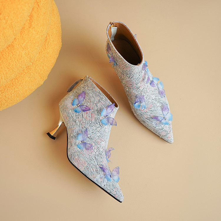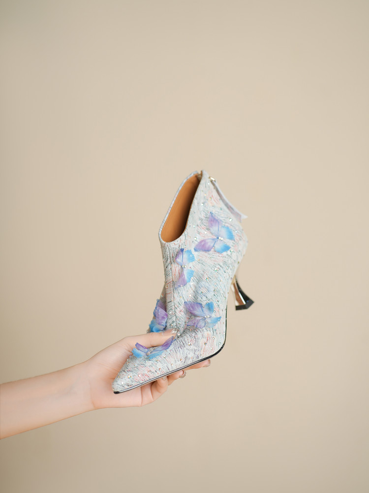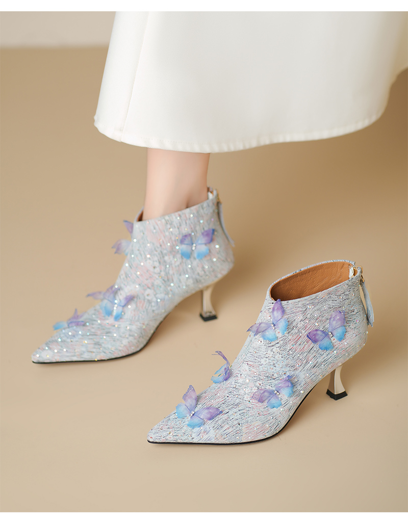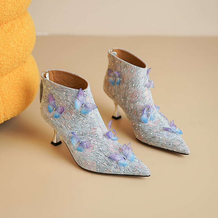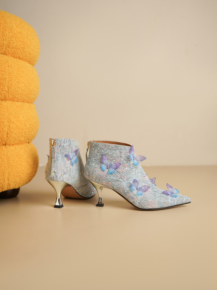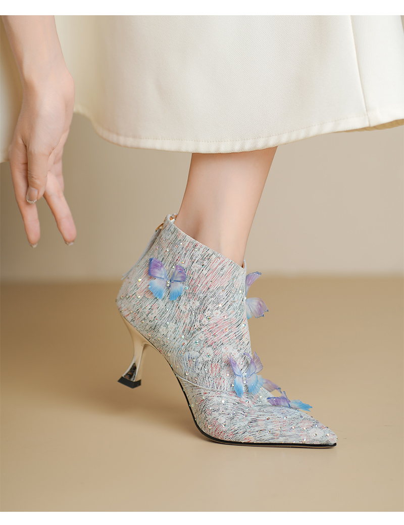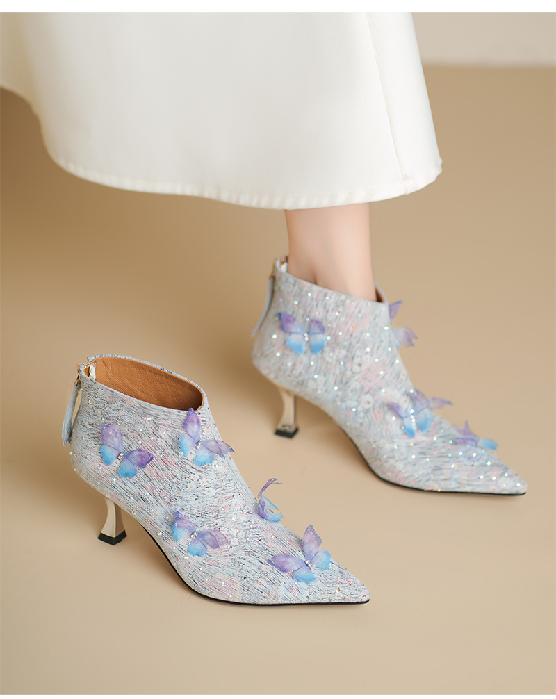 【预售5天】大码法式时尚真皮高跟鞋女细跟新款水钻蝴蝶女短靴春秋单靴ALS&2573