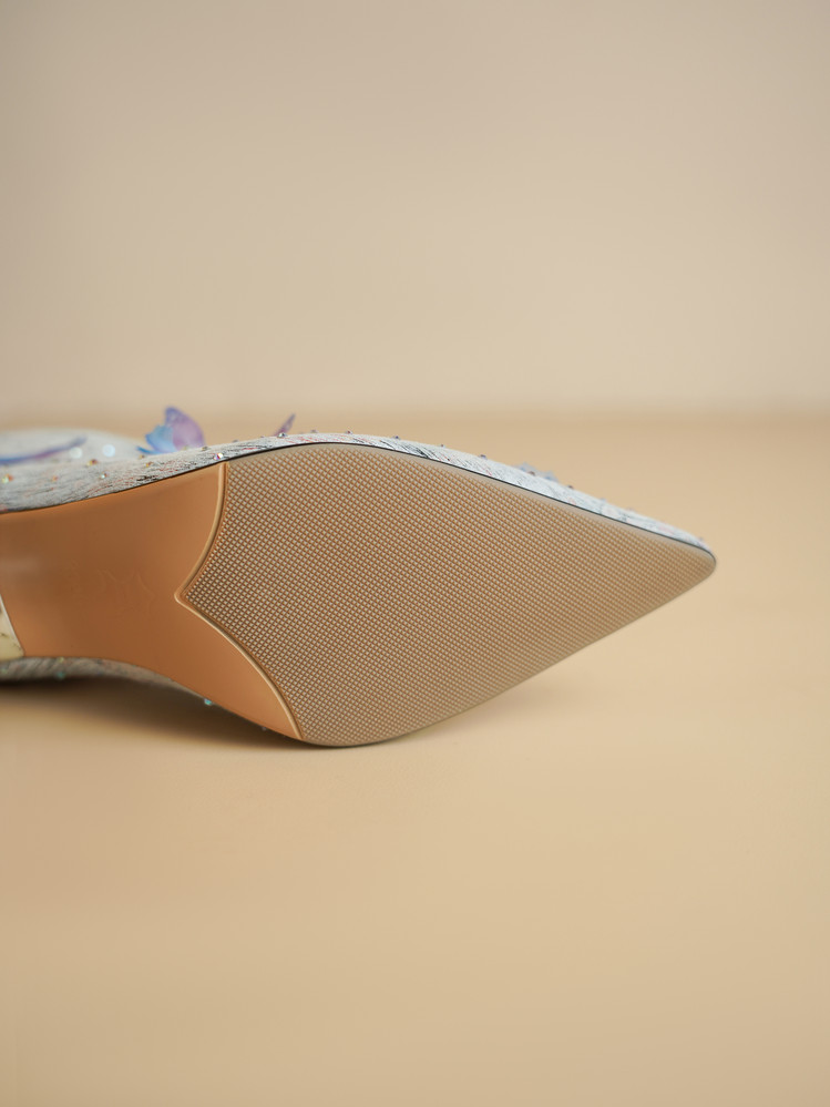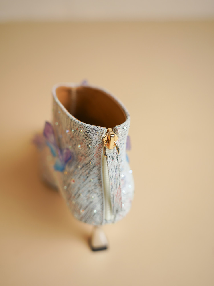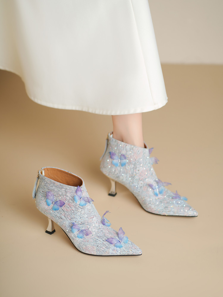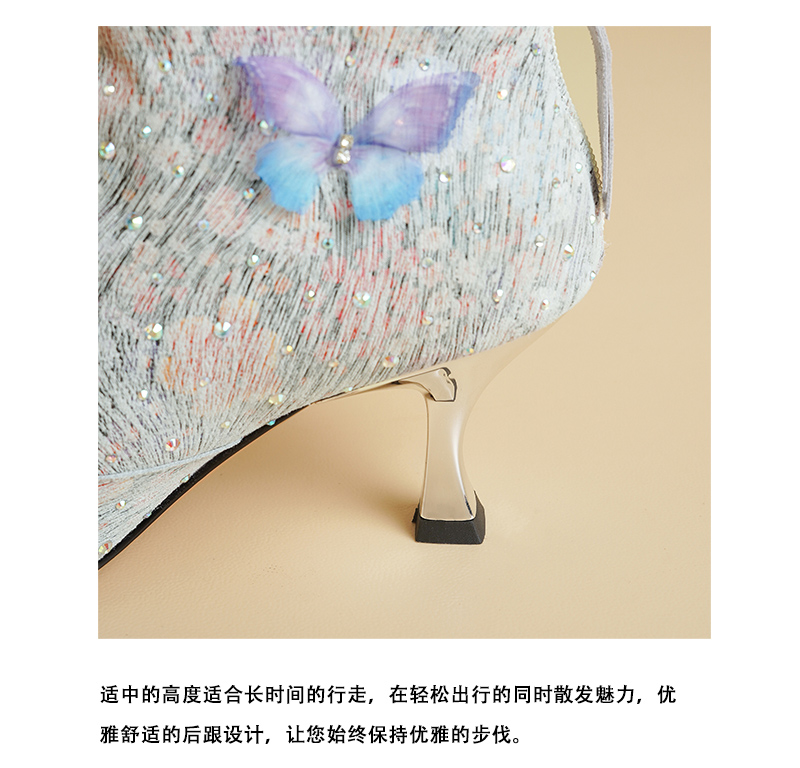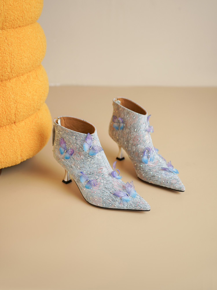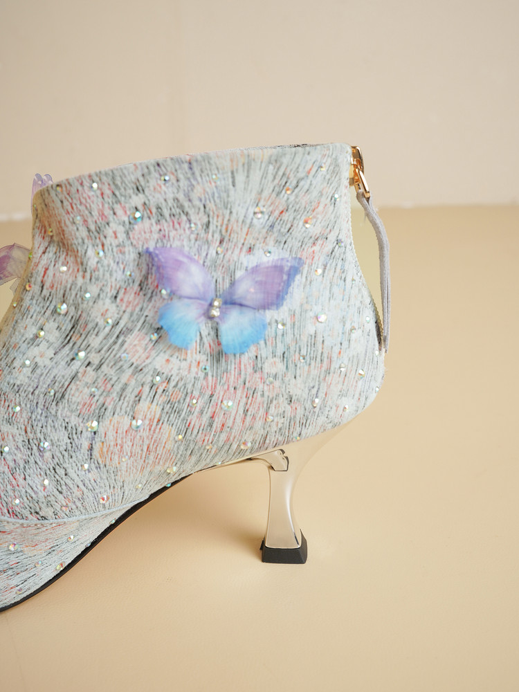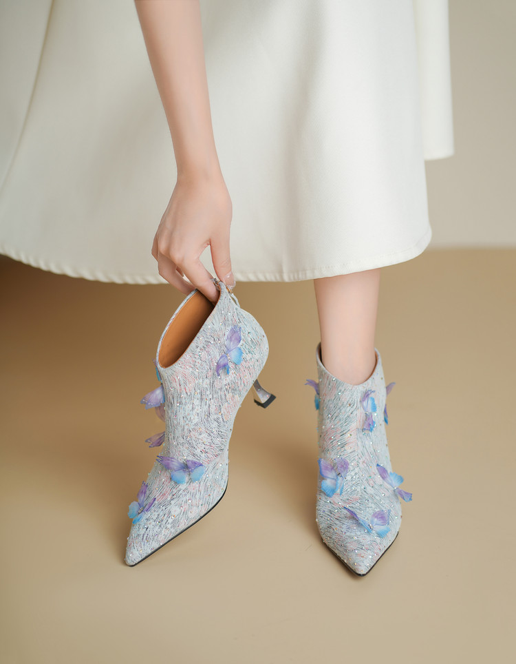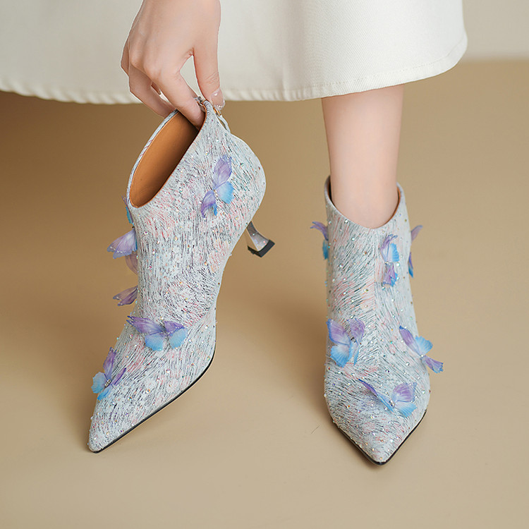 【预售5天】大码法式时尚真皮高跟鞋女细跟新款水钻蝴蝶女短靴春秋单靴ALS&2573