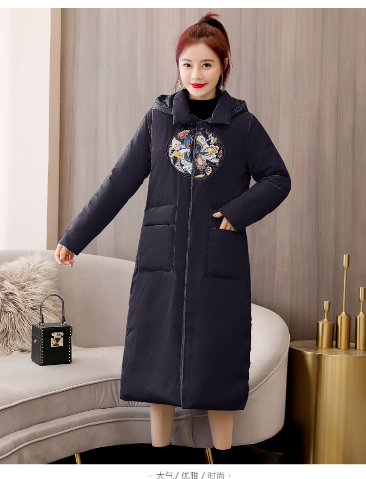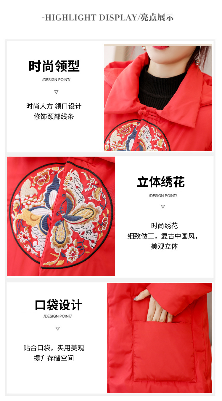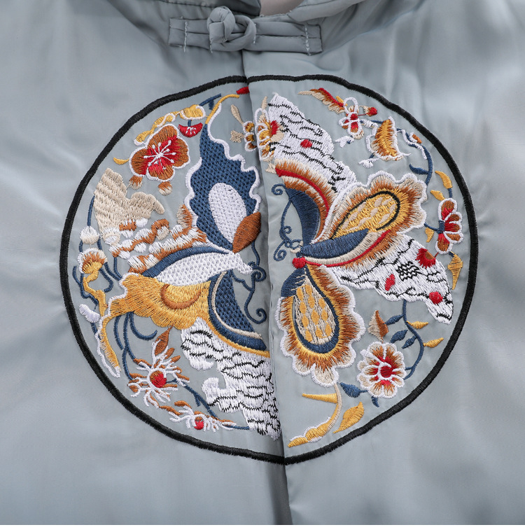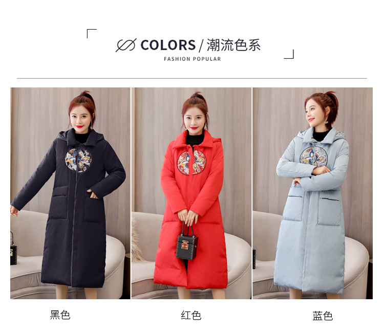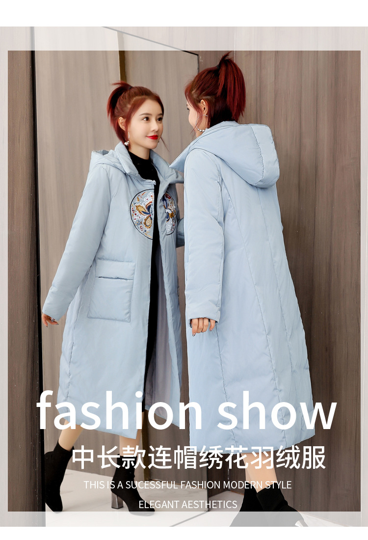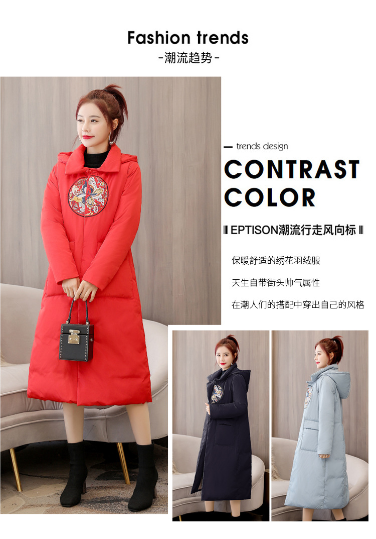 民族风绣花羽绒服,冬季新款保暖复古中长款加厚白鸭绒外套HR-WHHL589