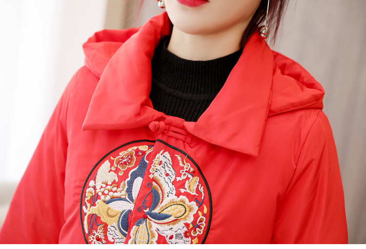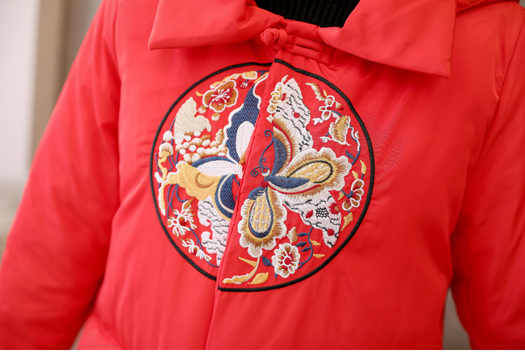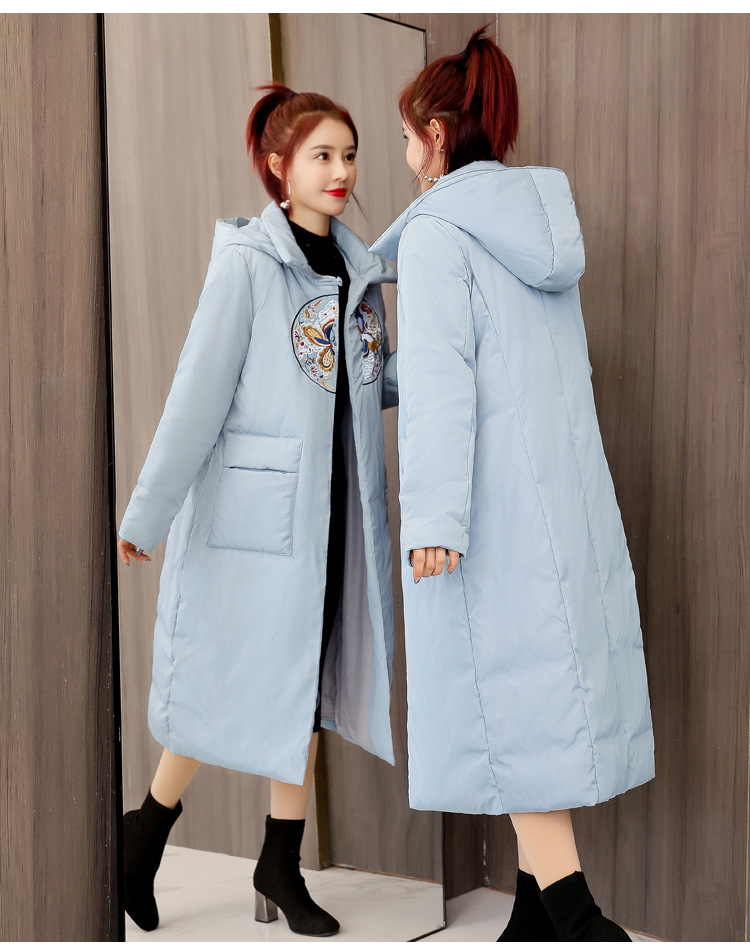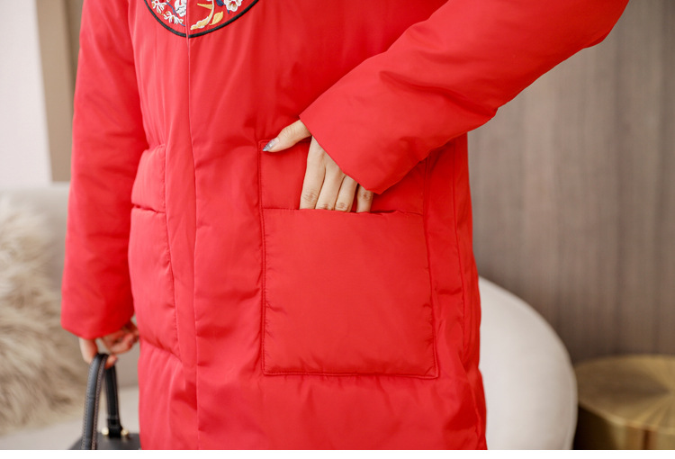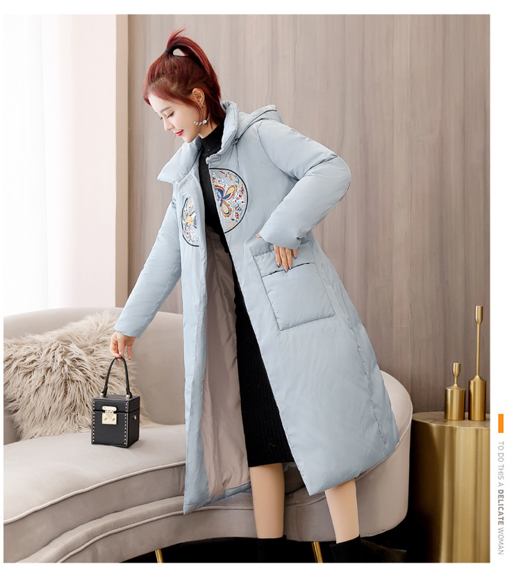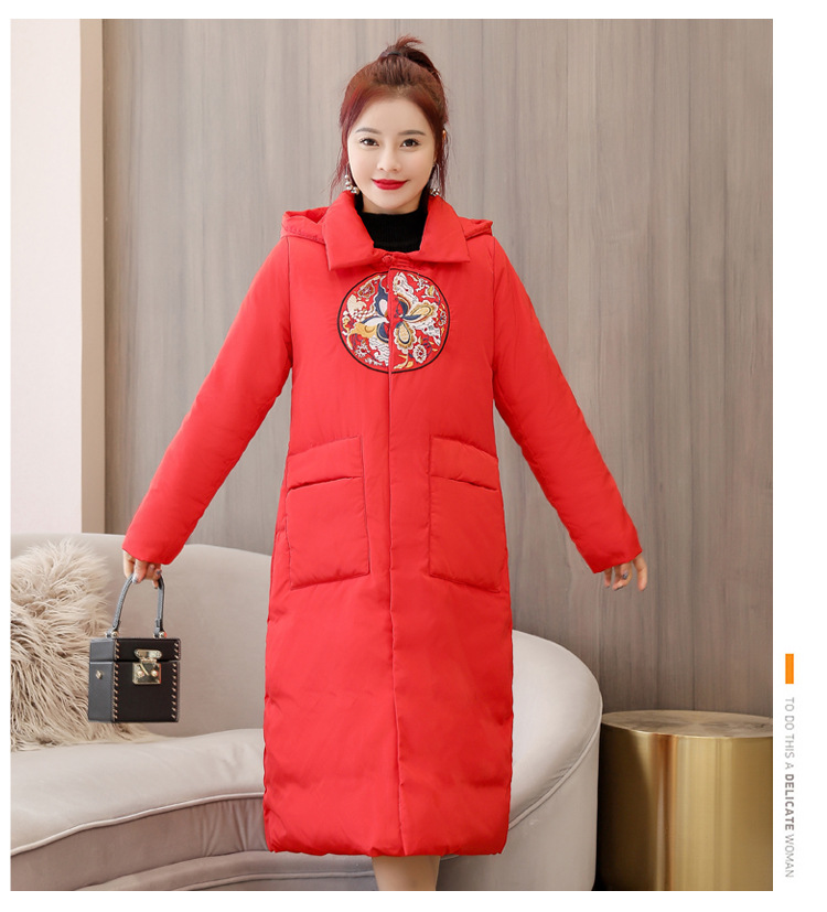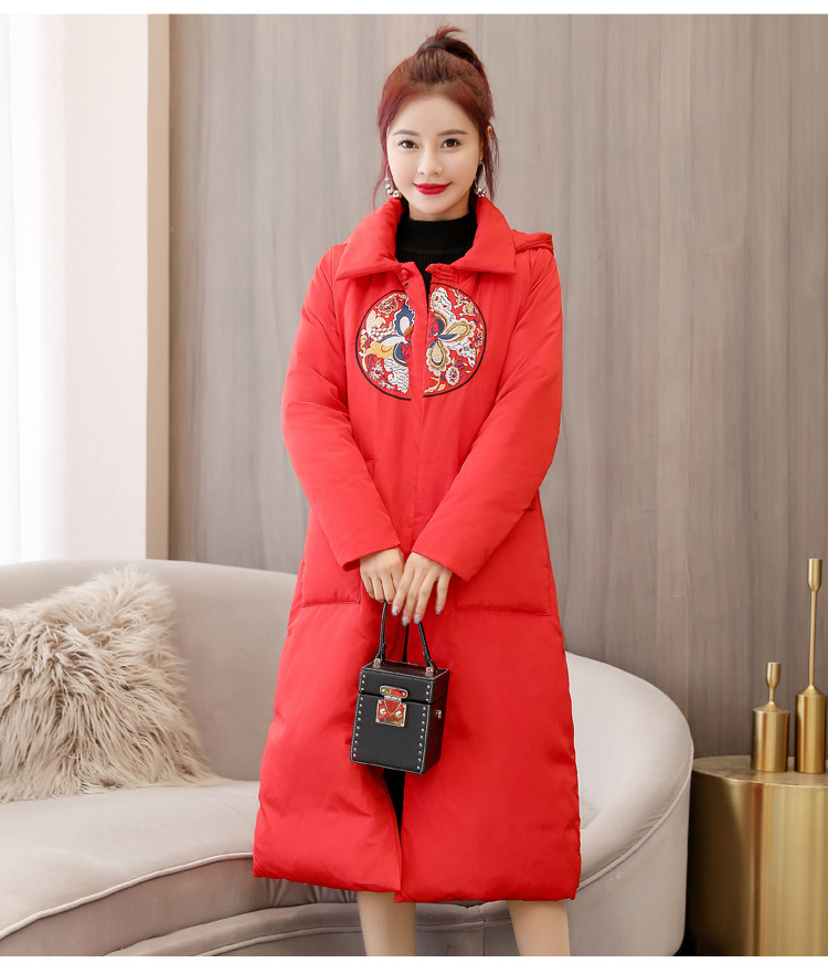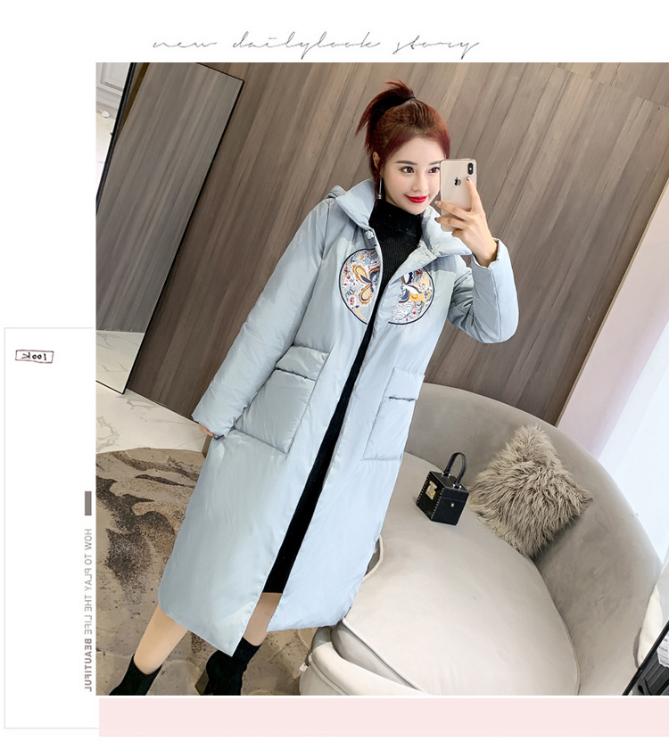 民族风绣花羽绒服,冬季新款保暖复古中长款加厚白鸭绒外套HR-WHHL589