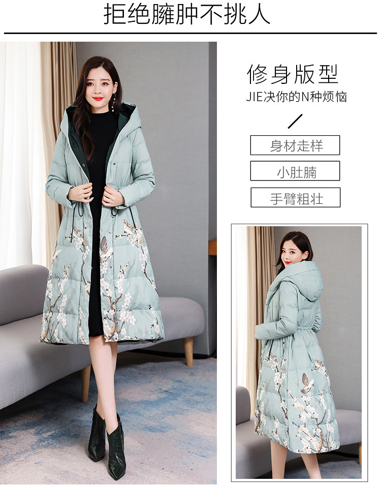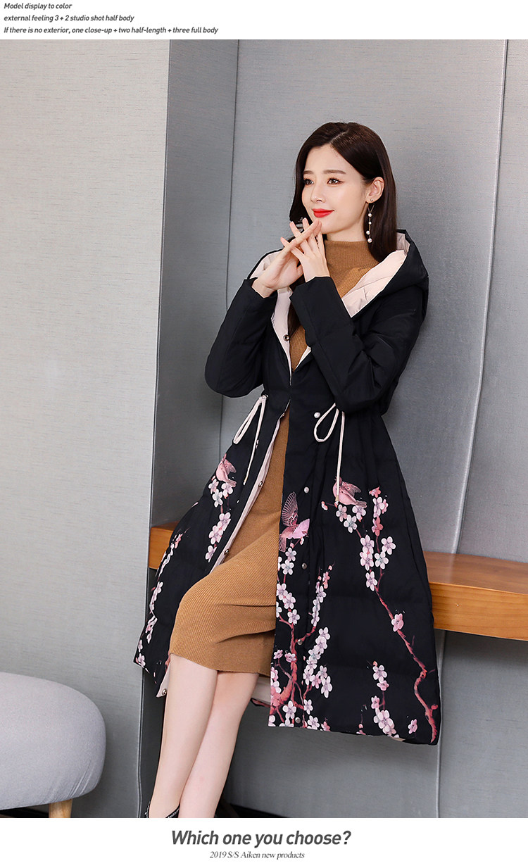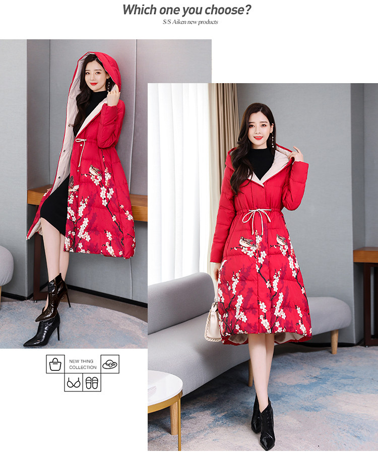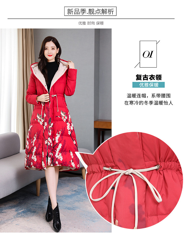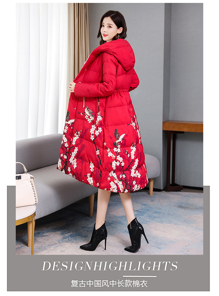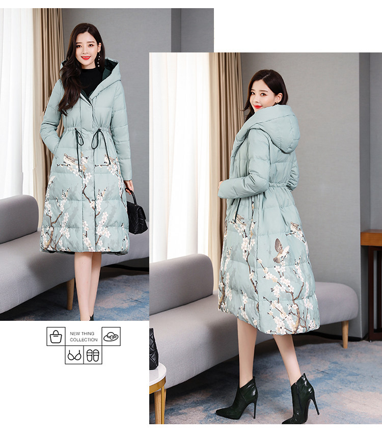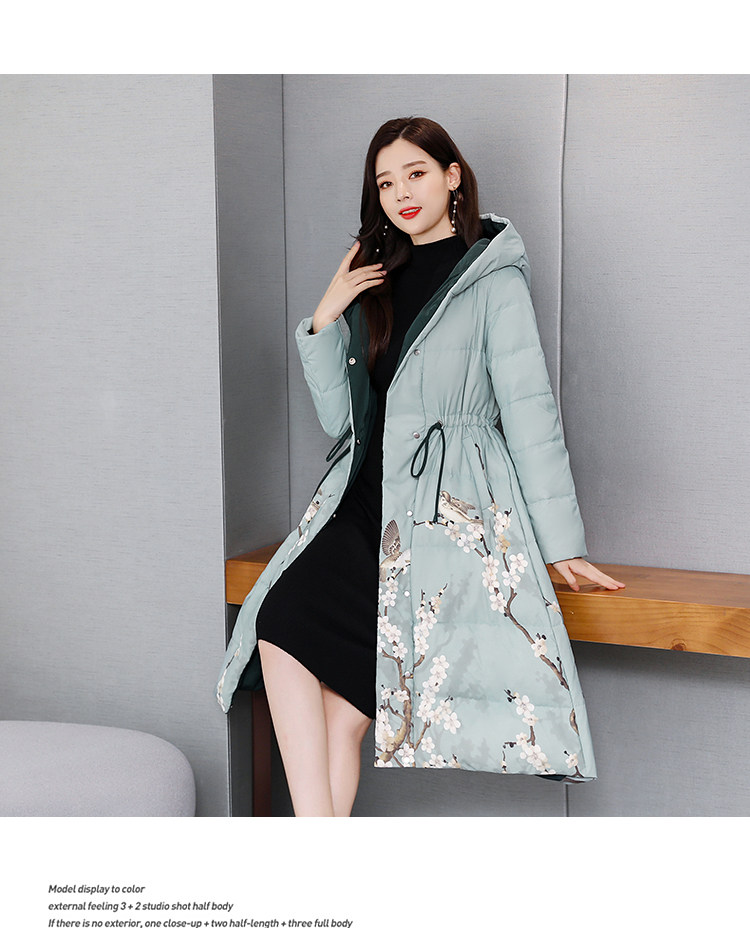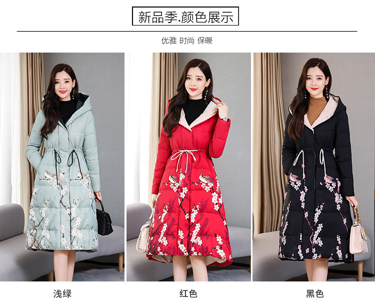 WZNH-HRYZ6917新款时尚气质修身百搭连帽中长款印花棉服