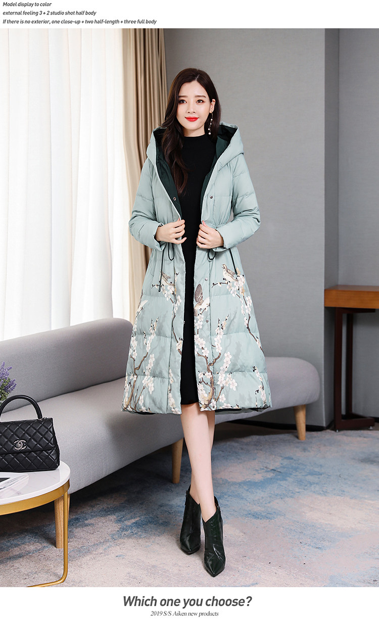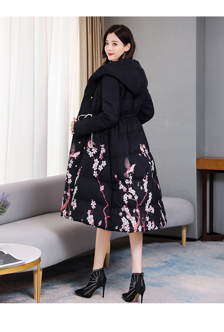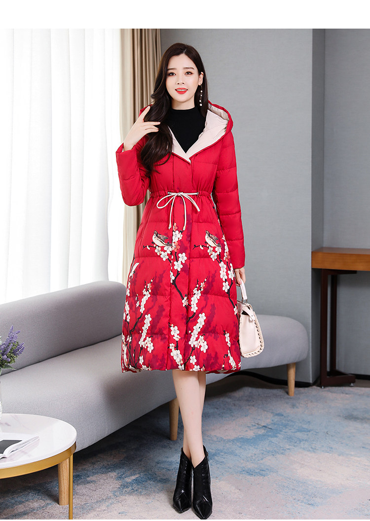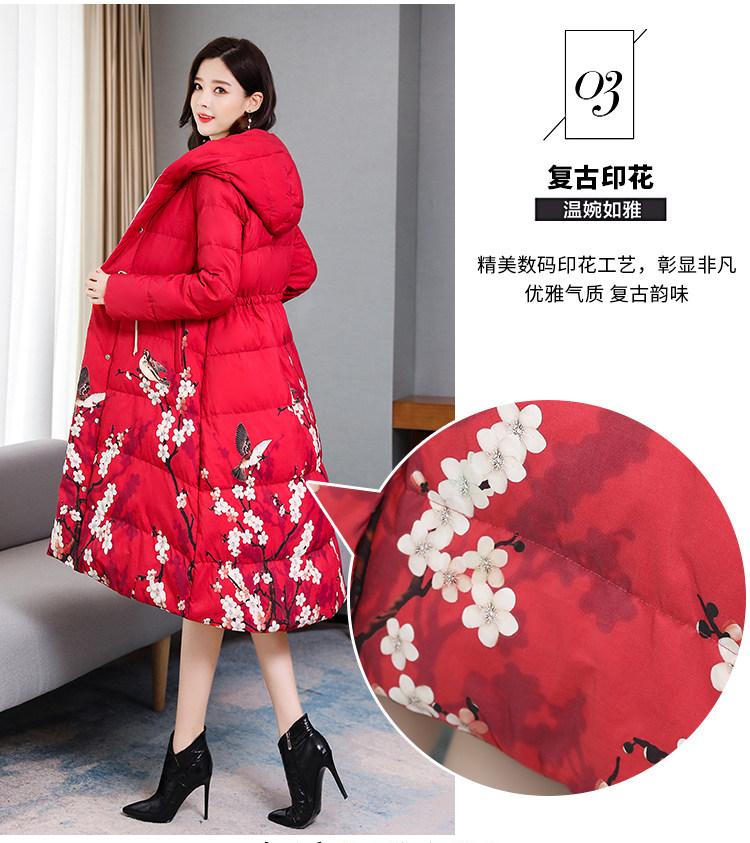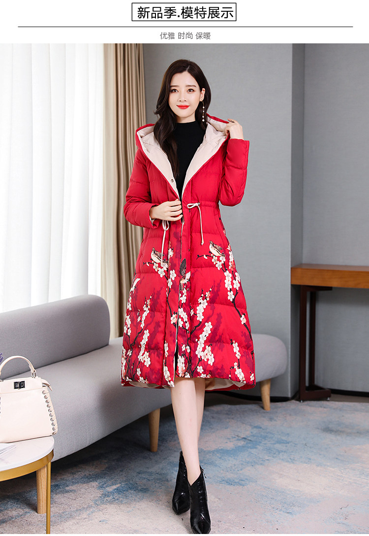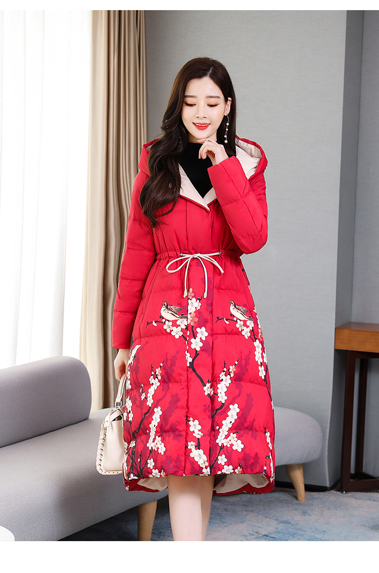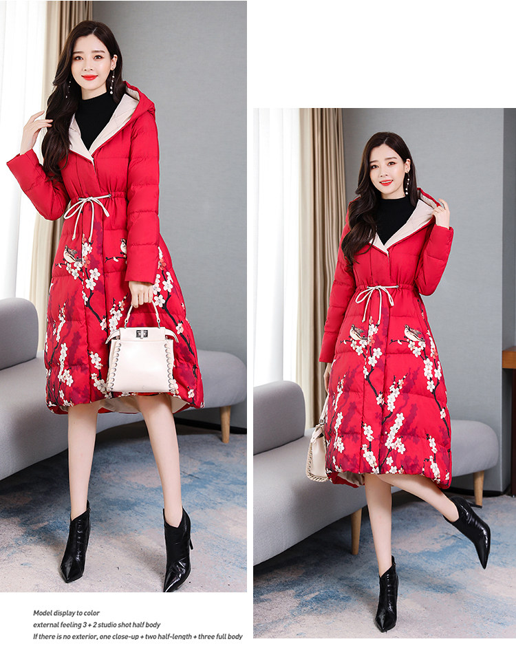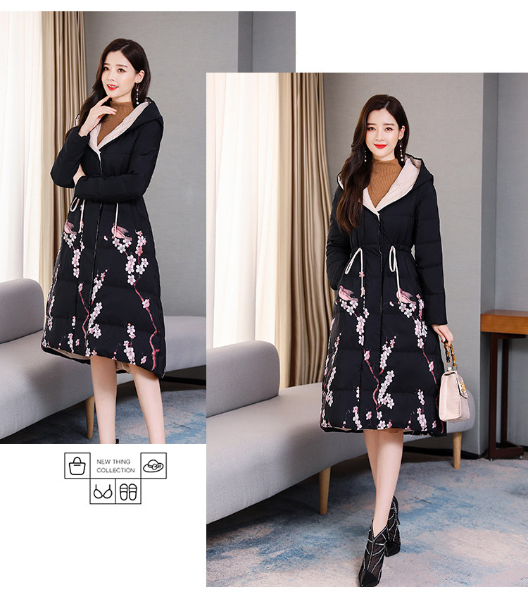 WZNH-HRYZ6917新款时尚气质修身百搭连帽中长款印花棉服