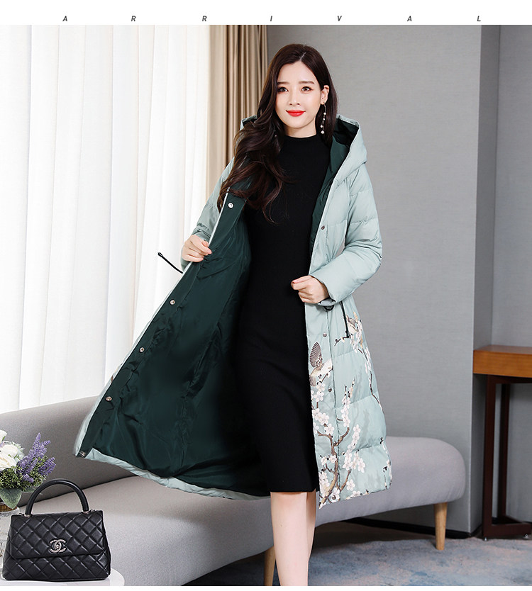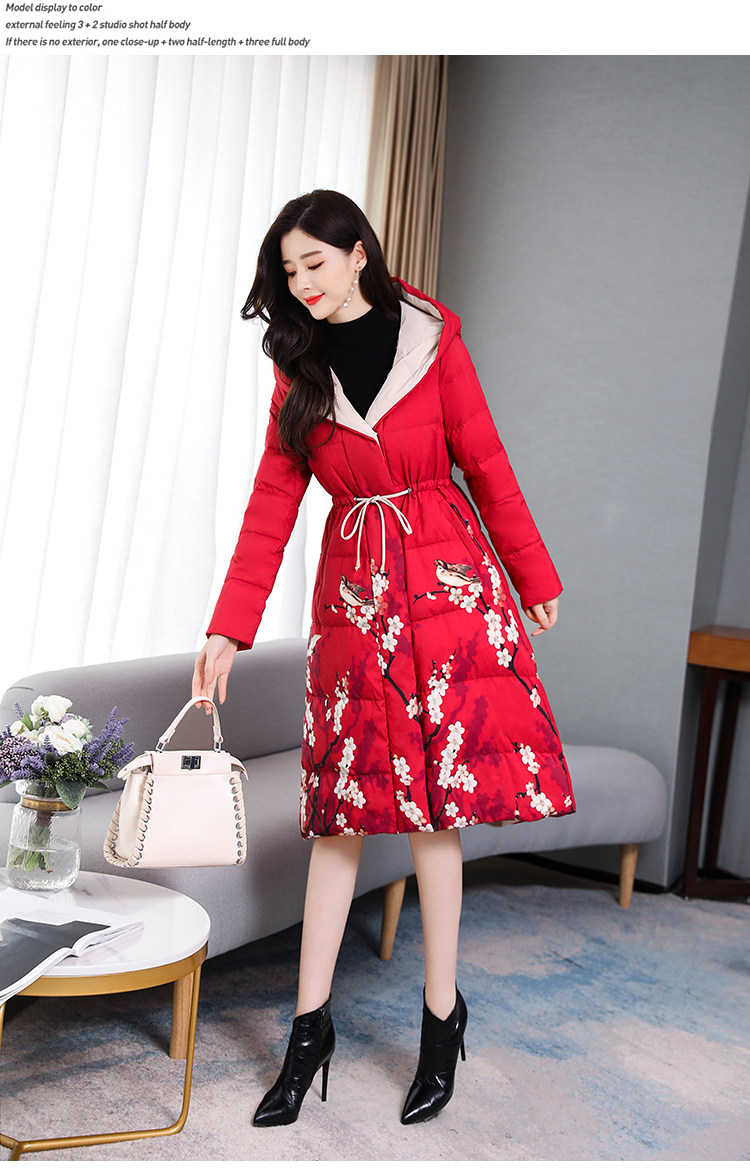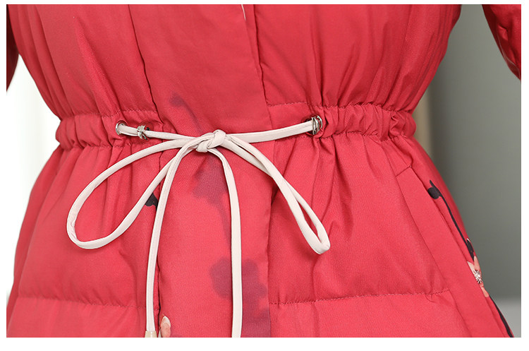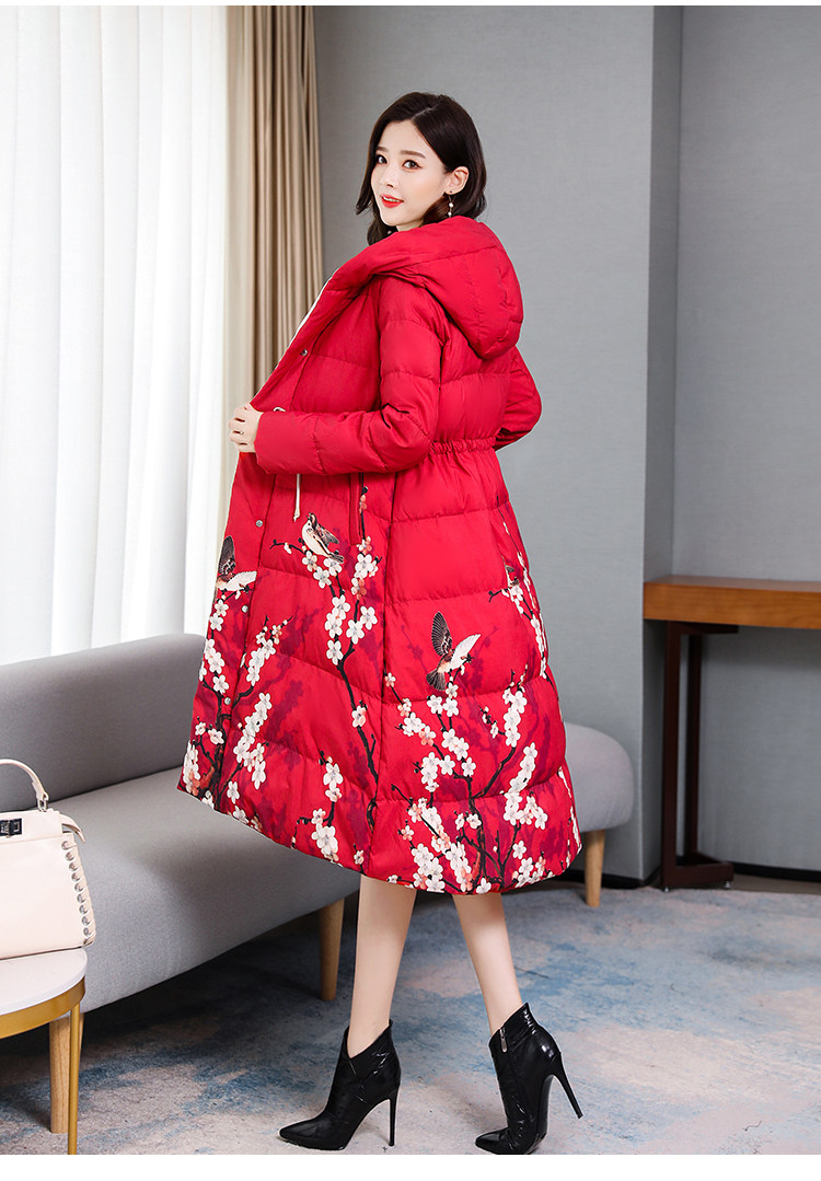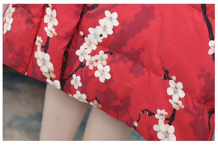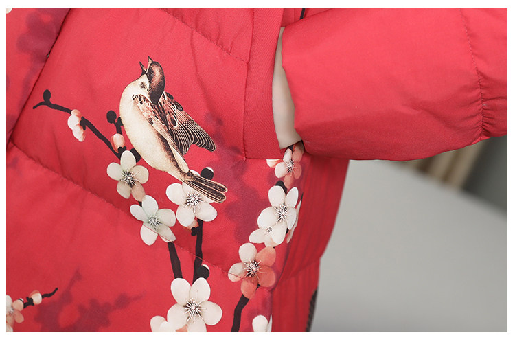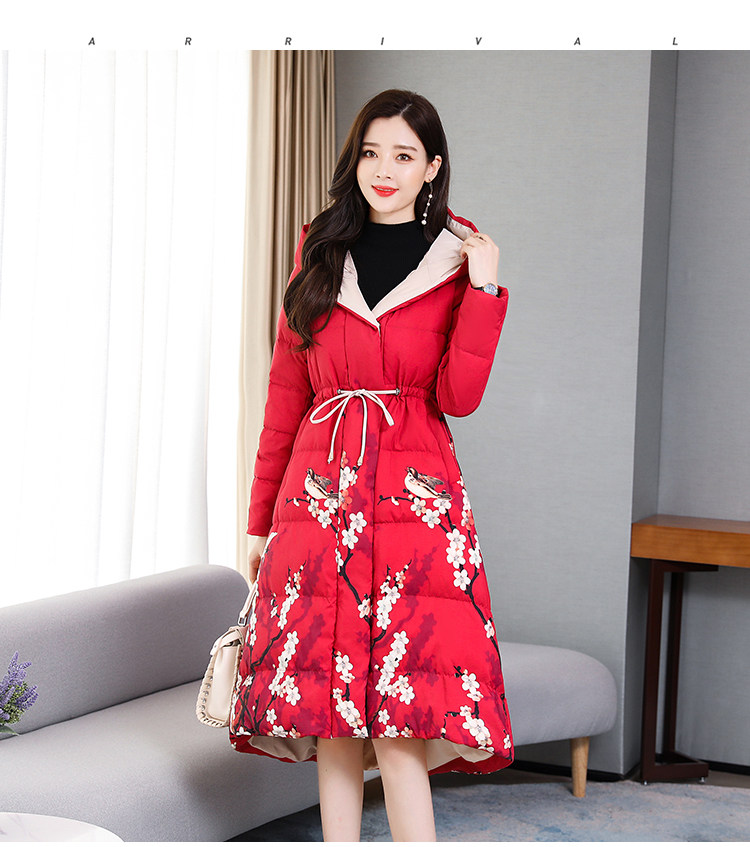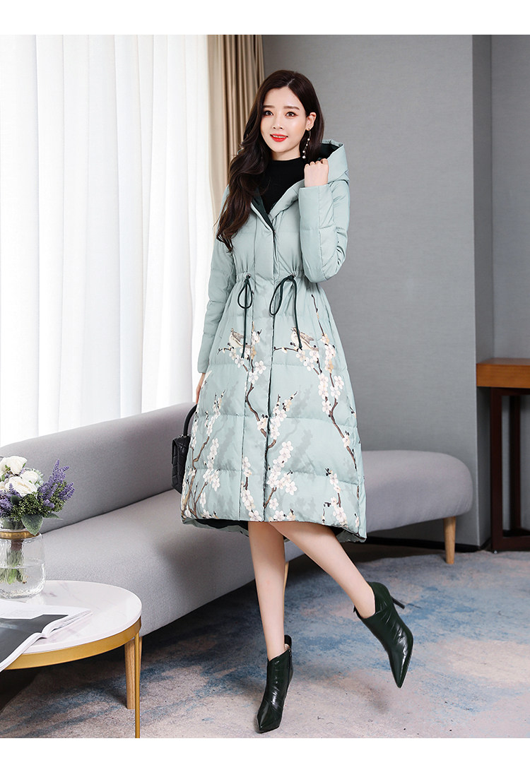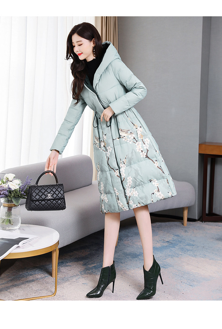WZNH-HRYZ6917新款时尚气质修身百搭连帽中长款印花棉服