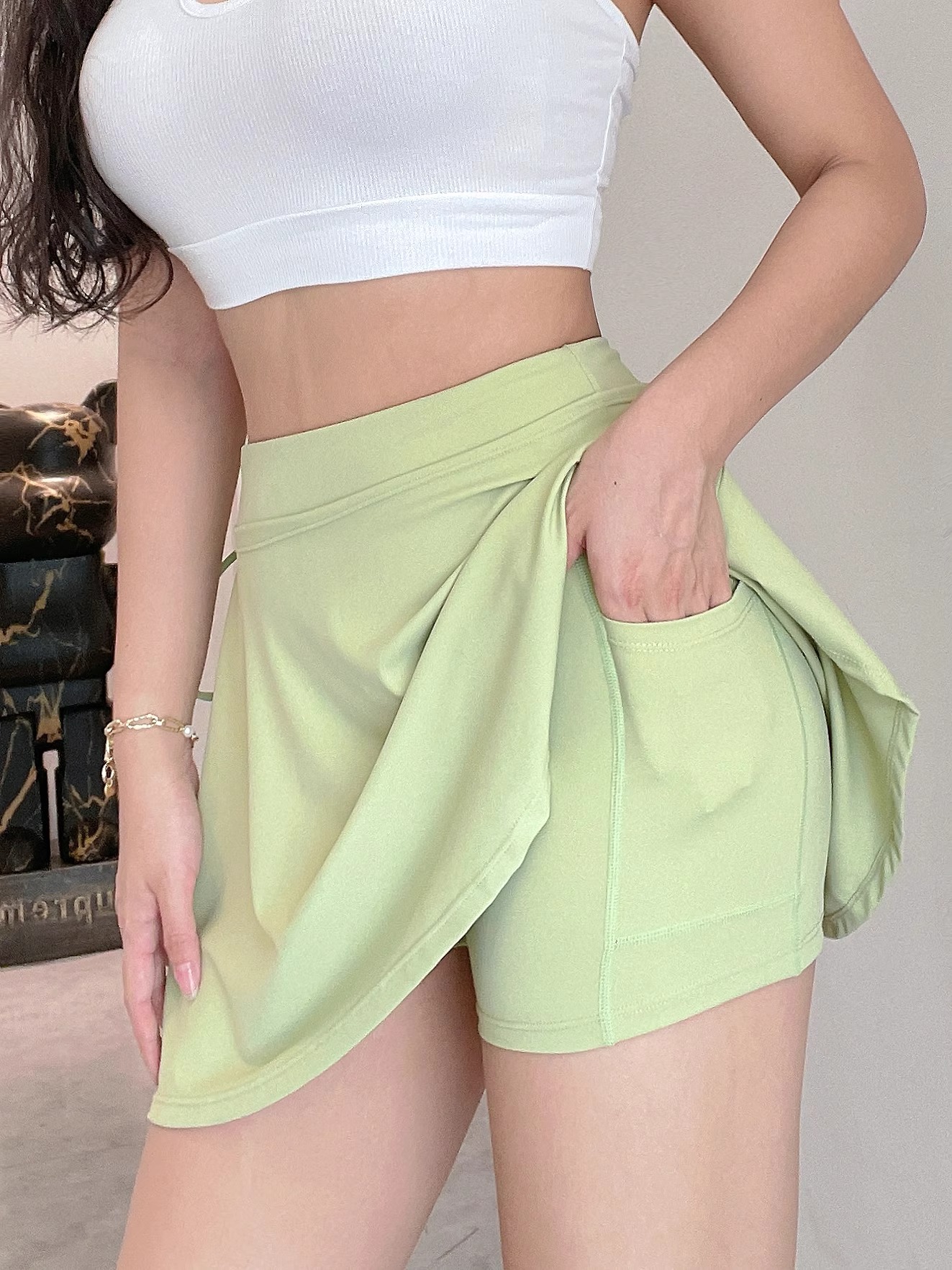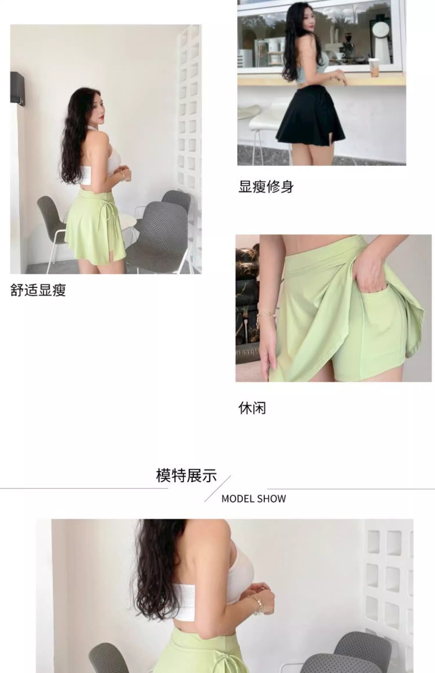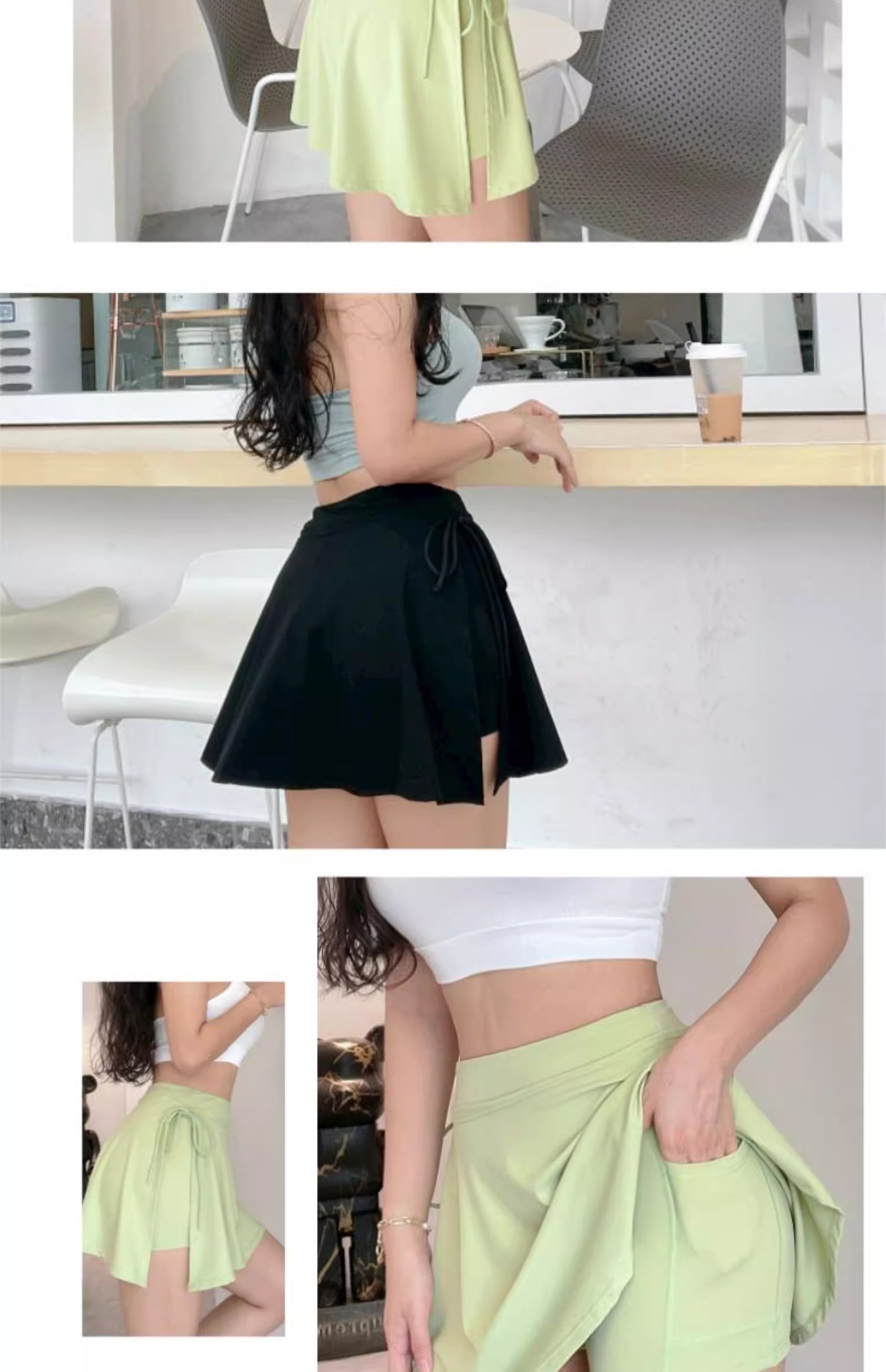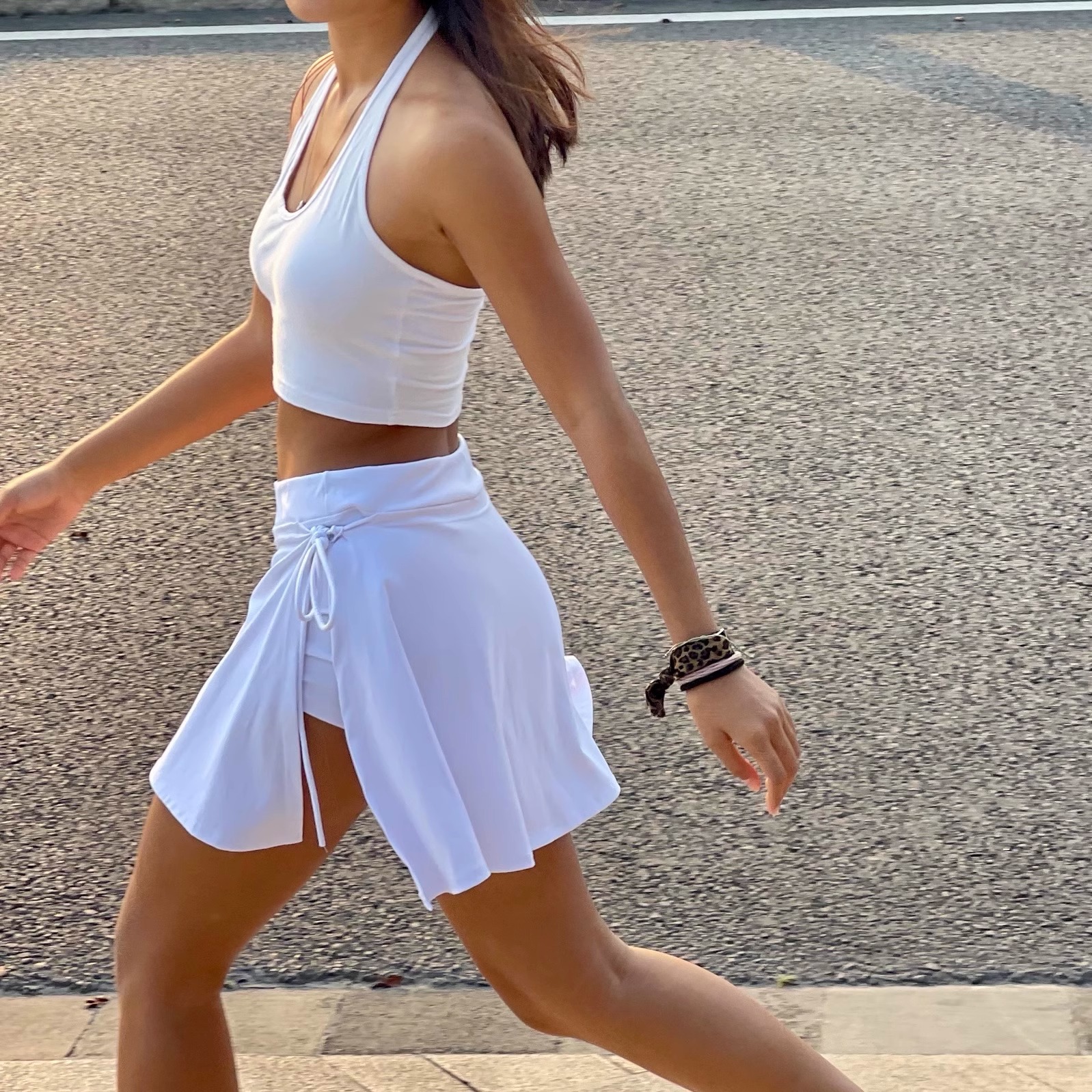 跃牌【美西西系列】新款运动瑜伽短裙女网球裙防走光假两件侧开叉健身房短裙短裤DK-059