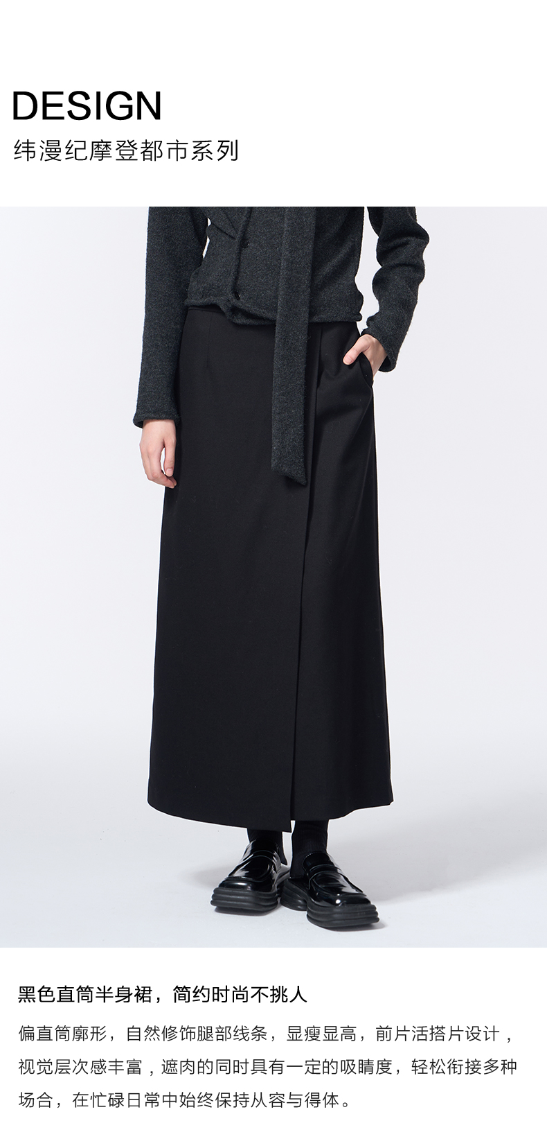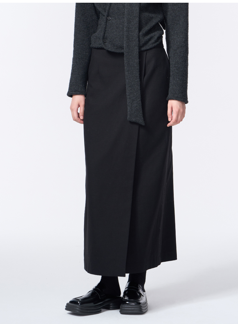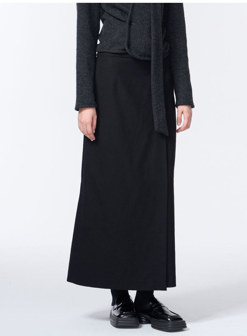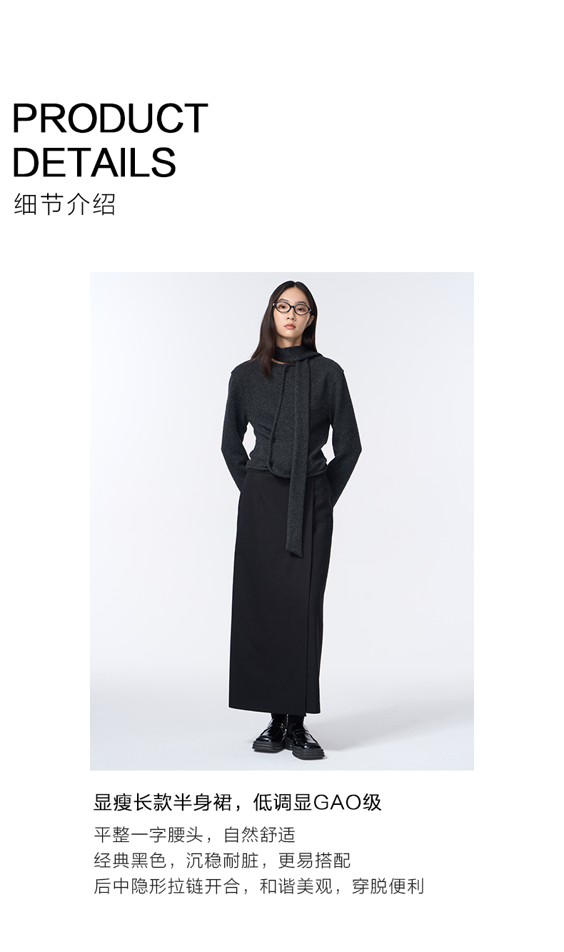 VIMAGE纬漫纪长款休闲百搭气质开叉黑色直筒半身裙2025秋季新款V2406110