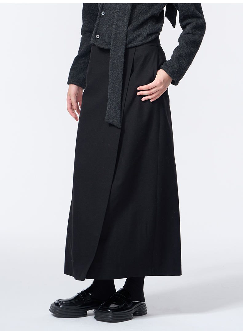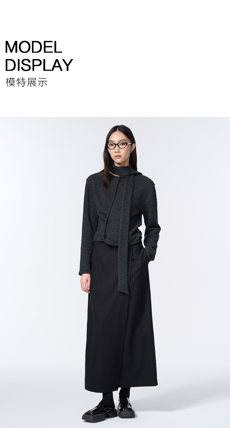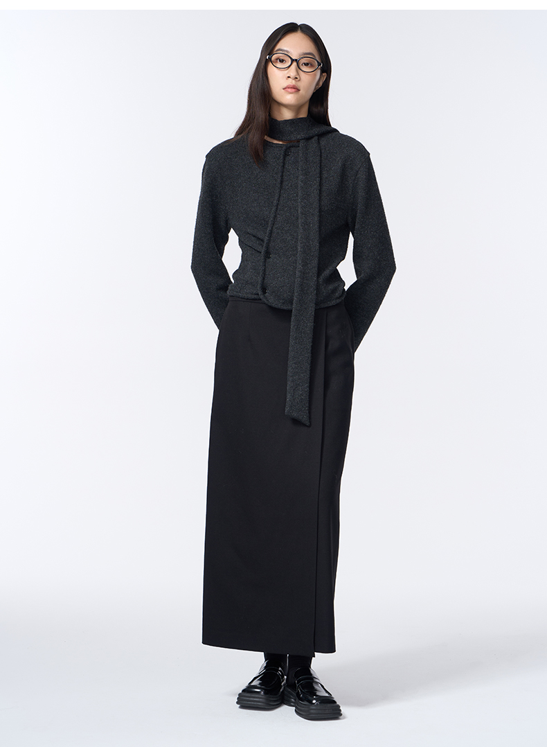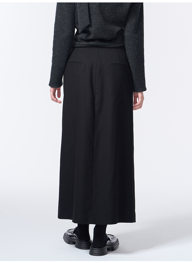 VIMAGE纬漫纪长款休闲百搭气质开叉黑色直筒半身裙2025秋季新款V2406110