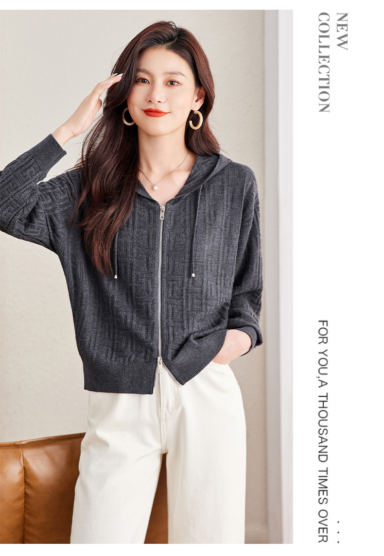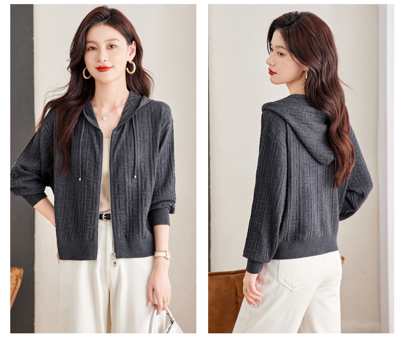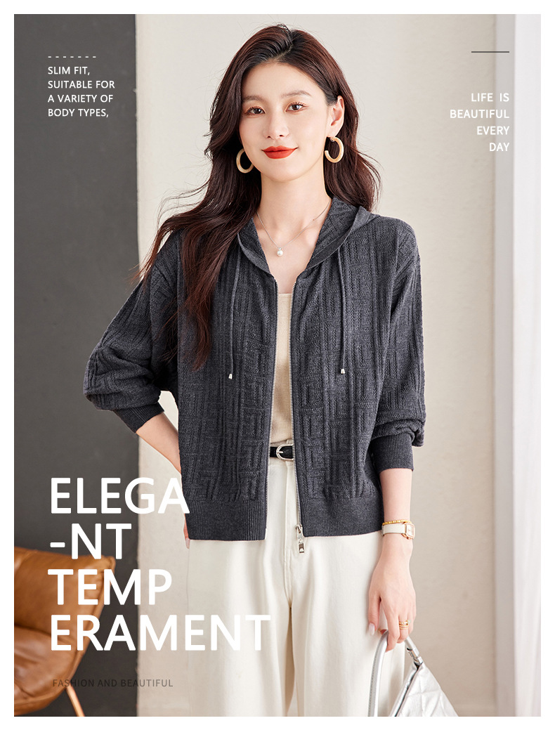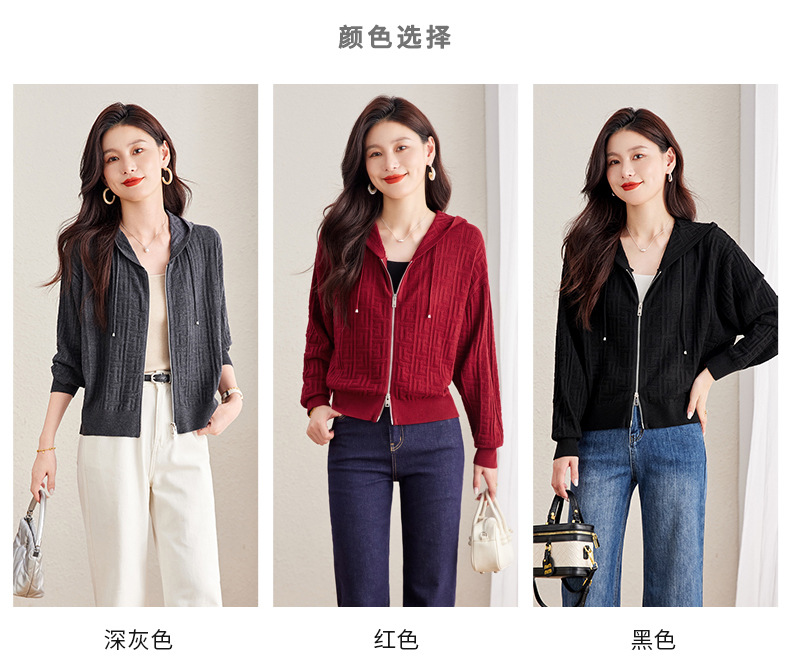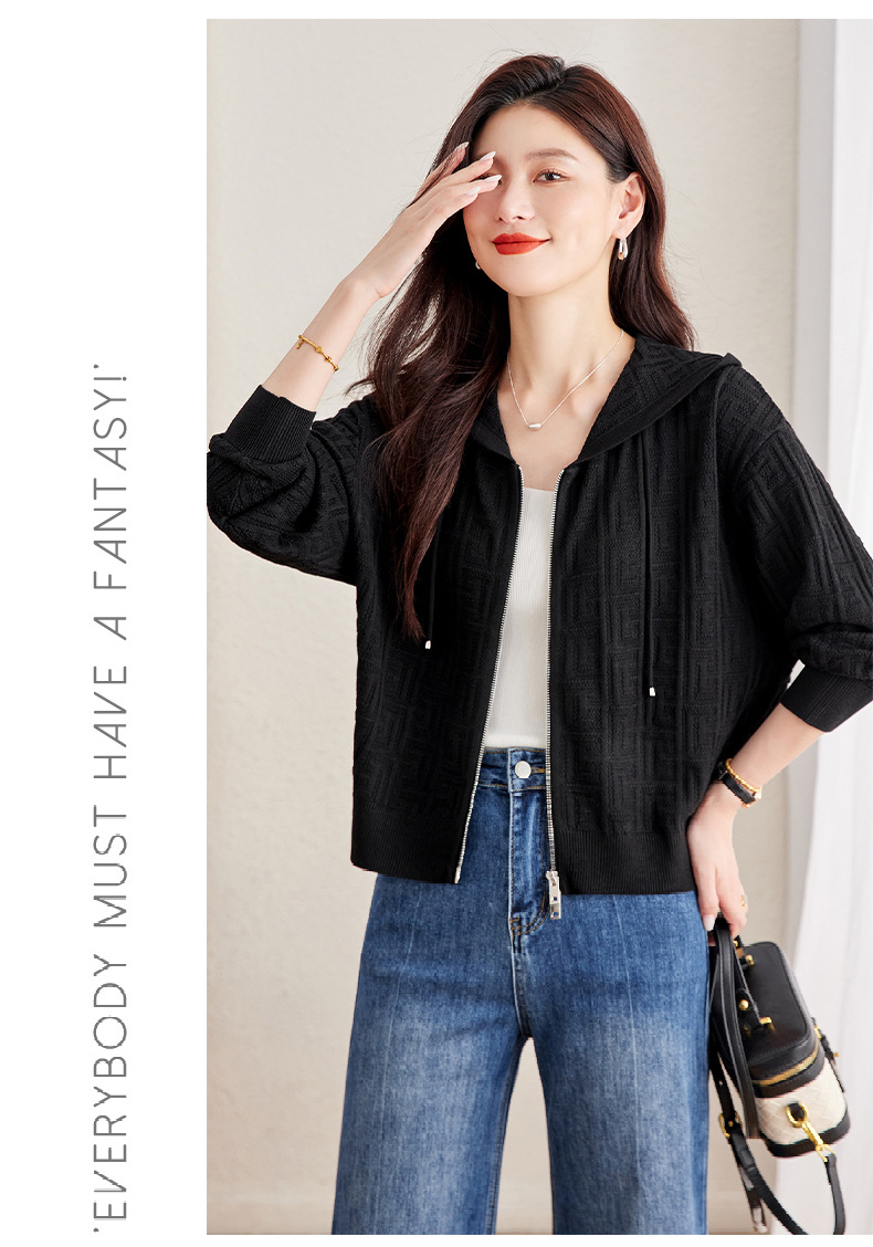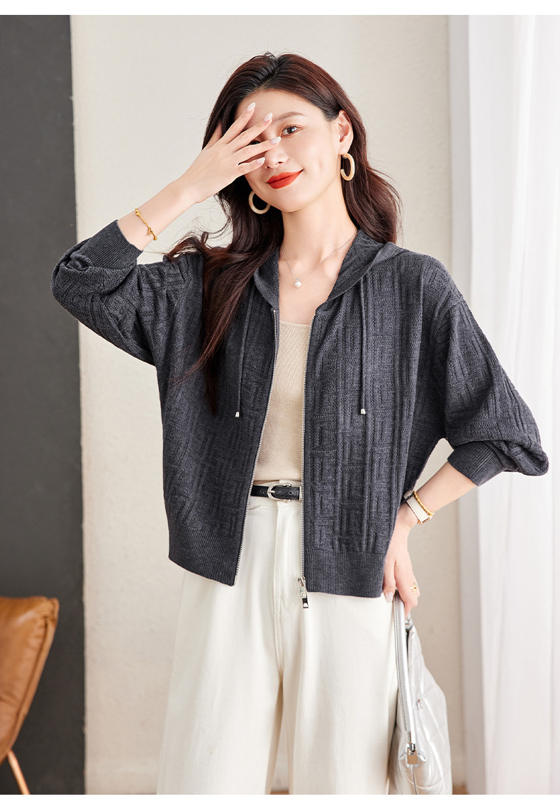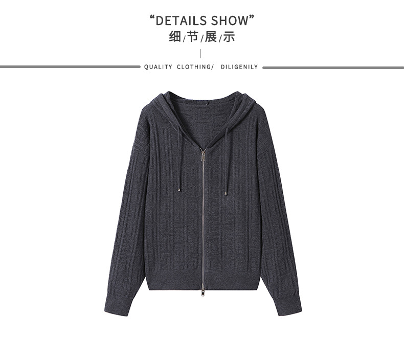 CC2025春秋新款连帽针织开衫女宽松休闲卫衣时尚洋气短毛衣外套上衣