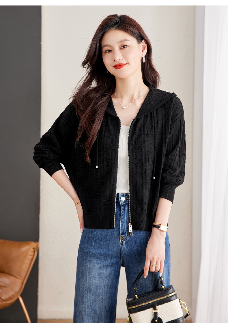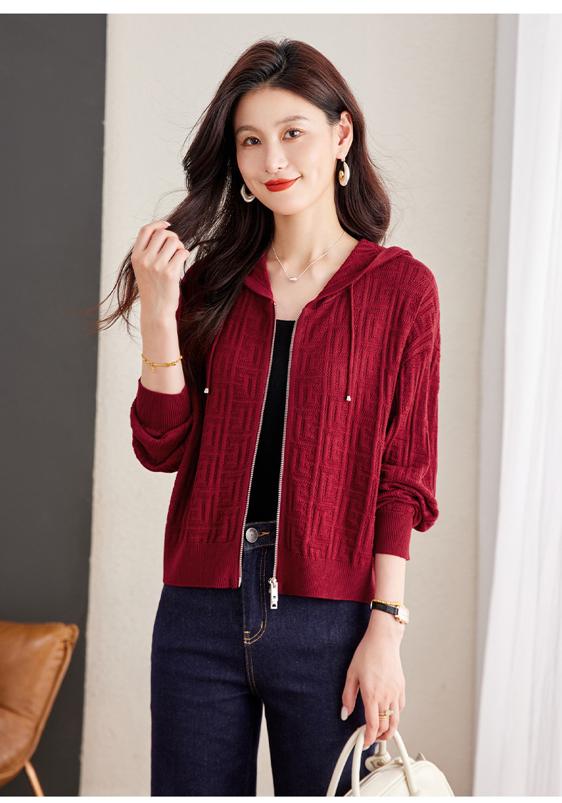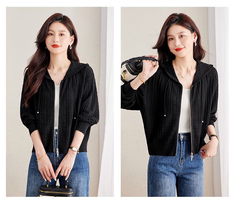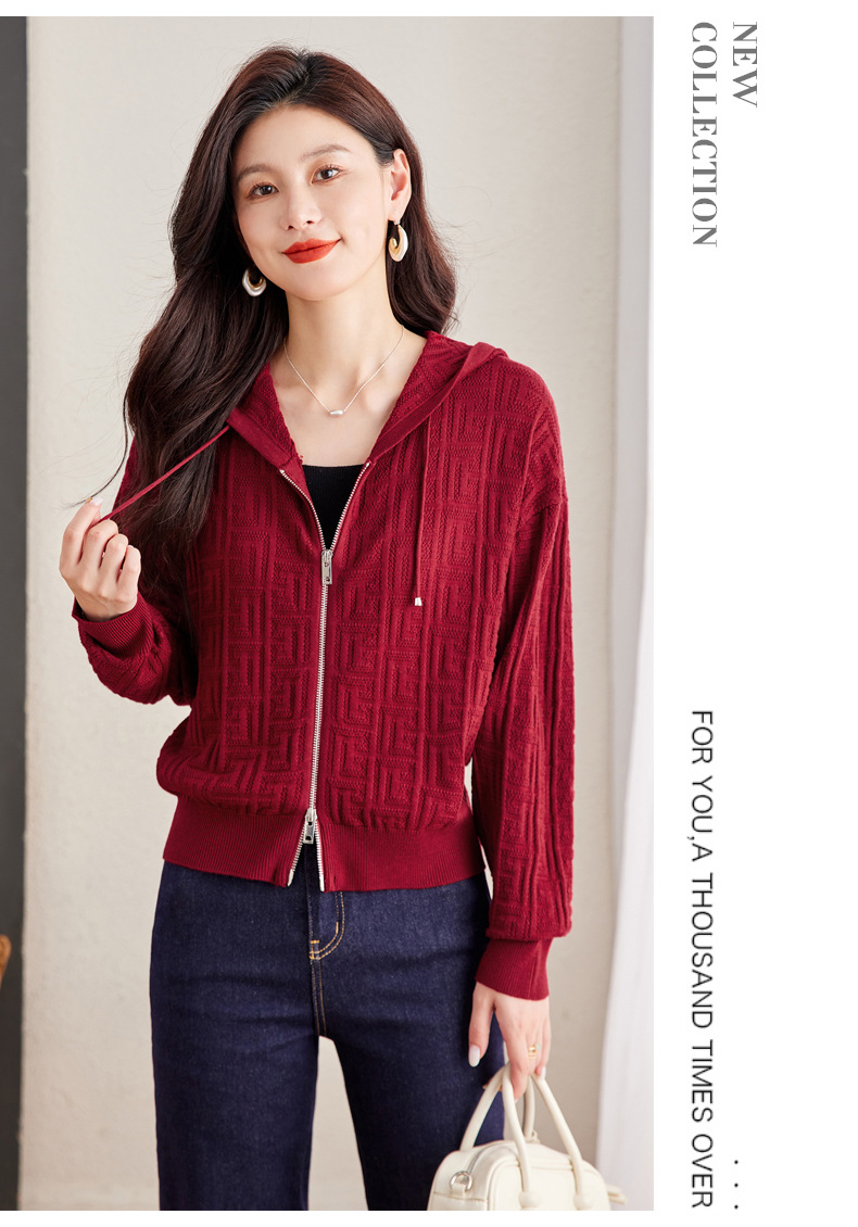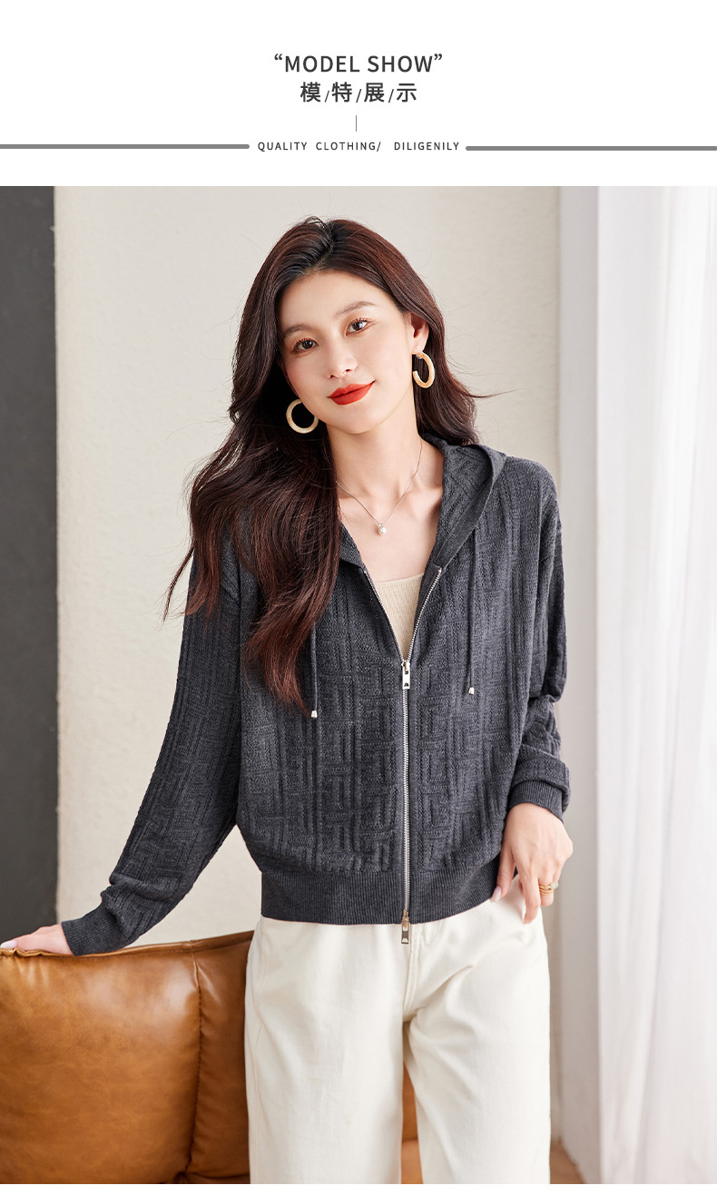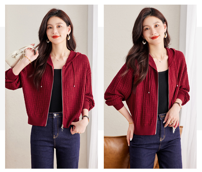 CC2025春秋新款连帽针织开衫女宽松休闲卫衣时尚洋气短毛衣外套上衣