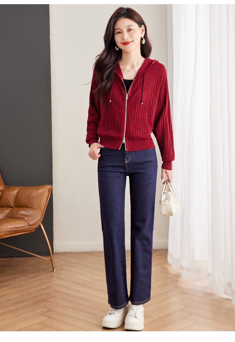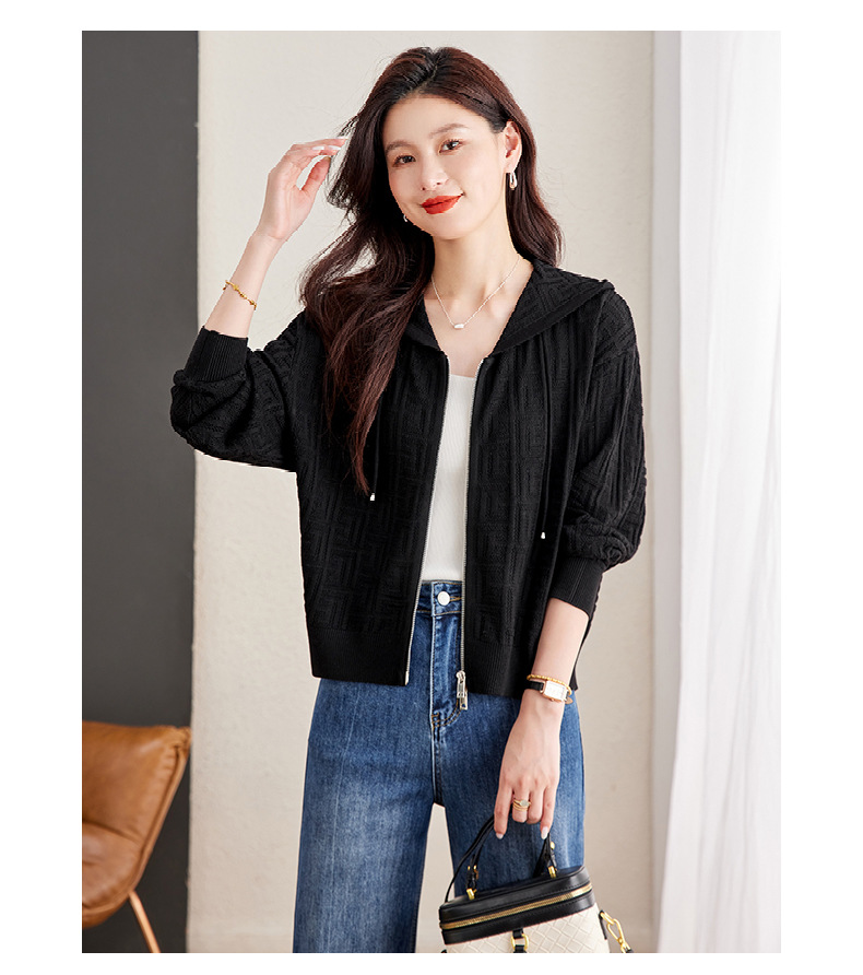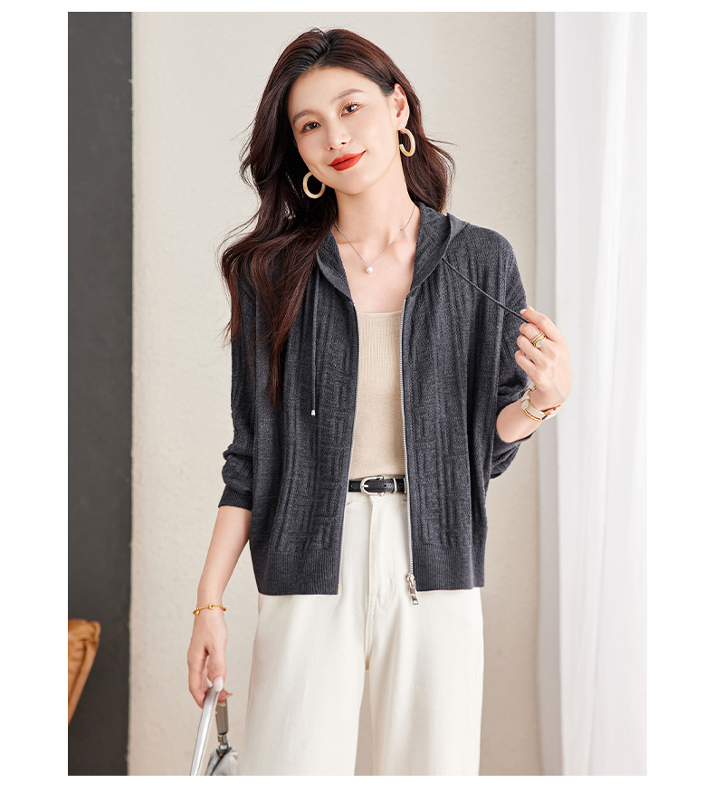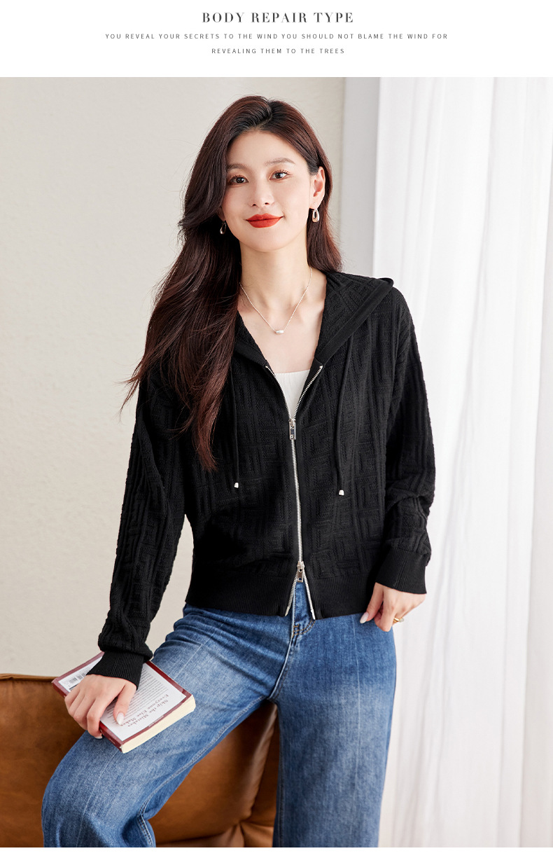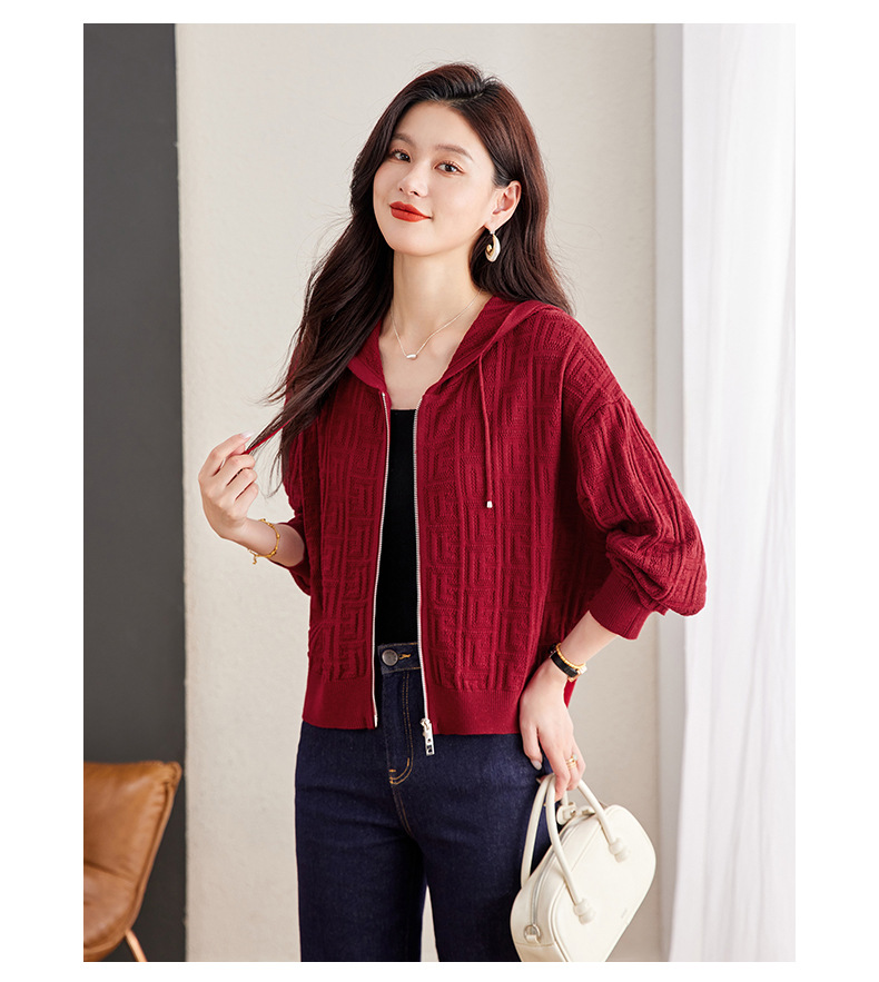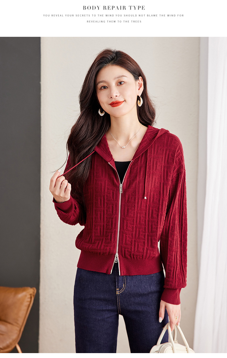 CC2025春秋新款连帽针织开衫女宽松休闲卫衣时尚洋气短毛衣外套上衣