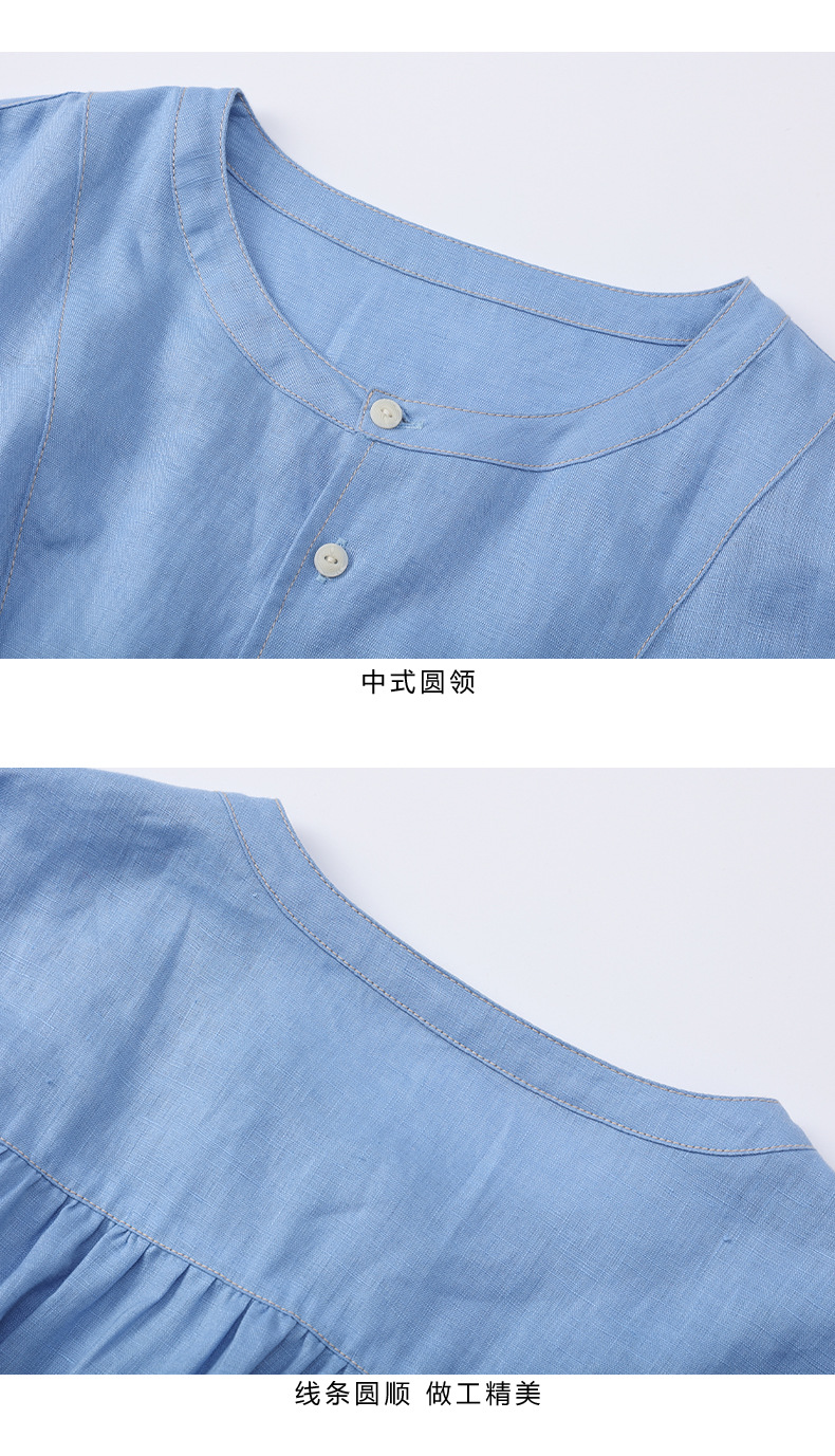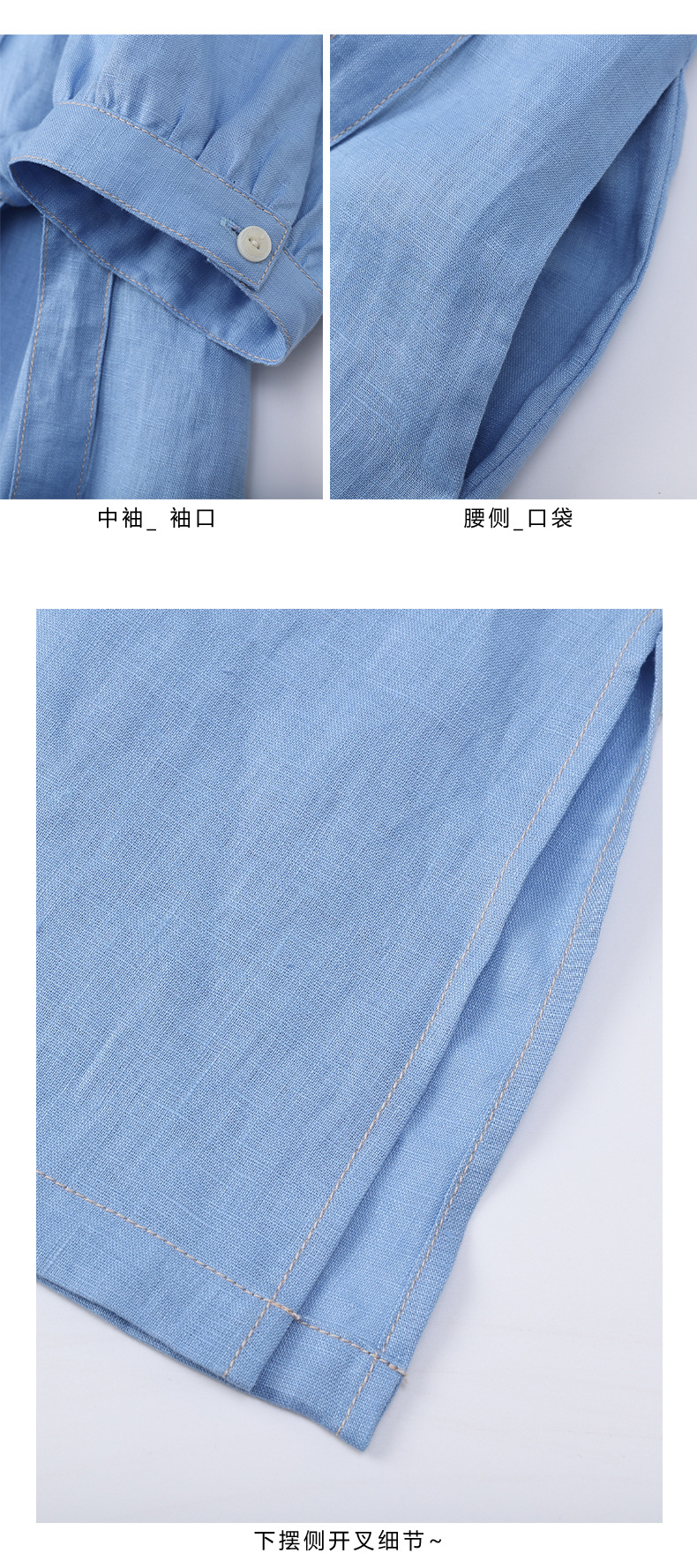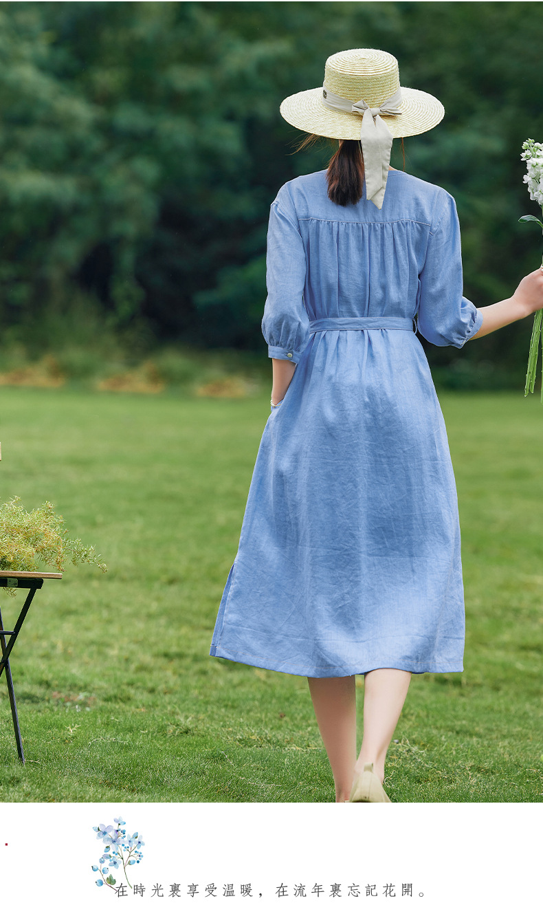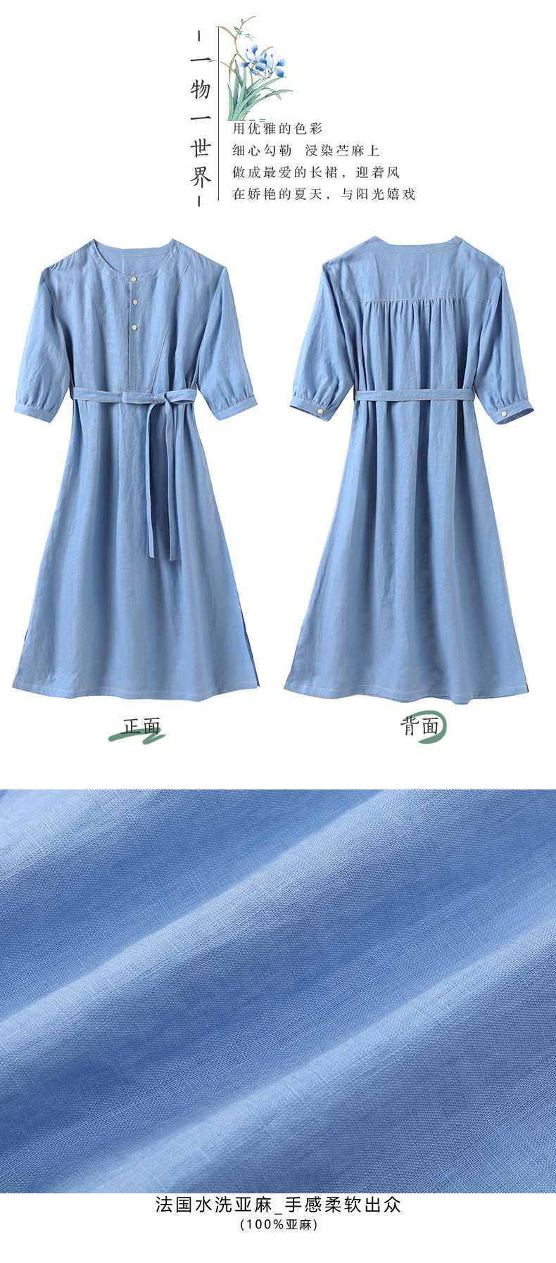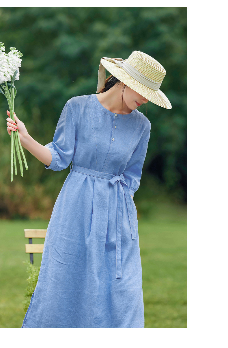2023春原创文艺亚麻连衣裙纯色气质侧开叉长裙YM-S348