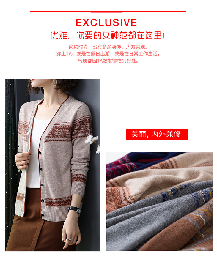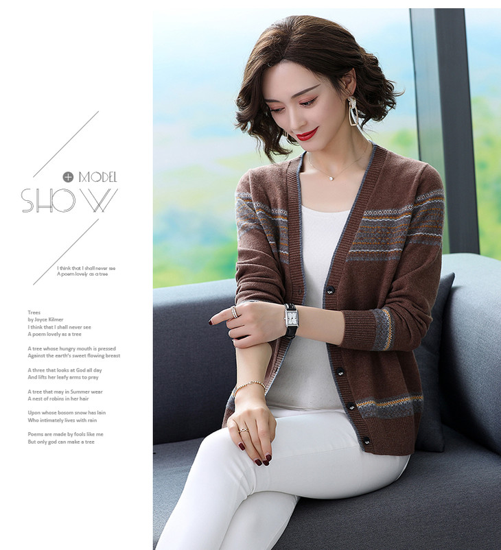 秋季新品v领条纹拼色毛衣薄款针织开衫
