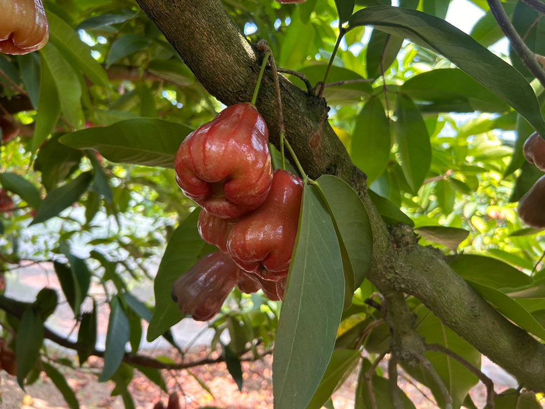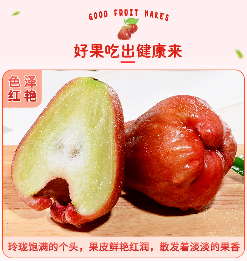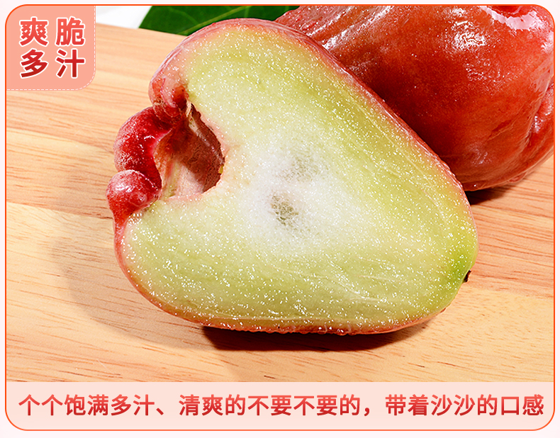 莲雾是长在树上的矿泉水,我们的莲雾园坐落在环境优越的海南万宁,全程有机种植,不加化肥,不打催熟剂,比外面的跟好吃,更香甜,莲雾百分之七十都是水,每一口都像咬住山间甘甜的清泉,第一口是清脆,黑金刚的表皮软薄如纸,吃着淡淡的甜香,第二口是清甜,有人说莲雾没有味道,那是你没有迟到真正好吃的莲雾,黑金刚莲雾清甜可口,像是一团浸满了山泉的棉花,没有半分纤维感,入口即化,第三口回甘,整颗莲雾下肚,只需10秒,但它的甘甜和清爽,且能舒润你的口腔和喉咙长达数十分钟,让人回味悠长