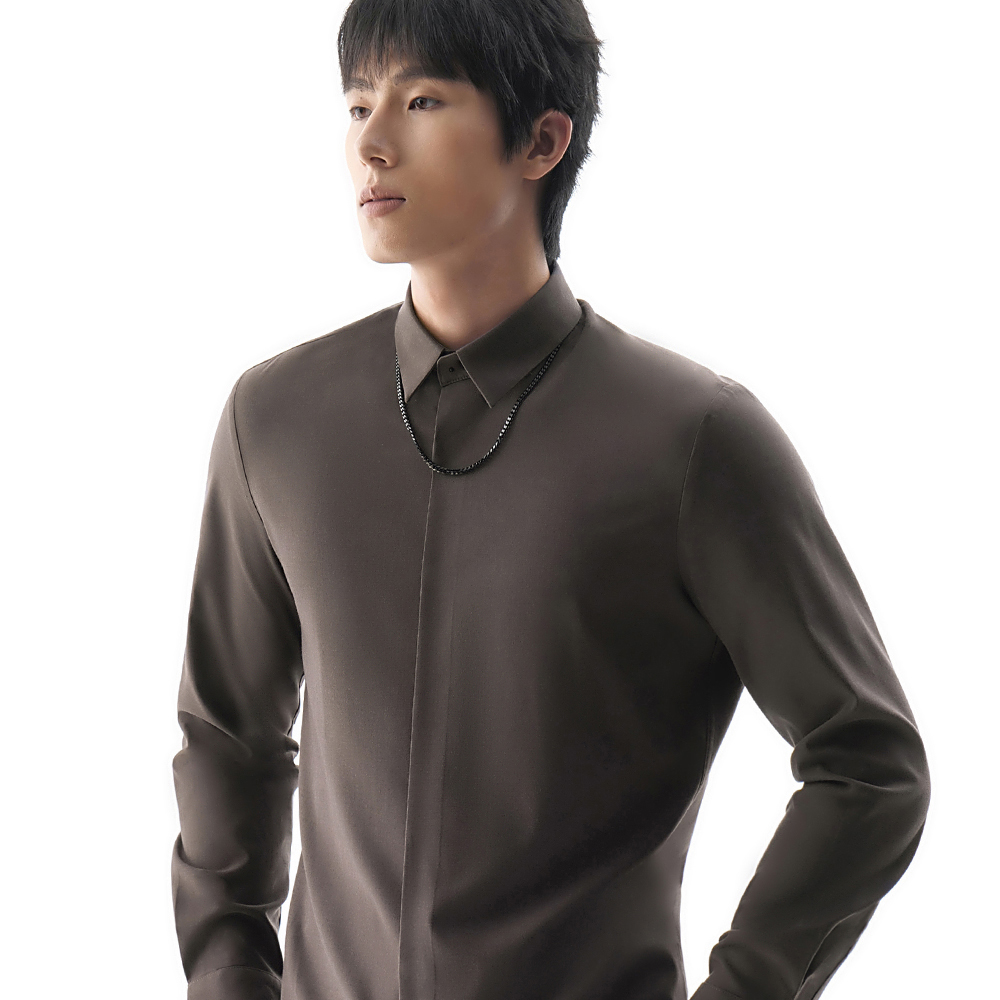 HIM漢崇 商务正装长袖衬衫男年会宴会婚礼绅士修身衬衣 2025秋季