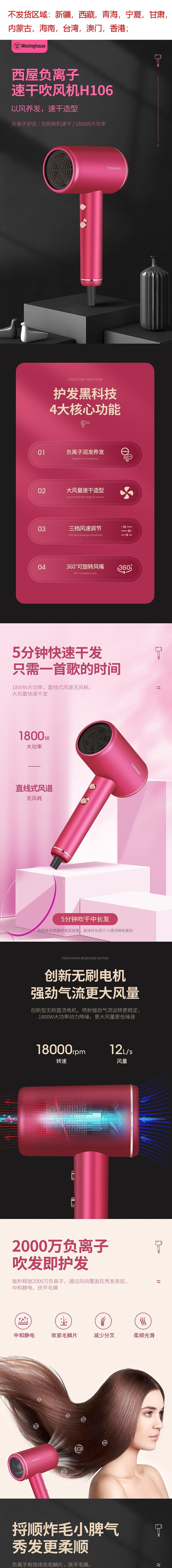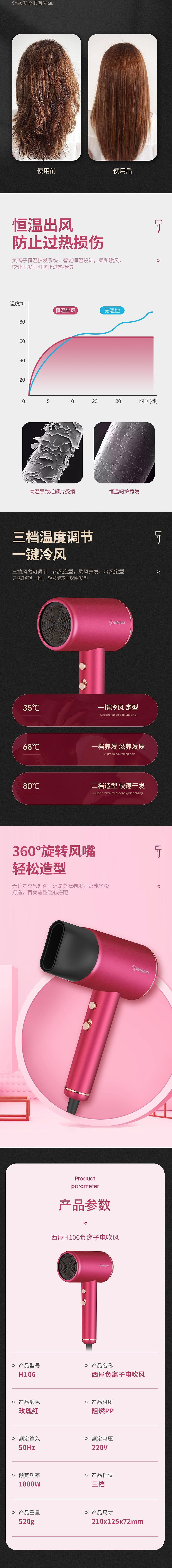 西屋 负离子电吹风机1800W H106