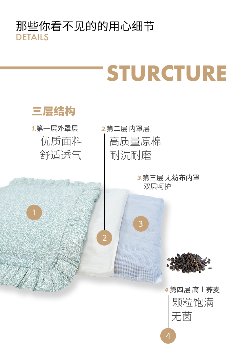 莨苕叶系列花边枕荞麦壳枕头荞麦皮睡眠护颈椎睡觉专用纯棉学生儿童