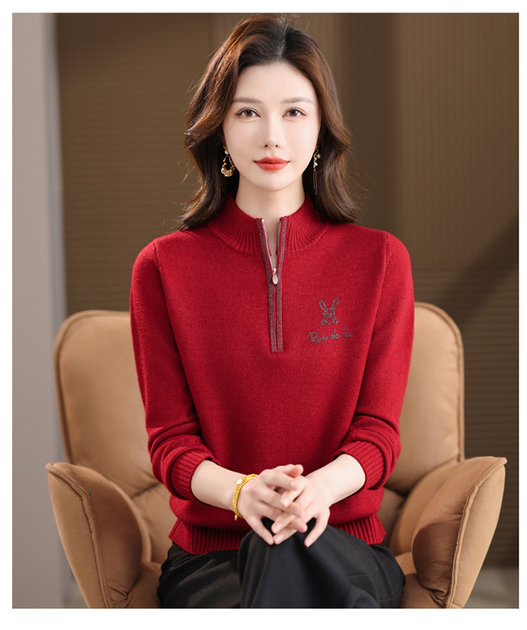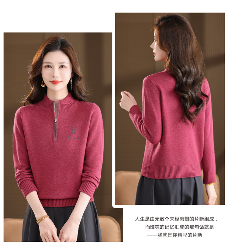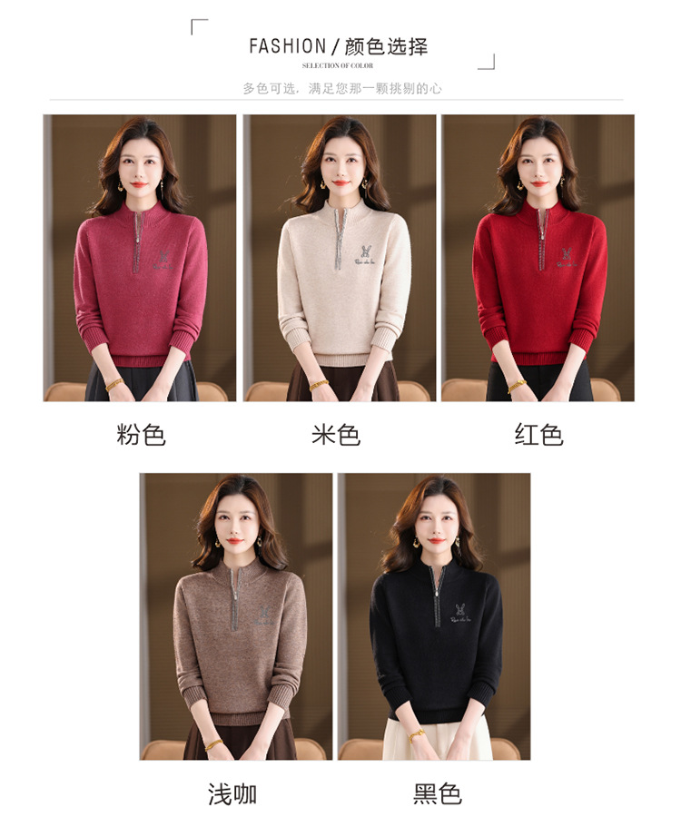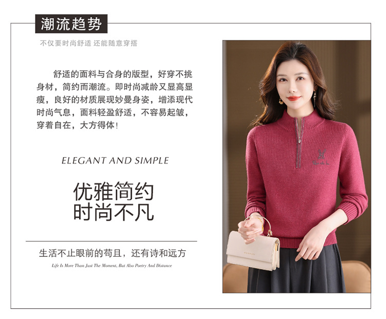 FCY 26047半拉链毛衫可外穿刺绣毛衣气质轻奢上衣 商品图4