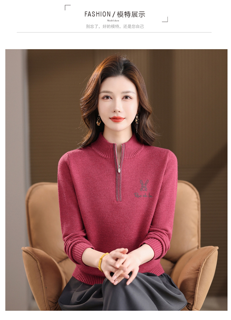 FCY 26047半拉链毛衫可外穿刺绣毛衣气质轻奢上衣 商品图2