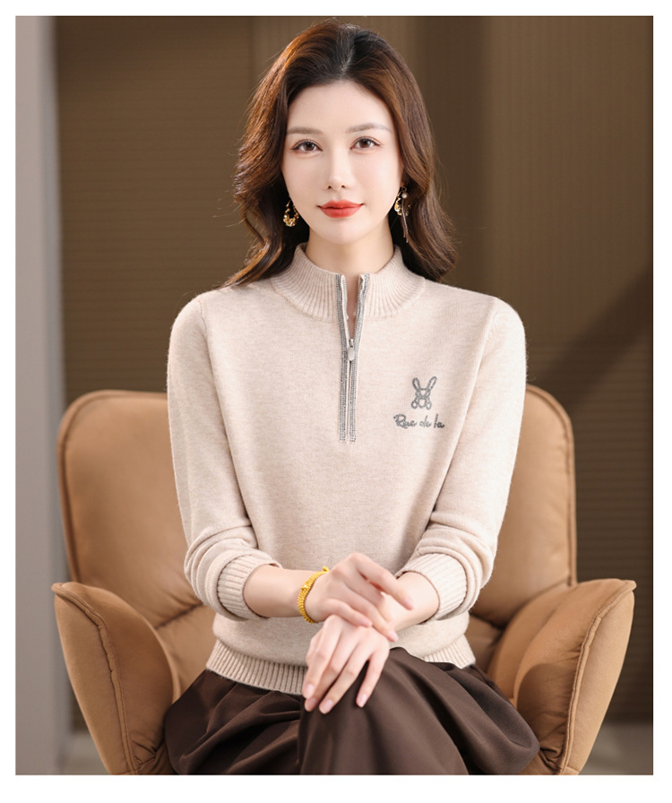FCY 26047半拉链毛衫可外穿刺绣毛衣气质轻奢上衣 商品图0