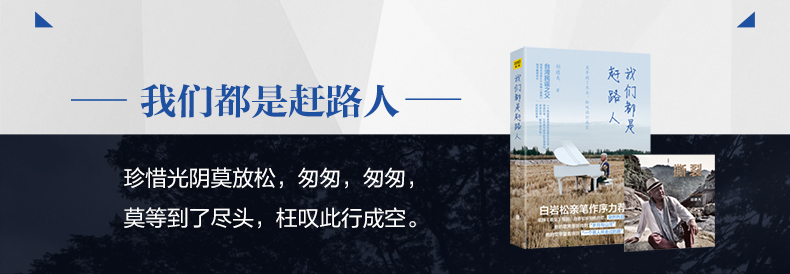胡德夫老师15首歌曲作品背后的人生故事为内容,通过歌曲讲述了自己沧桑的岁月与经历。以一句歌词“我们都是赶路人”为书名,讲述人生就像一条路,时间匆匆而逝,珍惜光阴莫放松,莫等到了尽头,枉叹此行成空。胡德夫作为台湾民谣之父,以音乐诠释着自己的人生哲学。