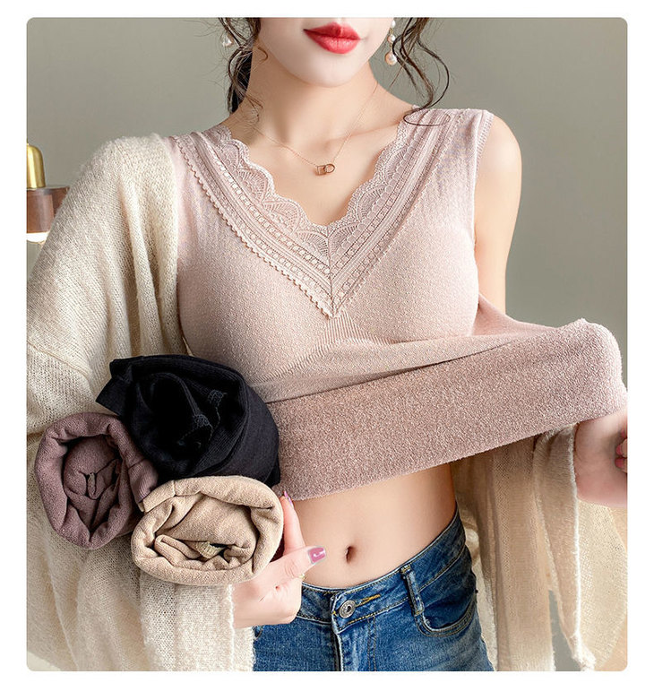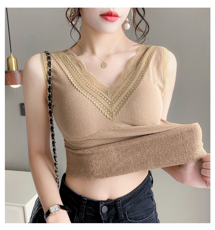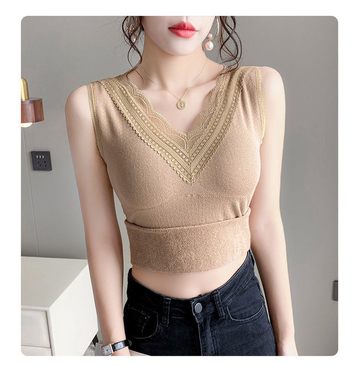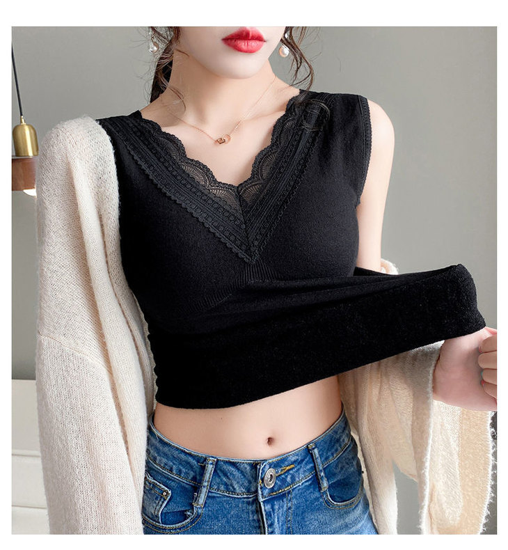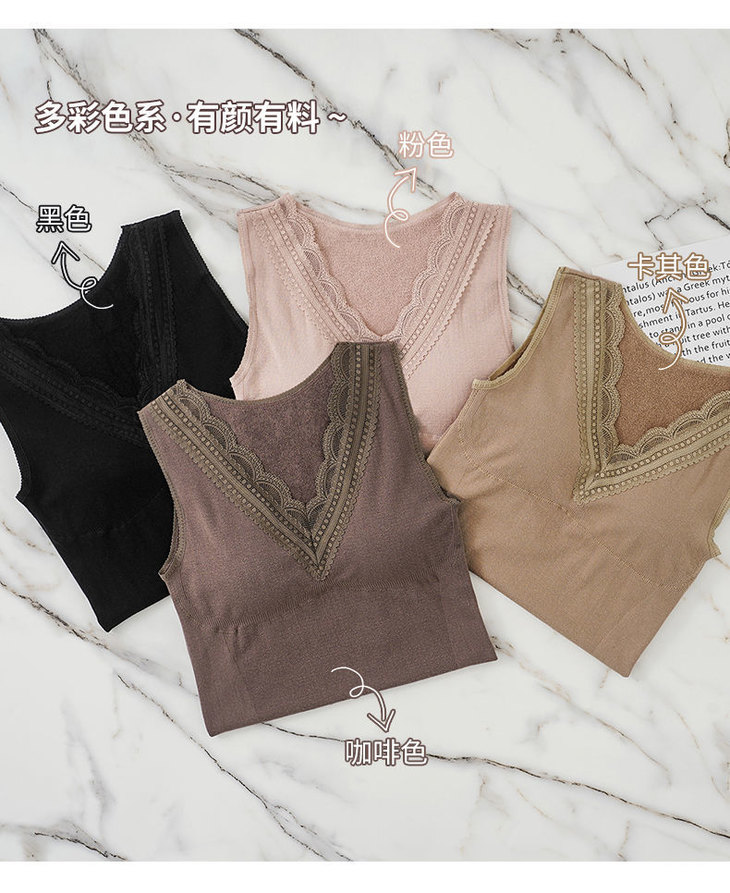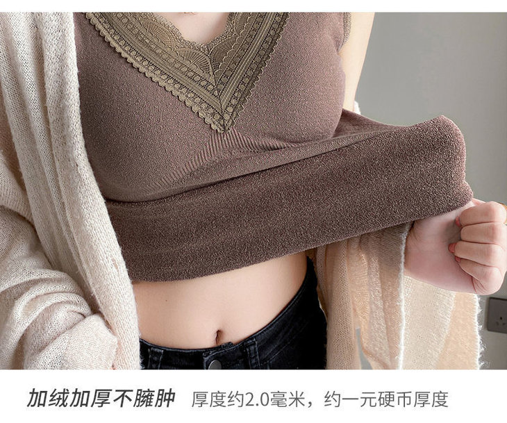 TZW-保暖背心女一体绒带胸垫加绒加厚新款蕾丝花边内搭打底衫
