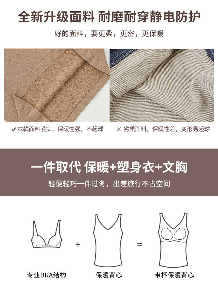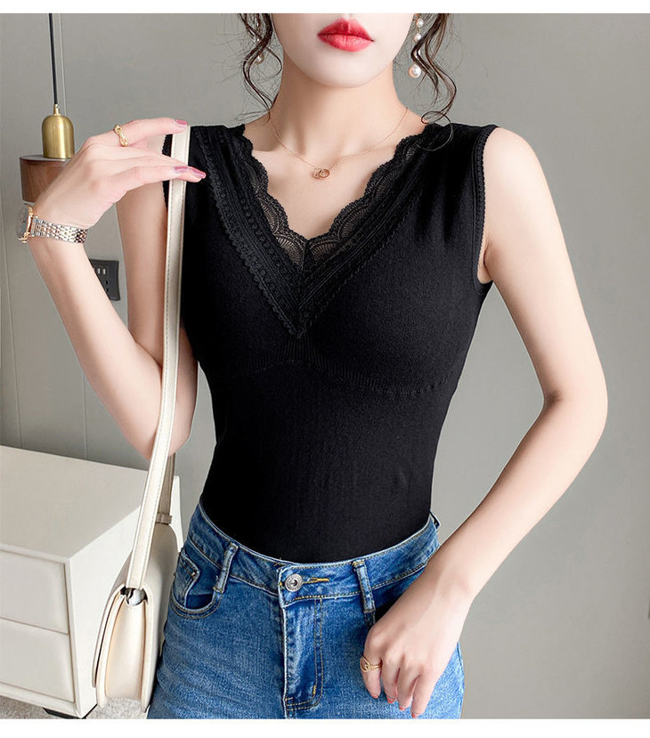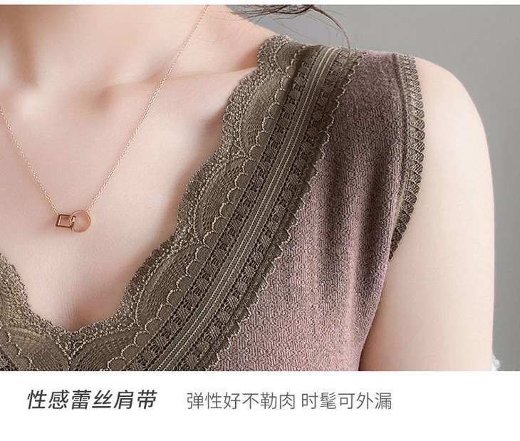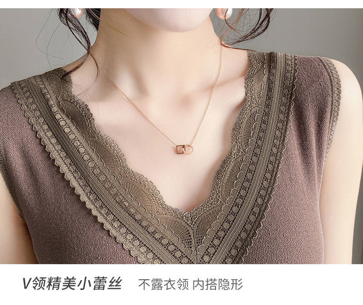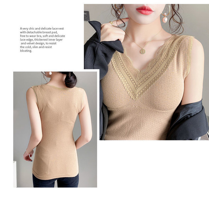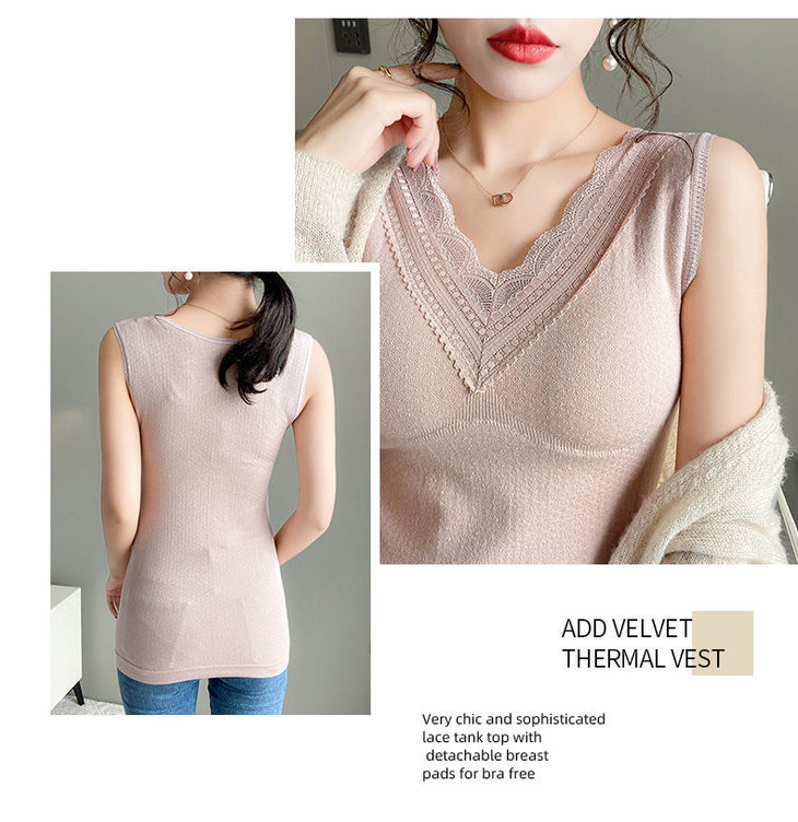 TZW-保暖背心女一体绒带胸垫加绒加厚新款蕾丝花边内搭打底衫