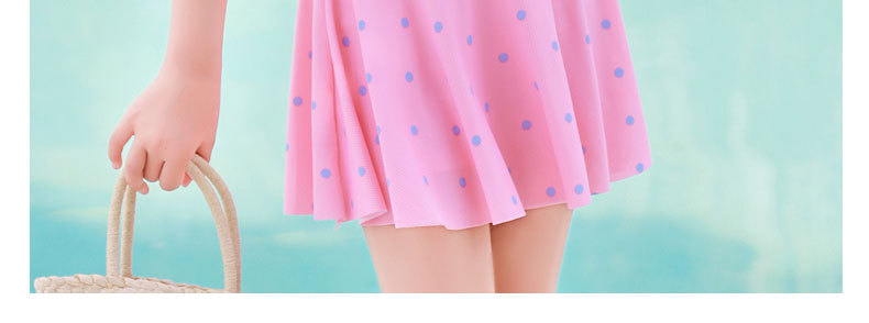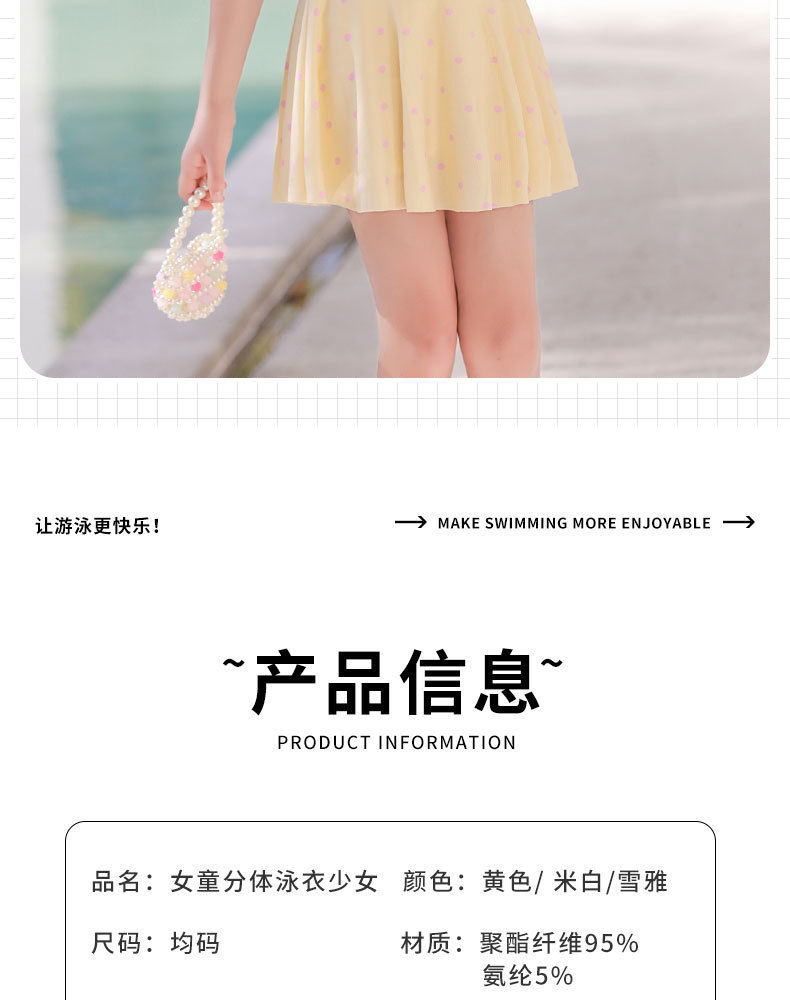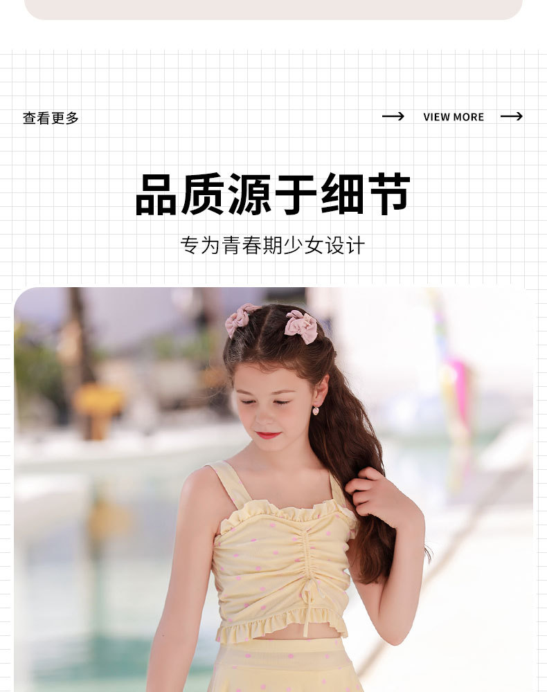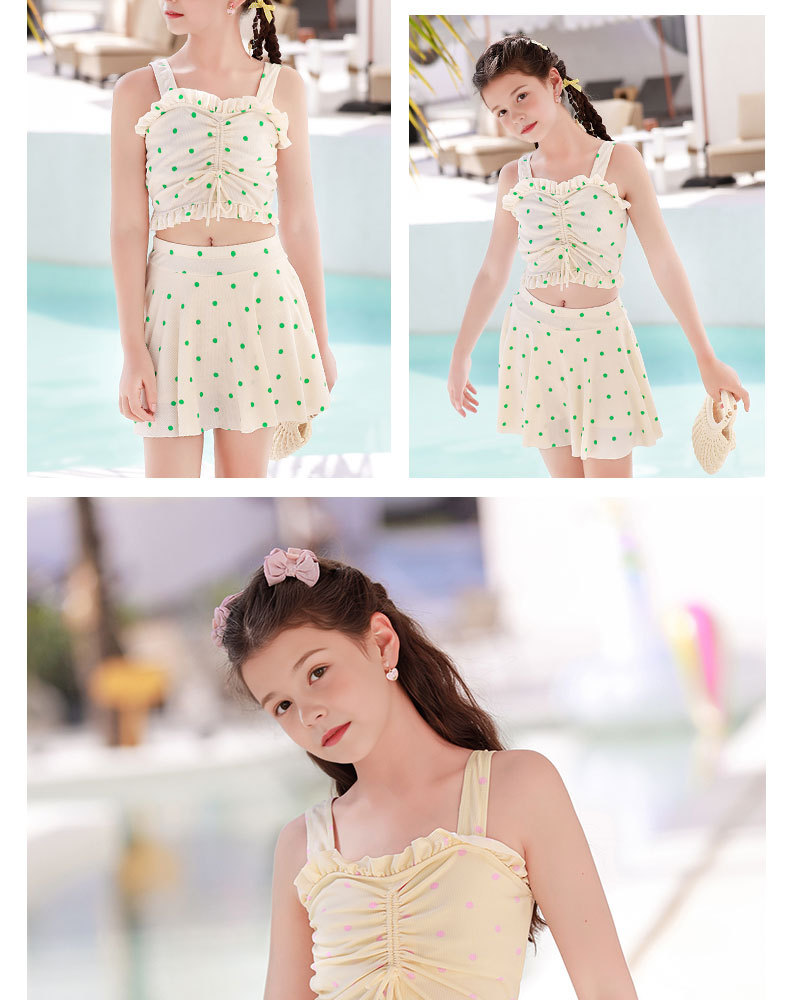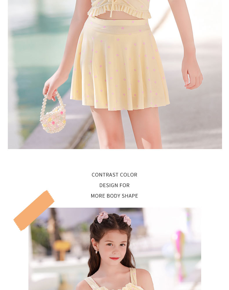 【水中行动无负担,快乐畅游~】儿童泳衣新款 女童中大童 可爱小清新 波点分体吊带裙式 少女度假泳装-QQ