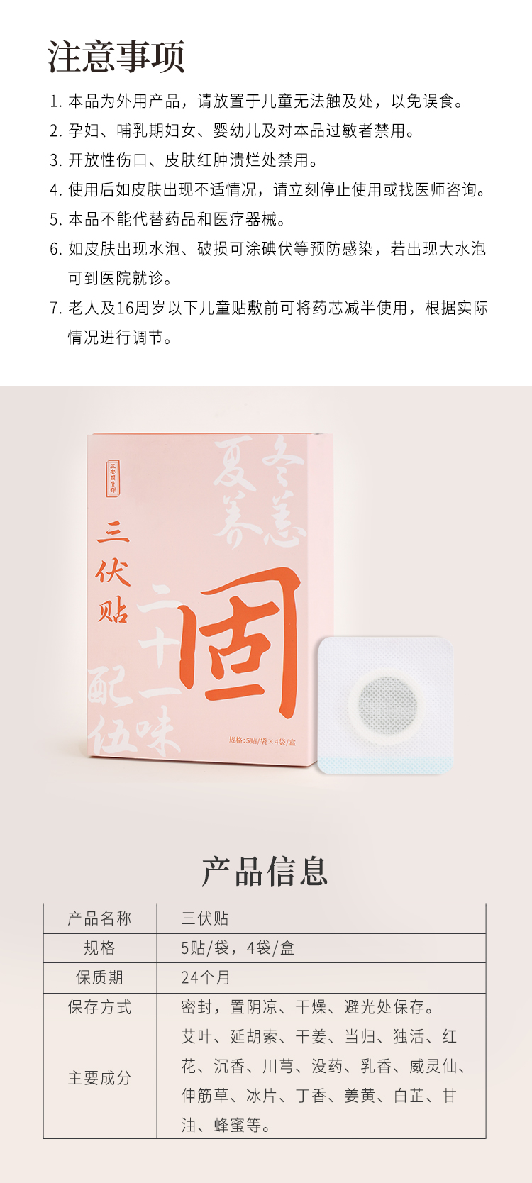 正安 二十一味本草配伍 冬恙夏养三伏贴 5贴/袋*4袋/盒【不可用券】(新效期:27年5月)