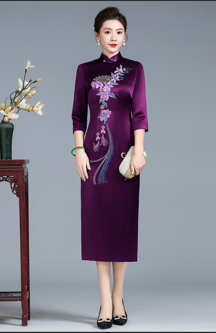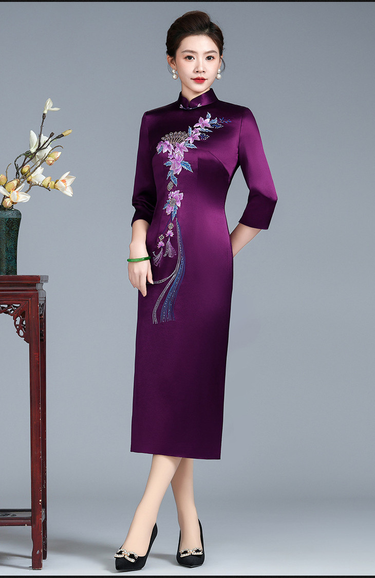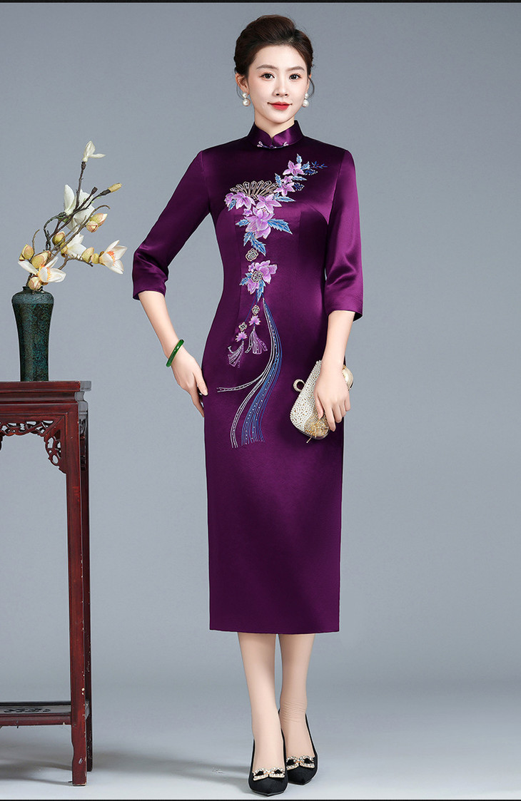 LHS-B120高端宴装 平时可穿春季新款醋酸旗袍裙 商品图1