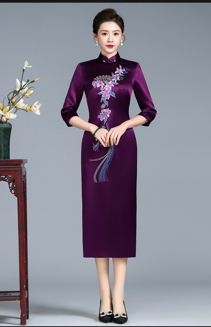 LHS-B120高端宴装 平时可穿春季新款醋酸旗袍裙 商品图4