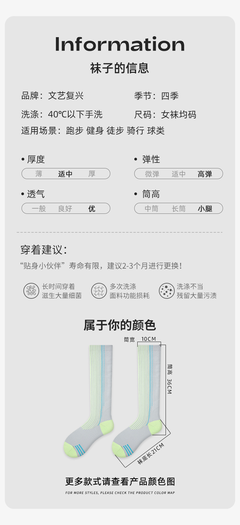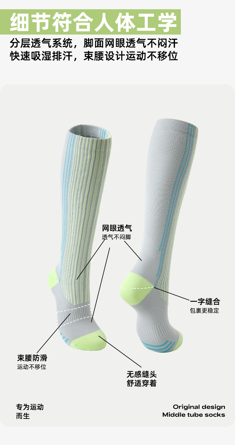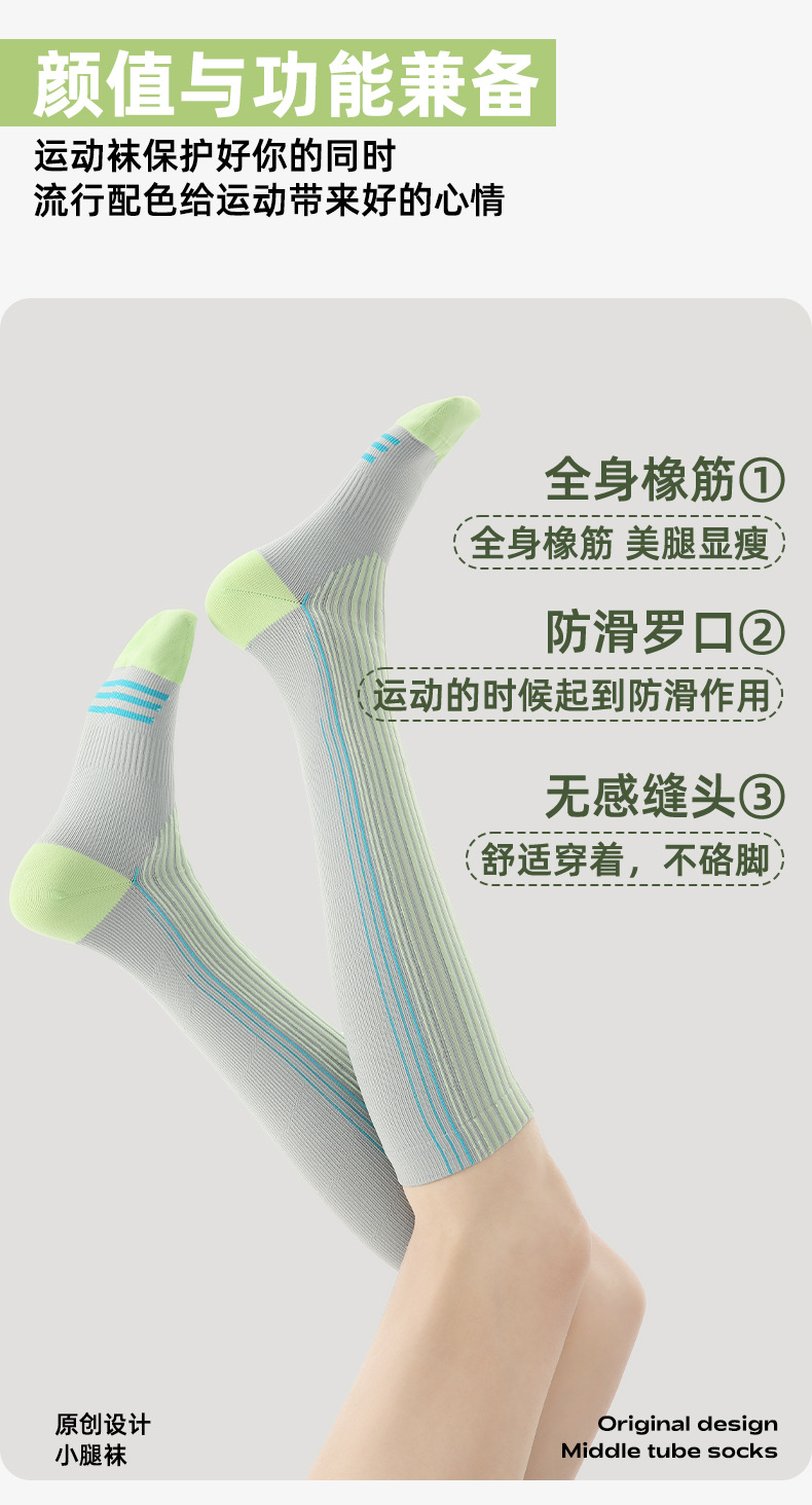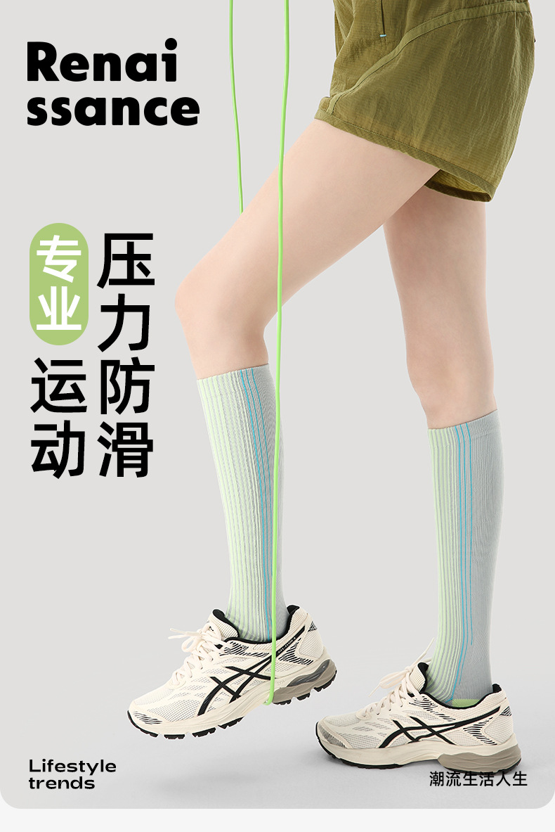 【专业运动,压力防滑袜!】Renaissance运动压力小腿袜 压缩健身跑步跳绳 瑜伽普拉提羽毛球袜-QQ