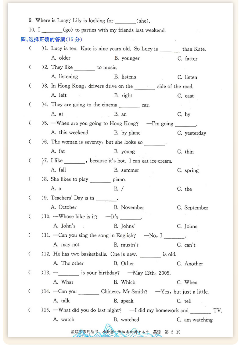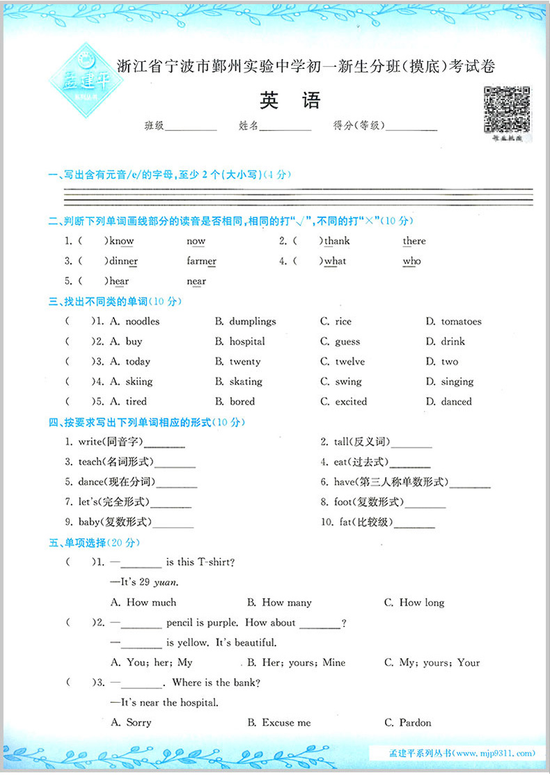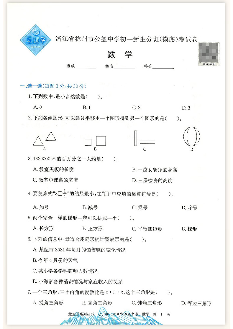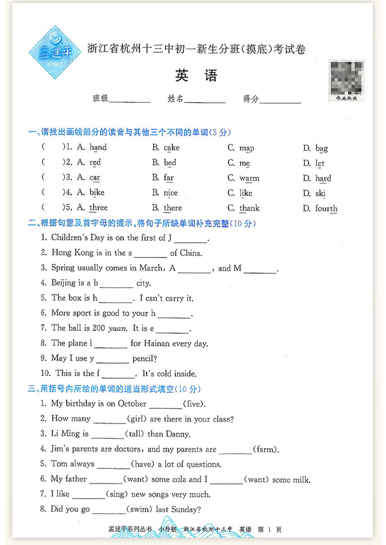 2025孟建平小升初名校初一新生分班摸底考试卷小学升初中招生入学专项训练总复习毕业升学模拟