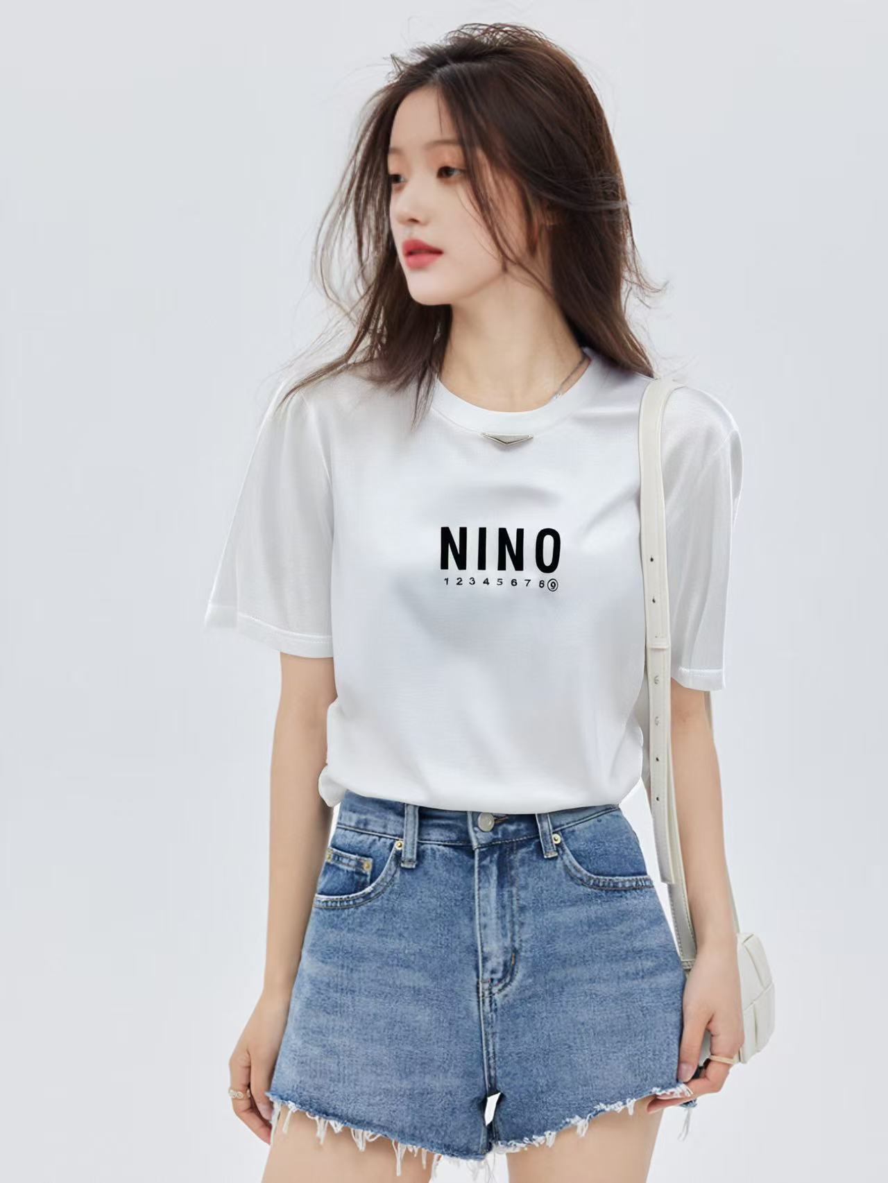 清仓价2025~白色超薄款NINO夏季短袖T恤88127-喜出