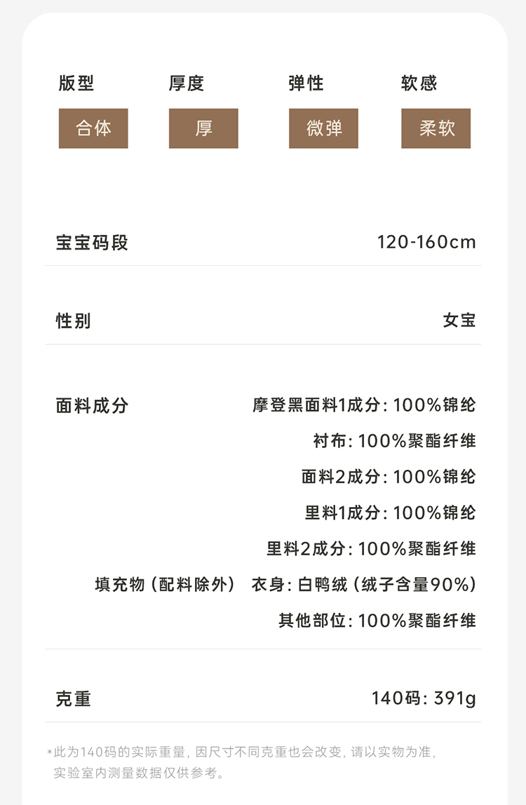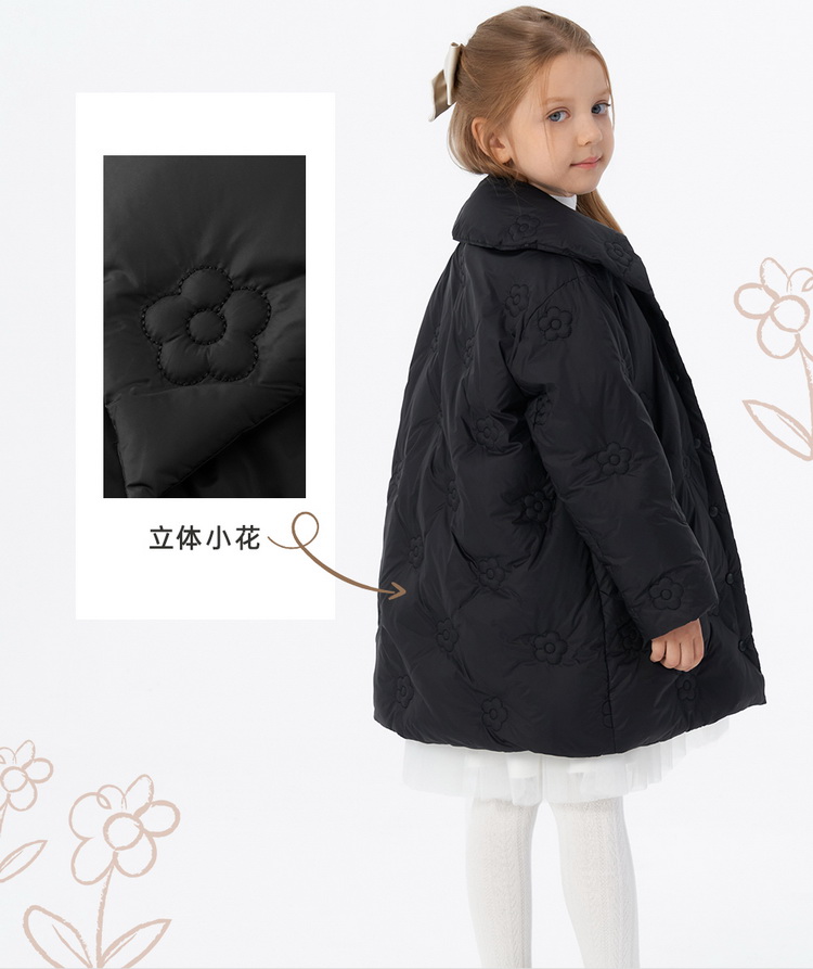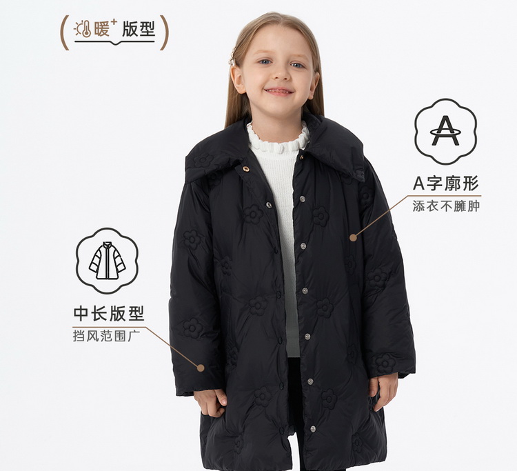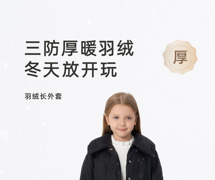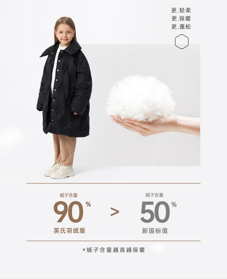 英氏小香风女童羽绒服外套保暖中长款秋冬款外套超韧绒