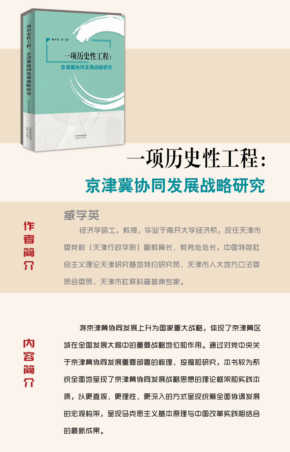 本书为学术专著。将京津冀协同发展上升为国家重大战略,体现了京津冀区域在全国发展大局中的重要战略地位和作用。通过对党中央关于京津冀协同发展重要部署的梳理、挖掘和研究,本书系统全面地呈现了京津冀协同发展战略思想的理论框架和实践本质,以更直观、更理性、更深入的方式呈现统筹全面协调发展的宏观构架,呈现马克思主义基本原理与中国改革实践相结合的最新成果。