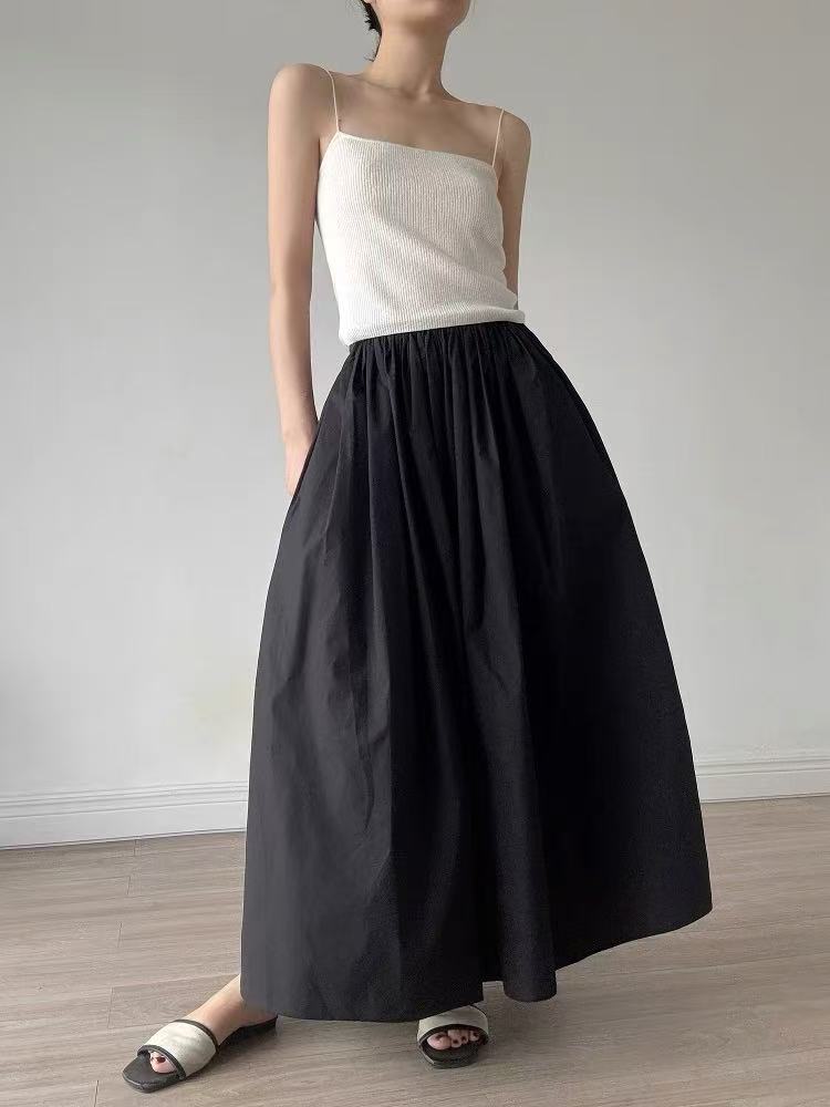 【诠释自我】品牌-100%棉黑色大裙摆半身裙-喜出