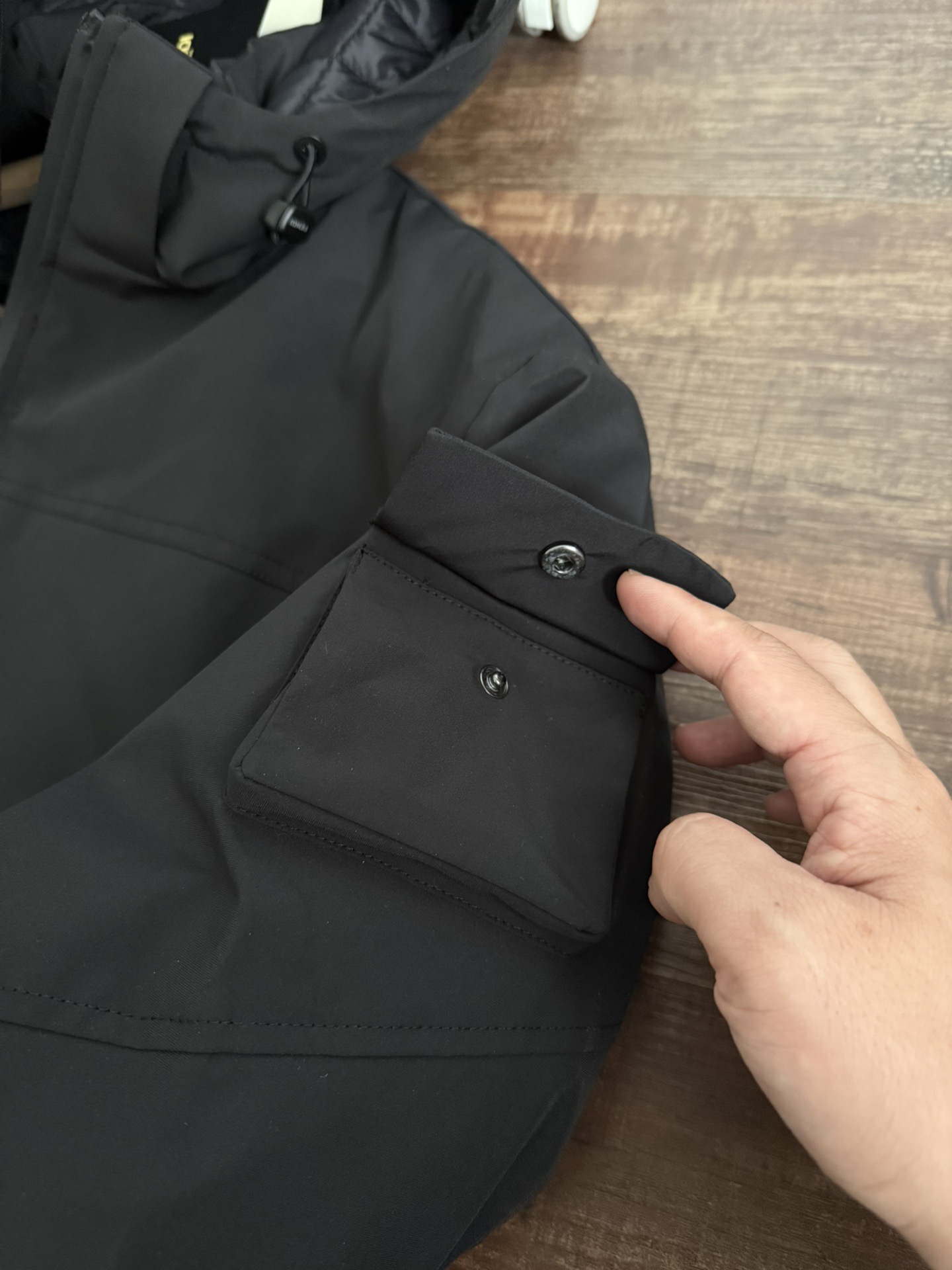 立体口袋,帽子压胶工艺+门襟压胶防水拉链
