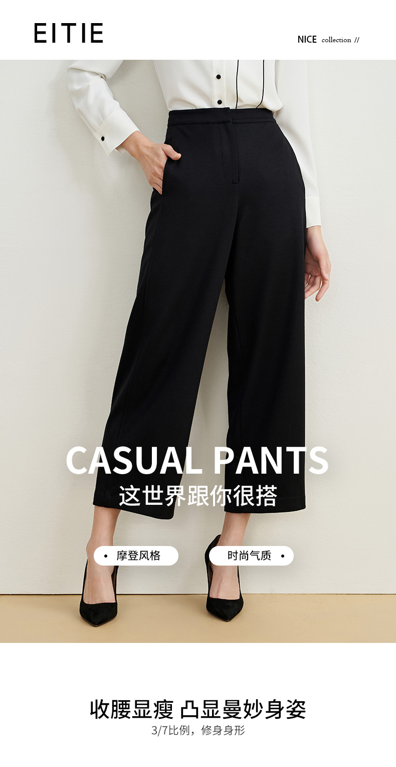 EITIE爱特爱秋季新款高腰宽松休闲裤子6705421
