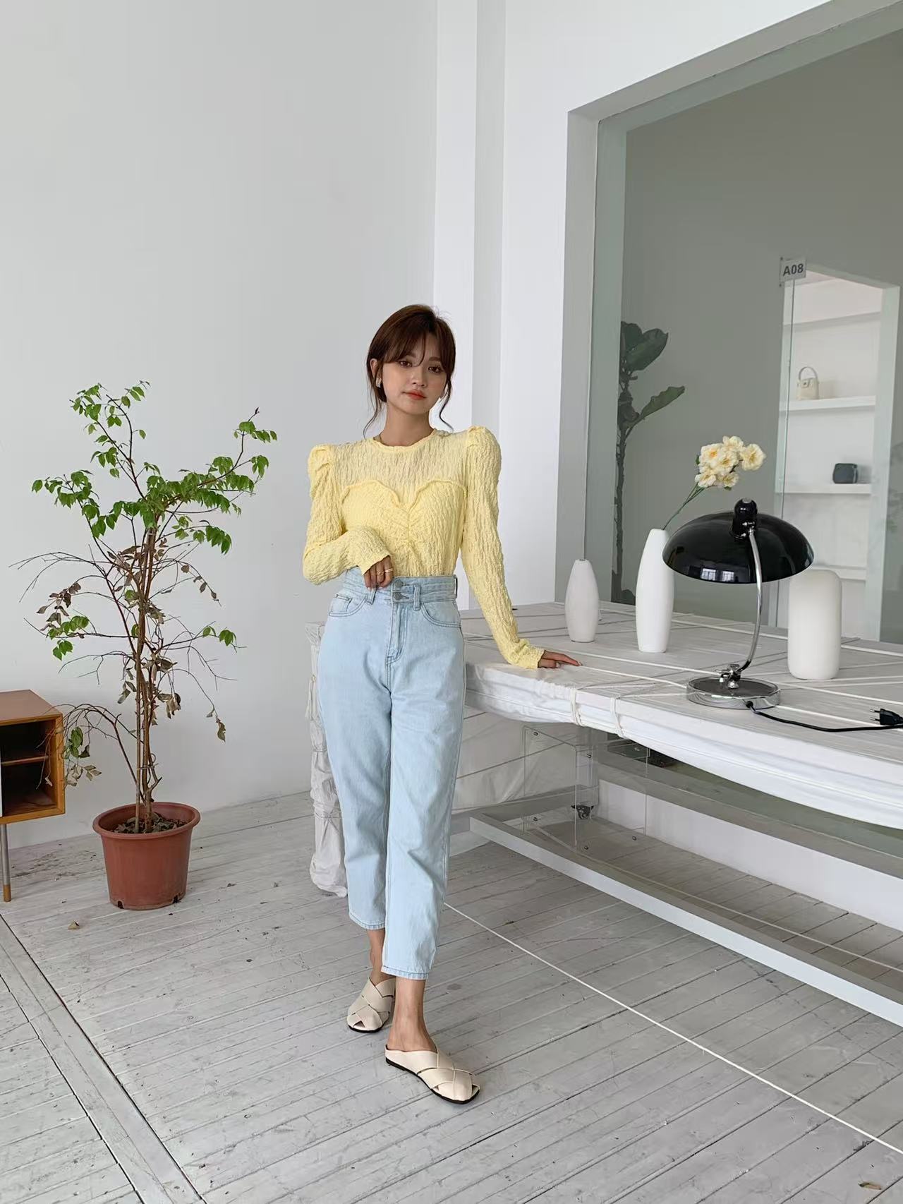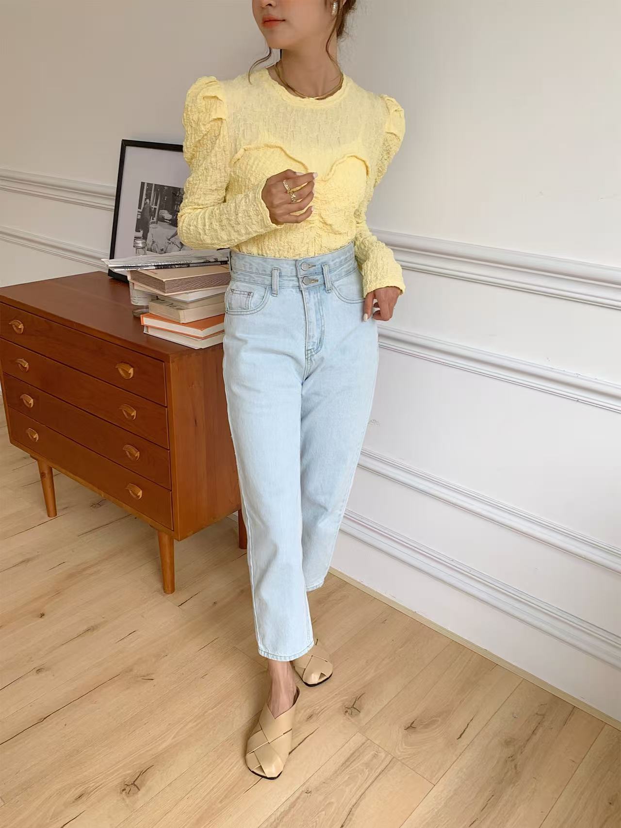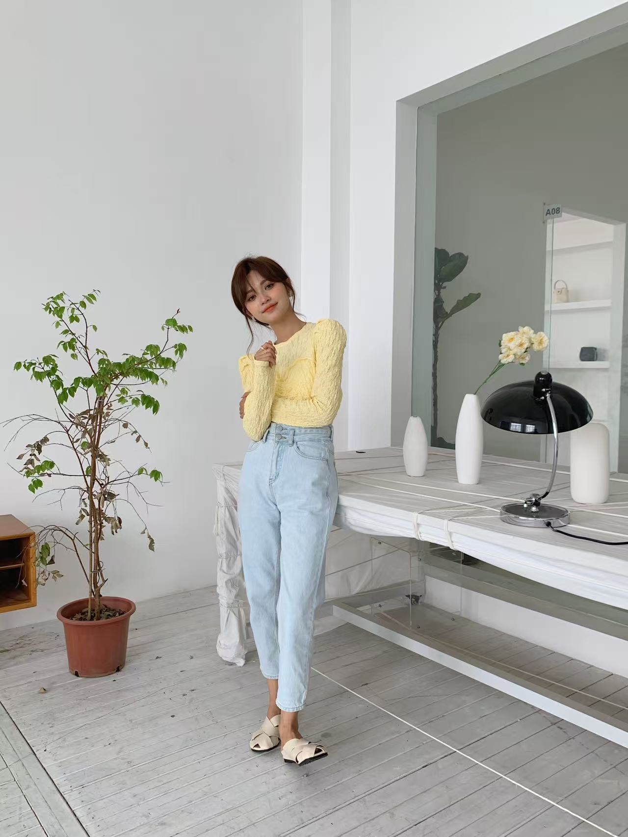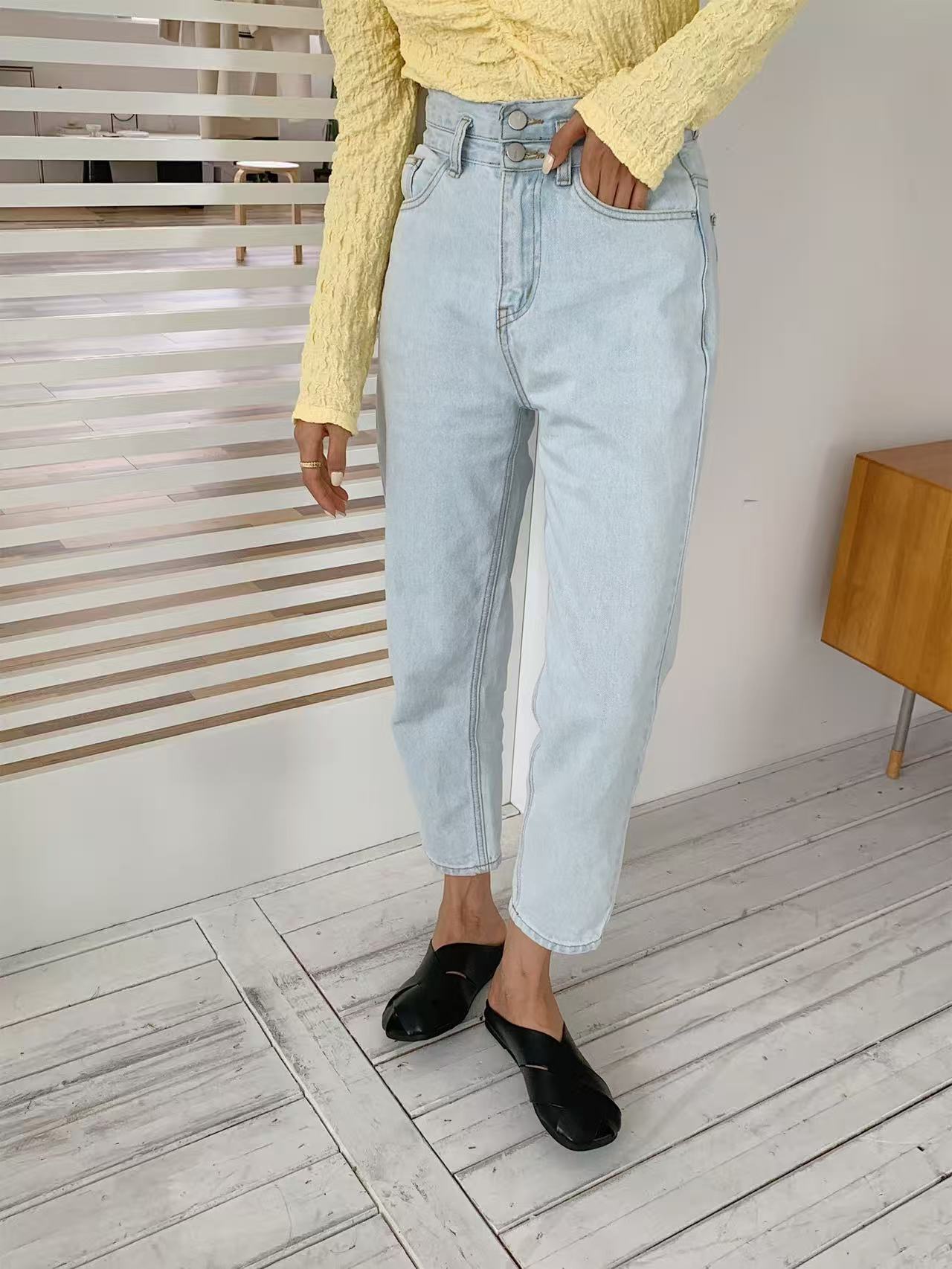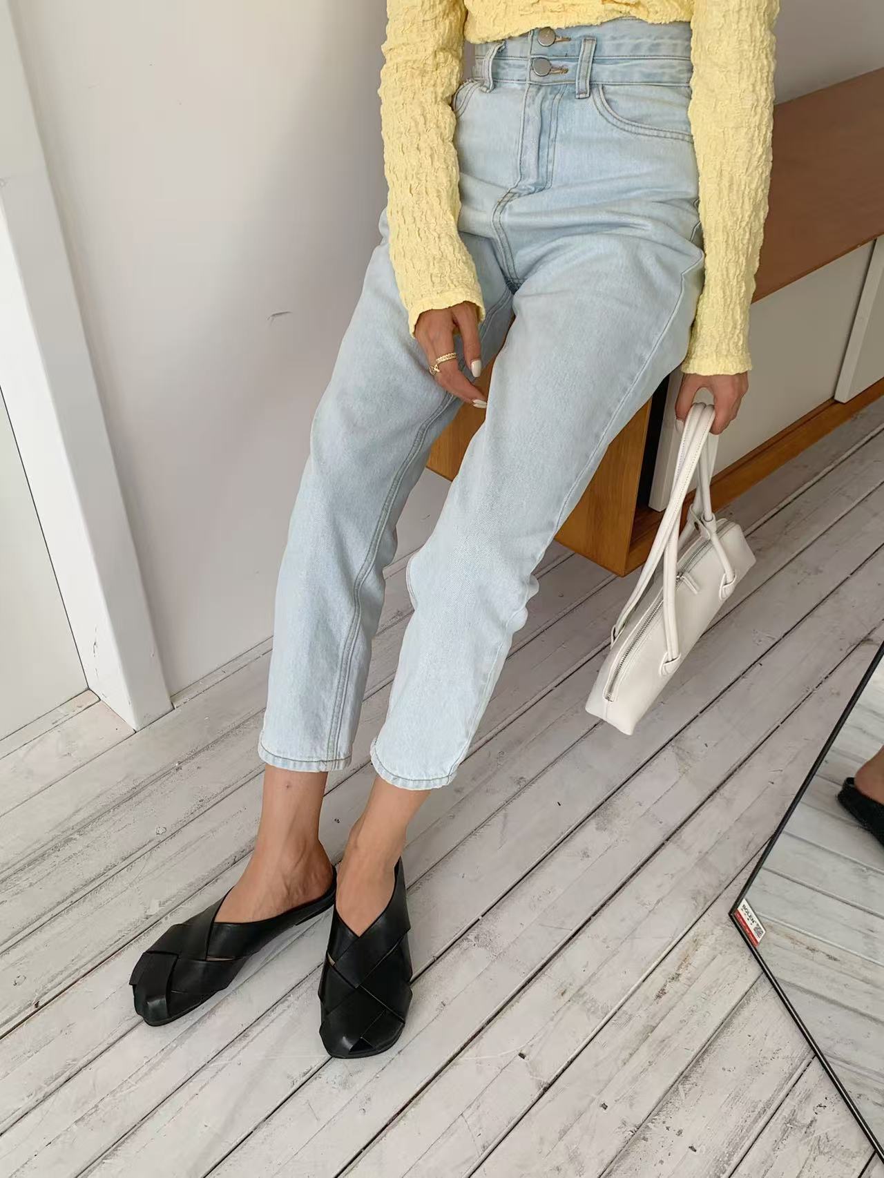 7.7清货,能接受不退拍 浅色系两粒扣春季品质无弹九分牛仔裤(微脏,介意勿入)-喜出