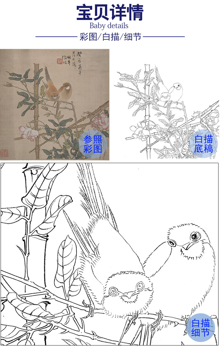工笔画白描底稿明清花鸟 任伯年 花鸟图 斗方小品册页 MQ05